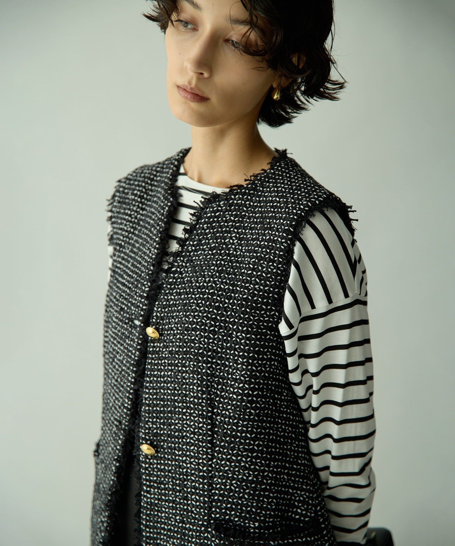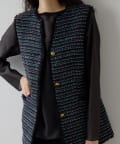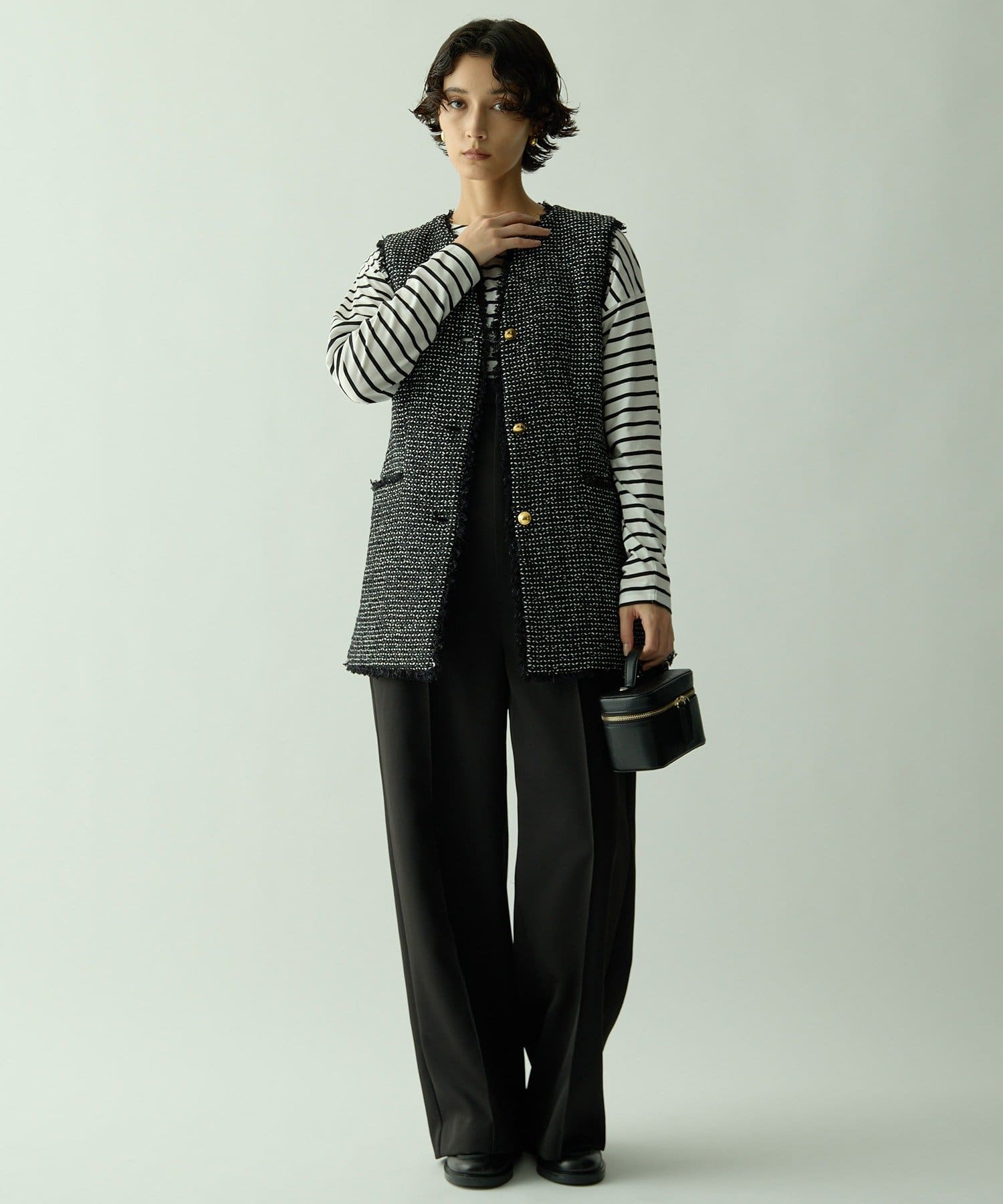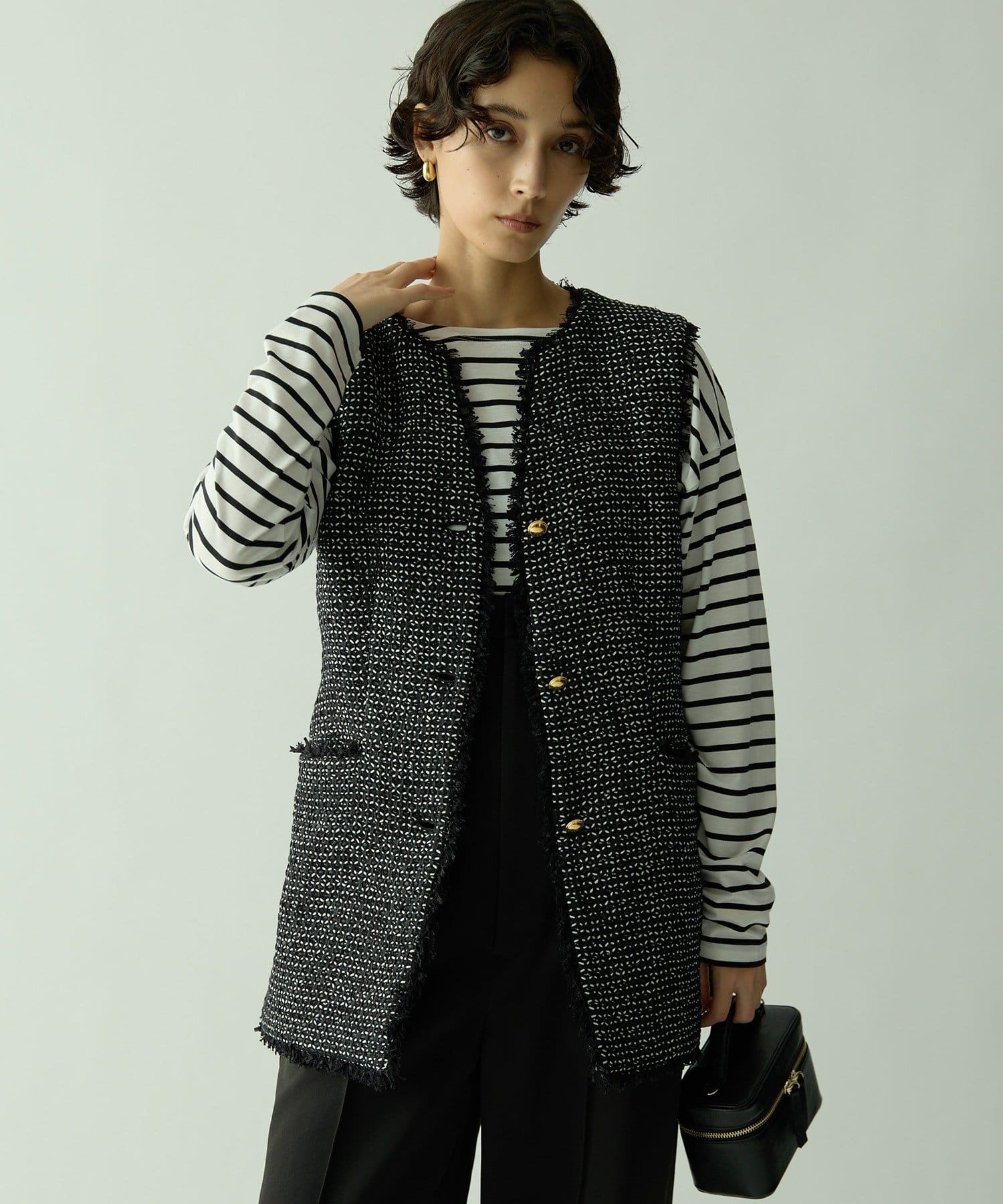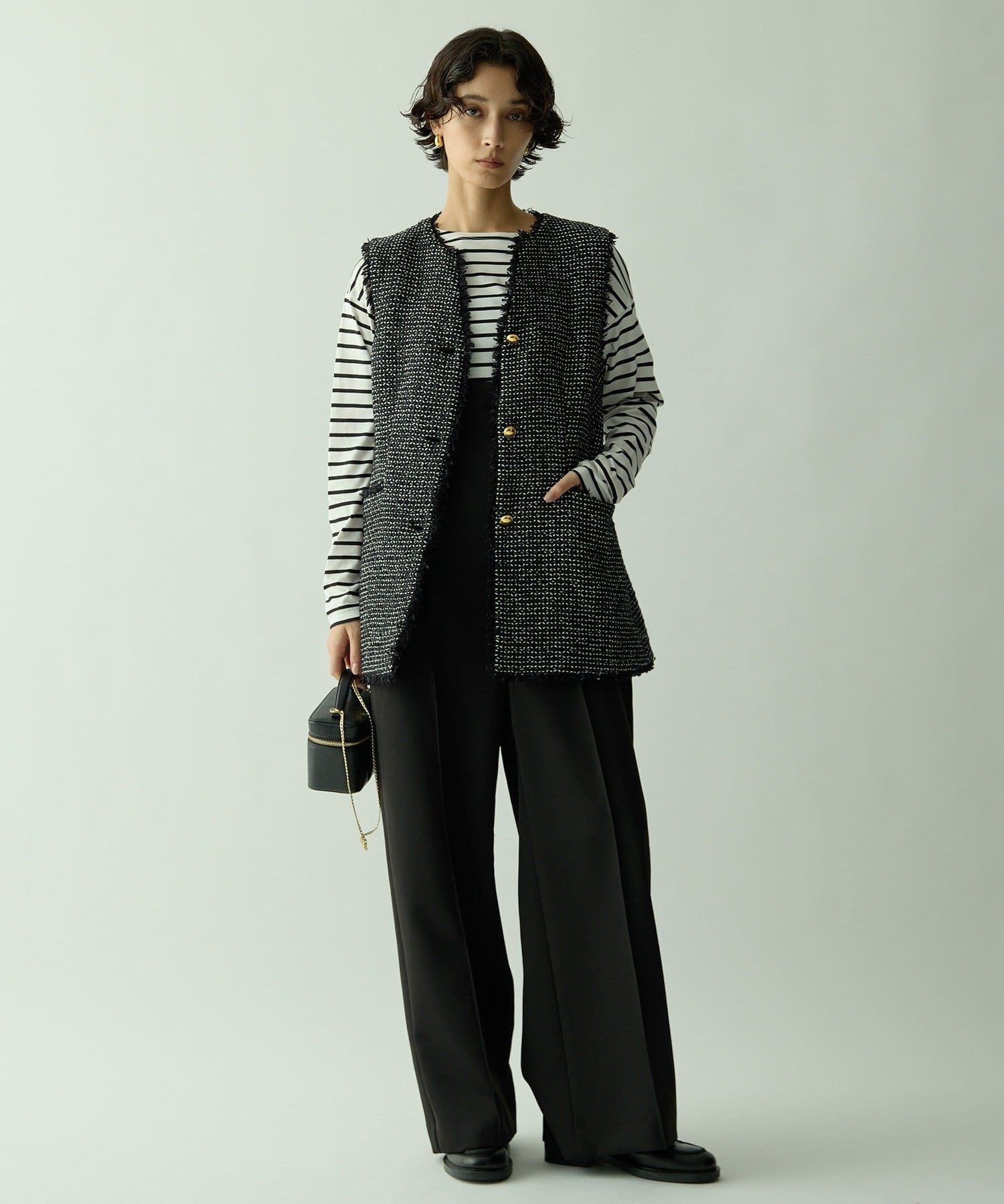 大人のスタイリングを華やかに彩るLINTONツイードジレ