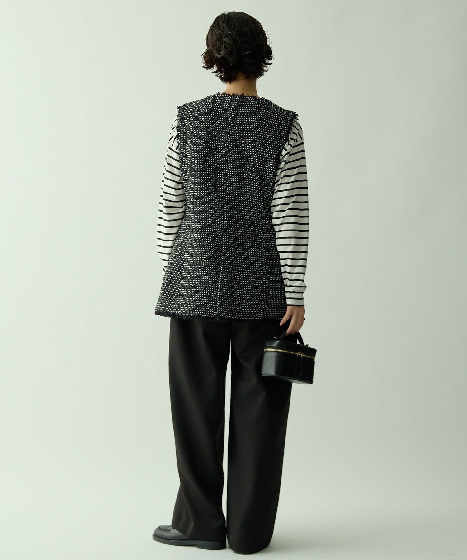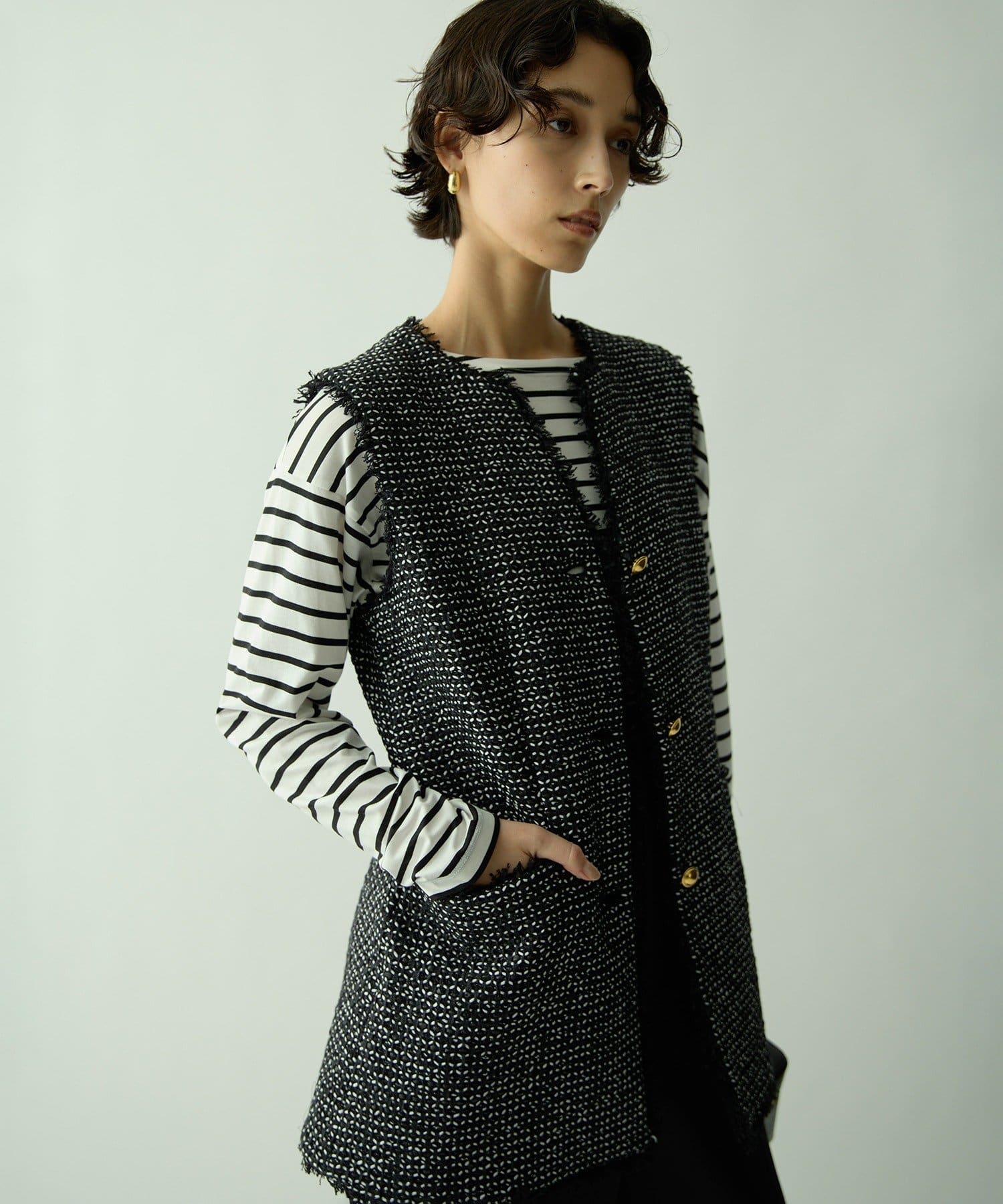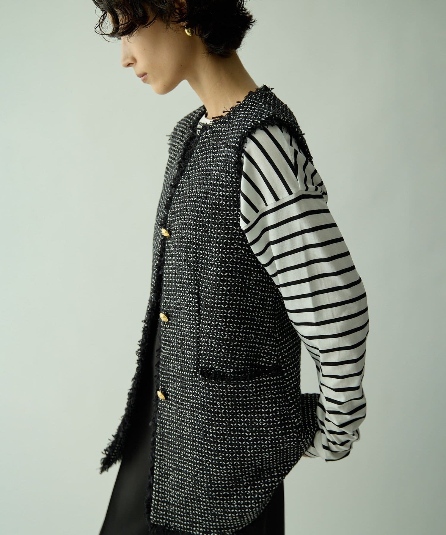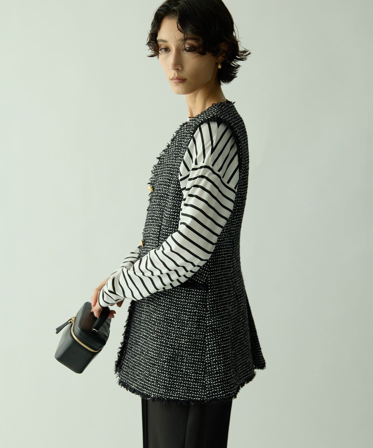 大人のスタイリングを華やかに彩るLINTONツイードジレ