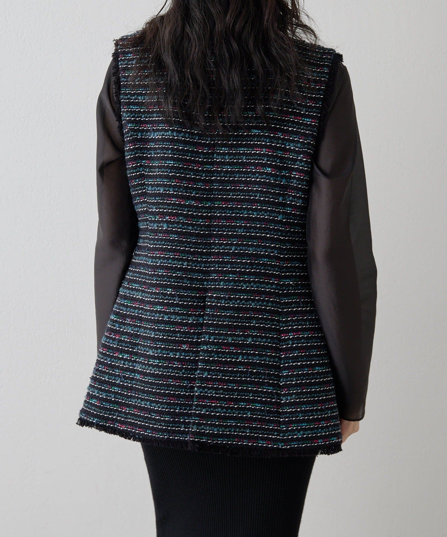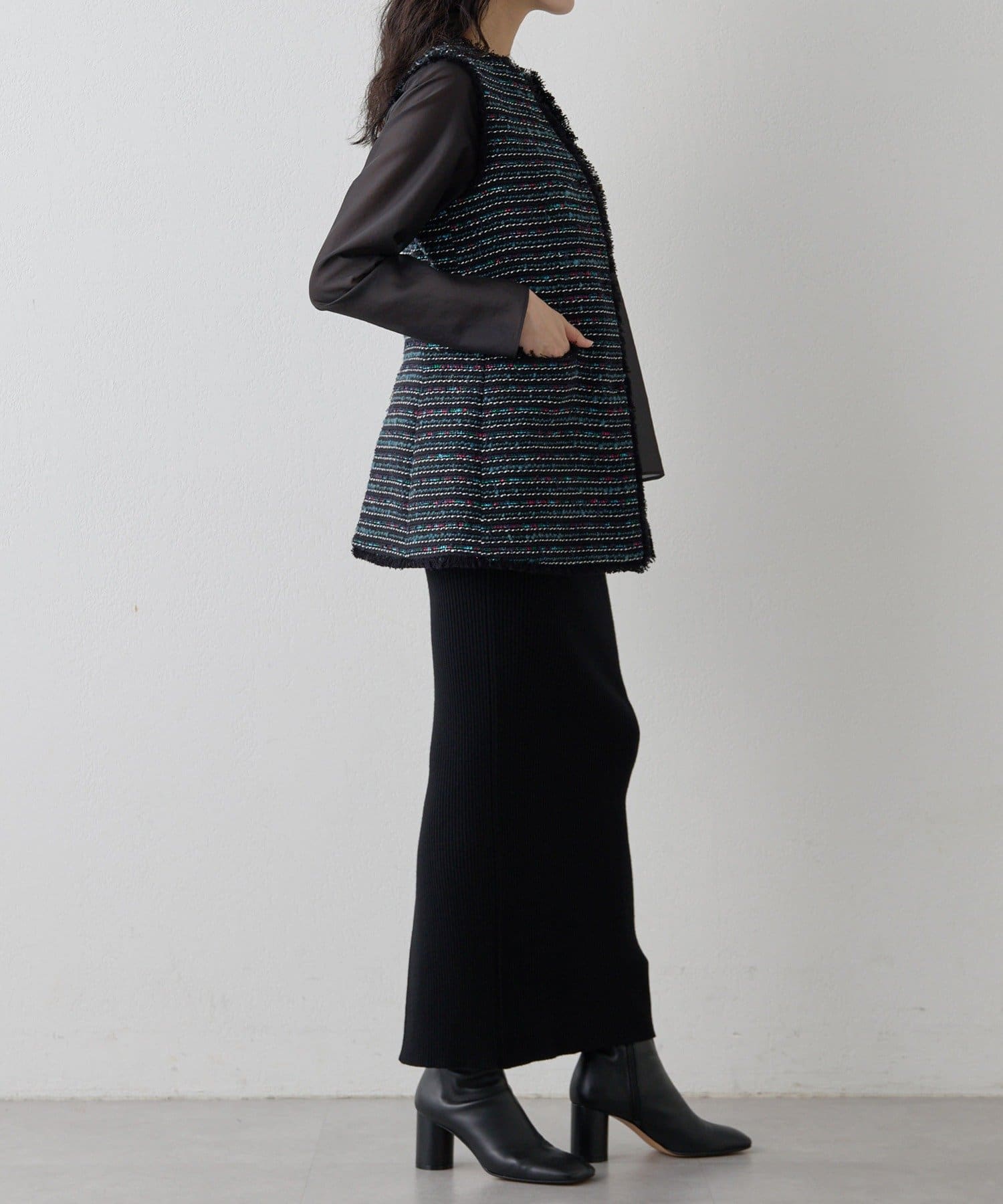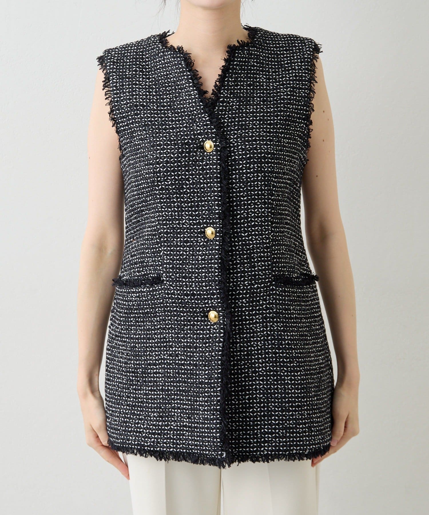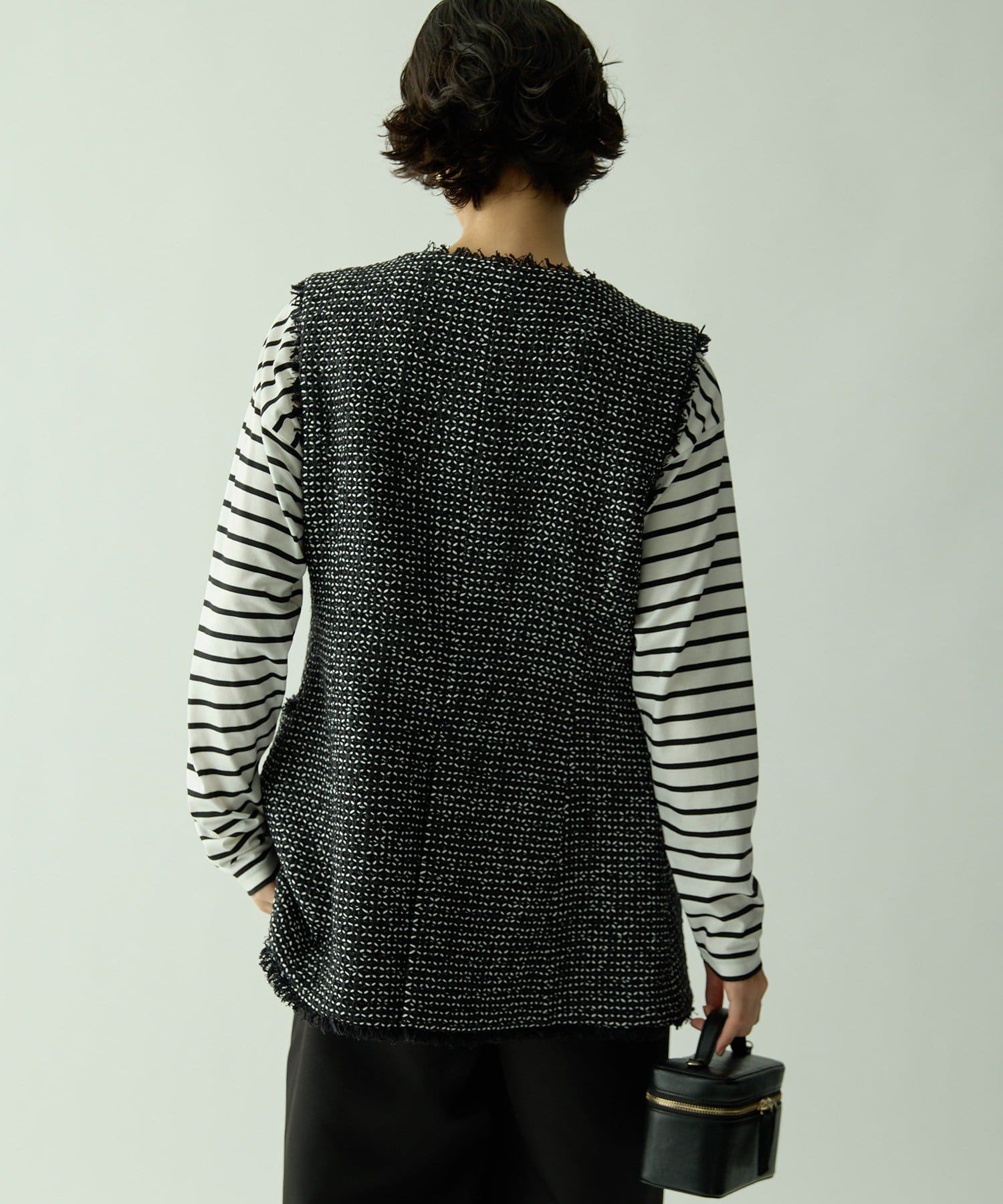 大人のスタイリングを華やかに彩るLINTONツイードジレ
