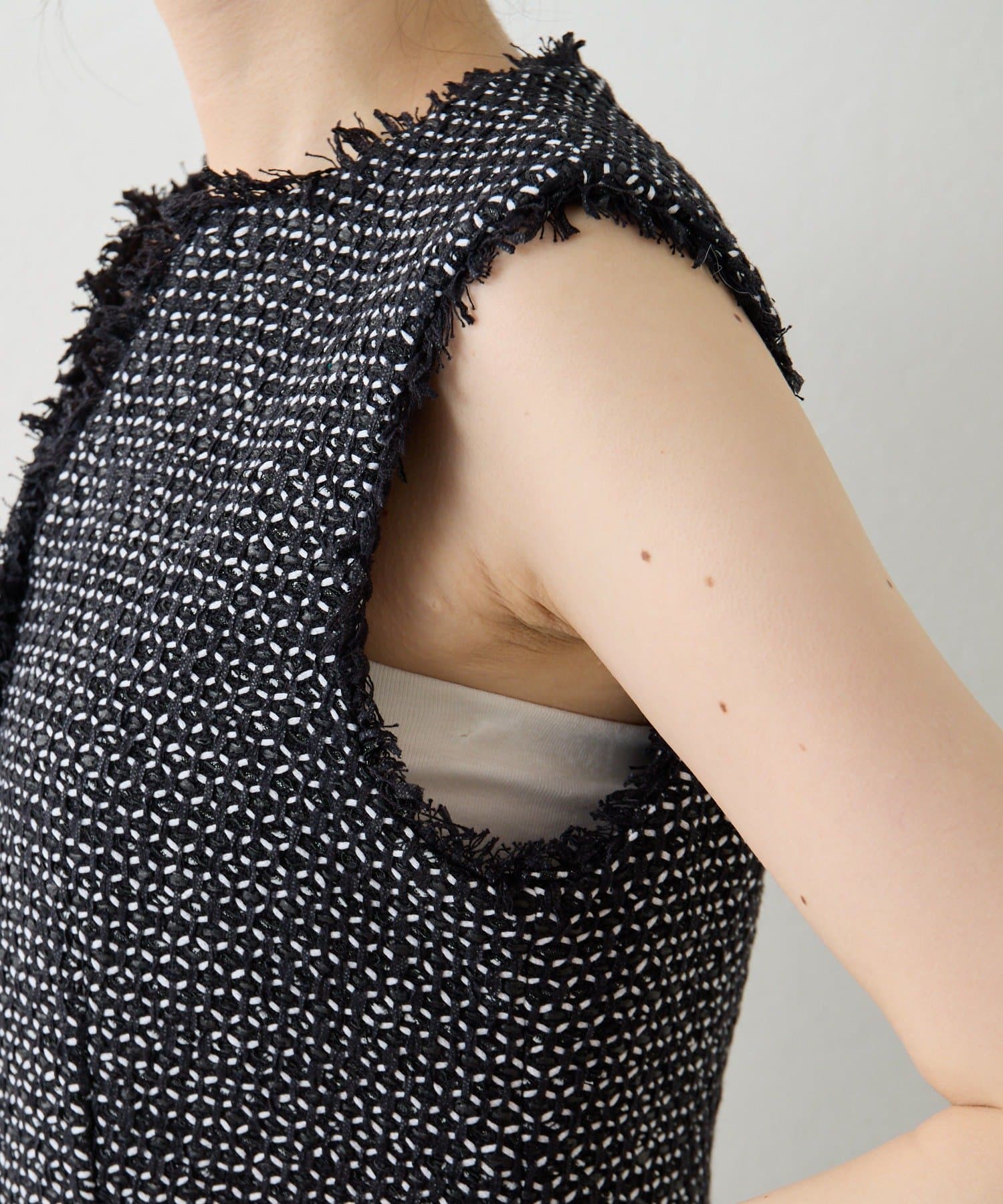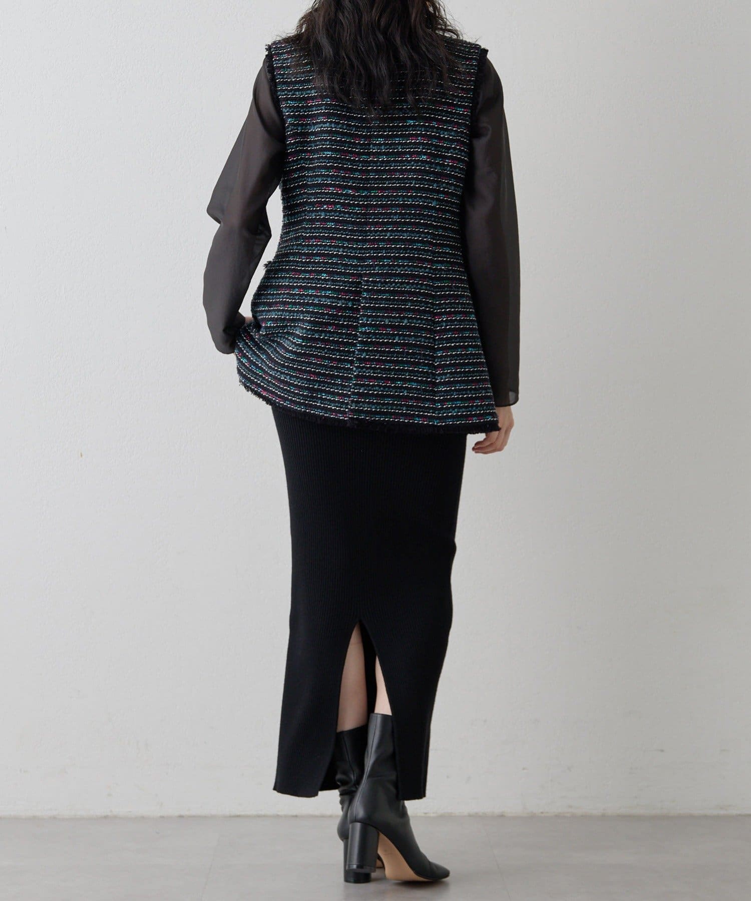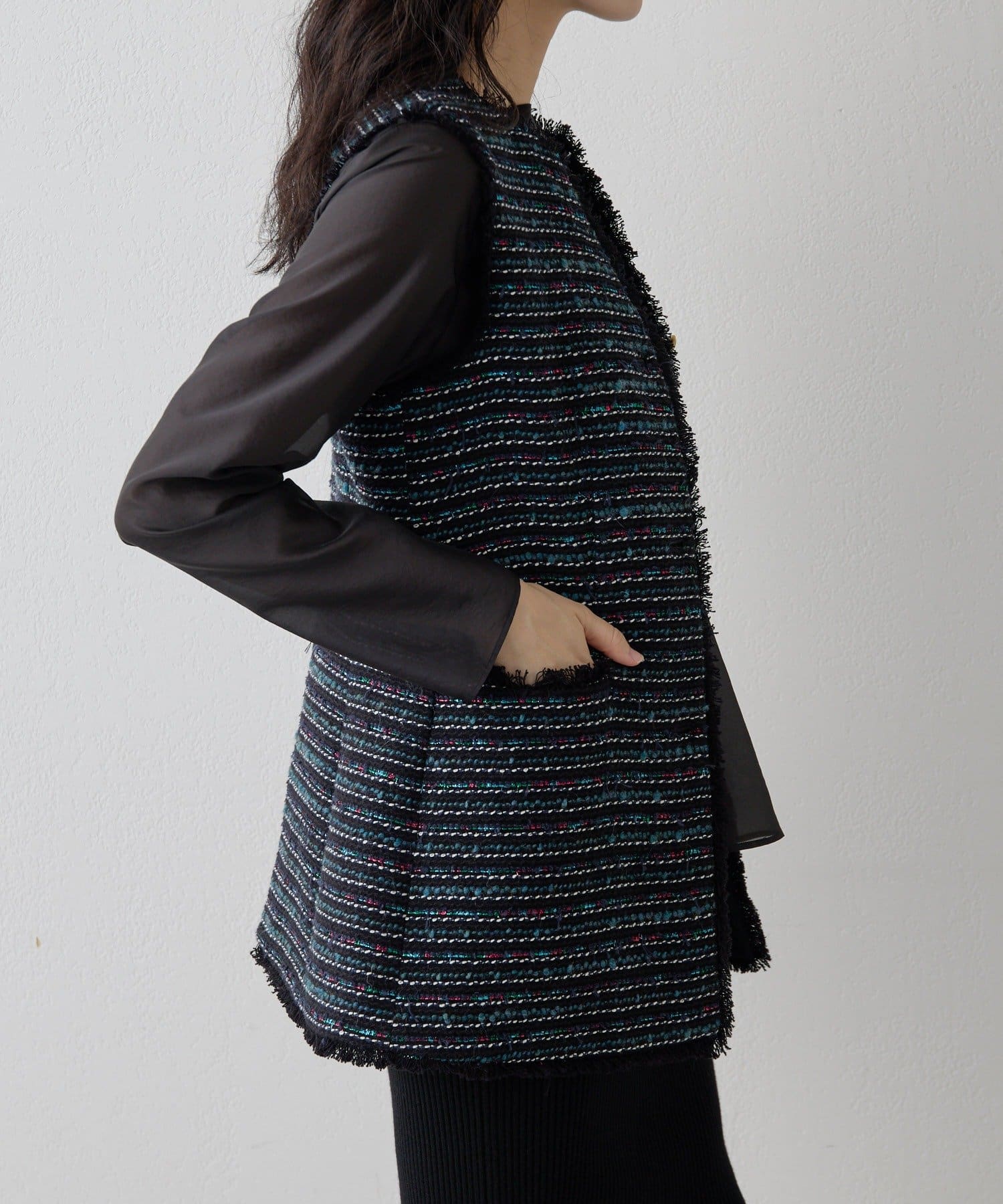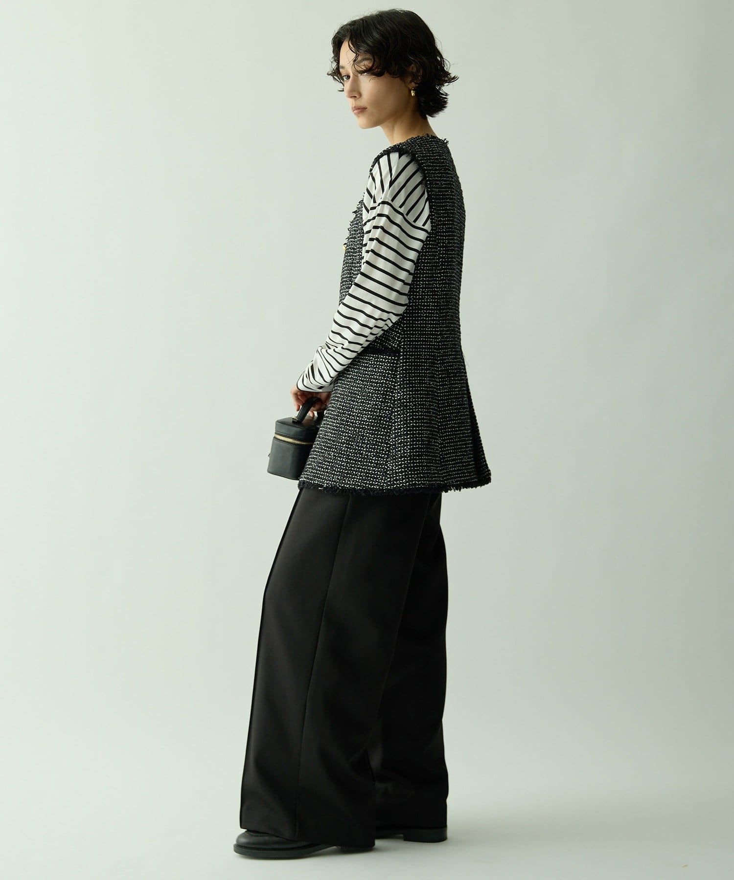 大人のスタイリングを華やかに彩るLINTONツイードジレ