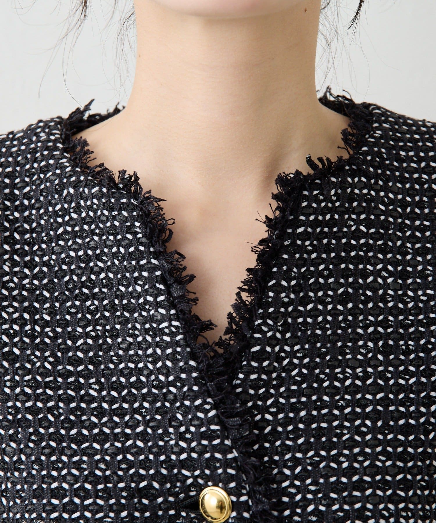 ■アクセント使いの金ボタンに、手作業のフリンジトリミングが抜け感をプラス。