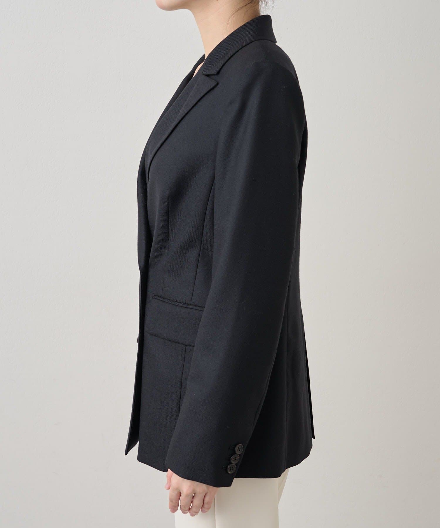 肩がこらないジャケット。着丈の長さもあり堅苦しくならず、今っぽく着れます。