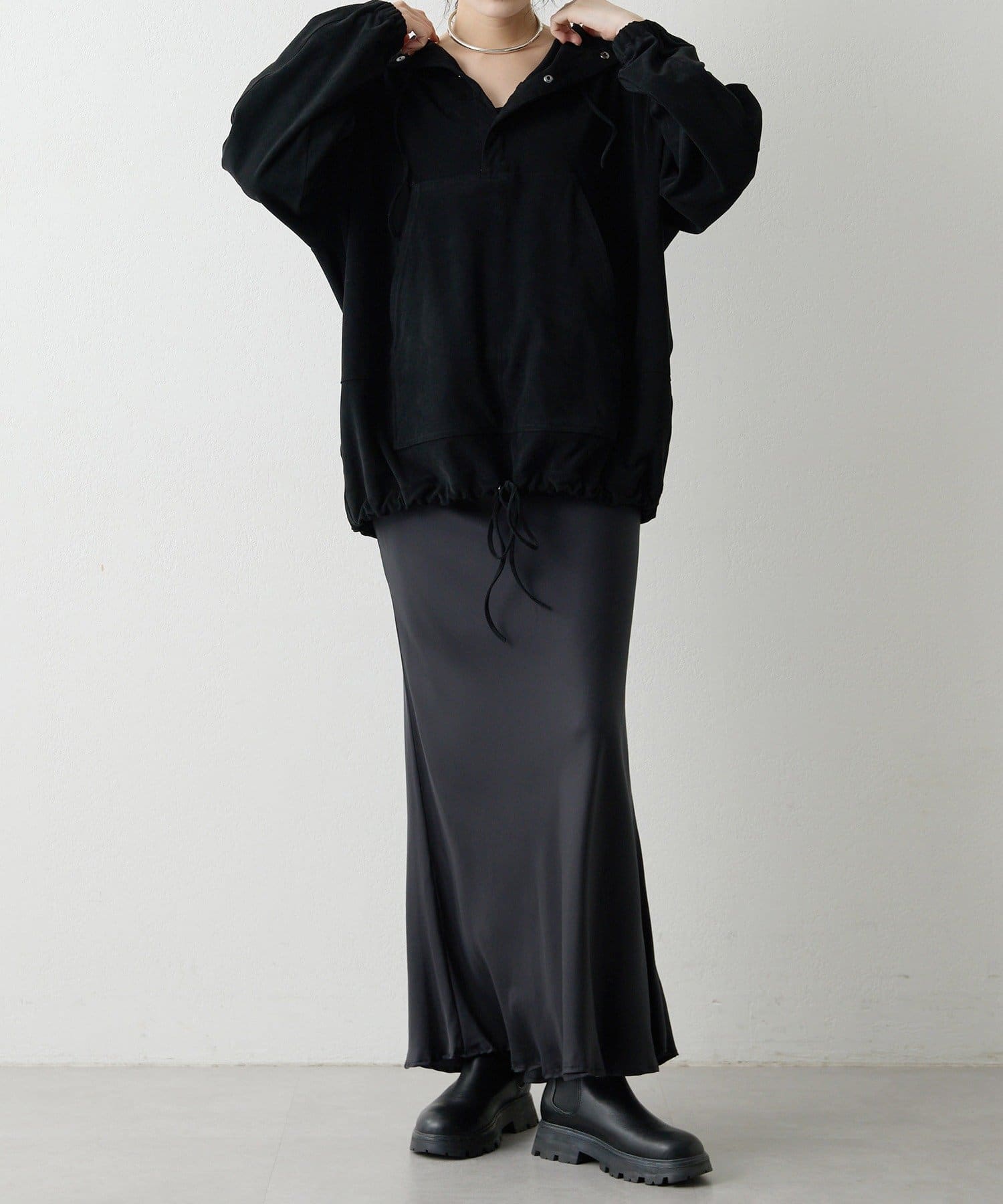 ベーシックなパーカーよりもぐっと洒落た雰囲気に。