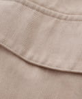 原反洗いによる洗いざらしのナチュラルな表情と膨らみ、製品洗いでこなれ感を出した生地。