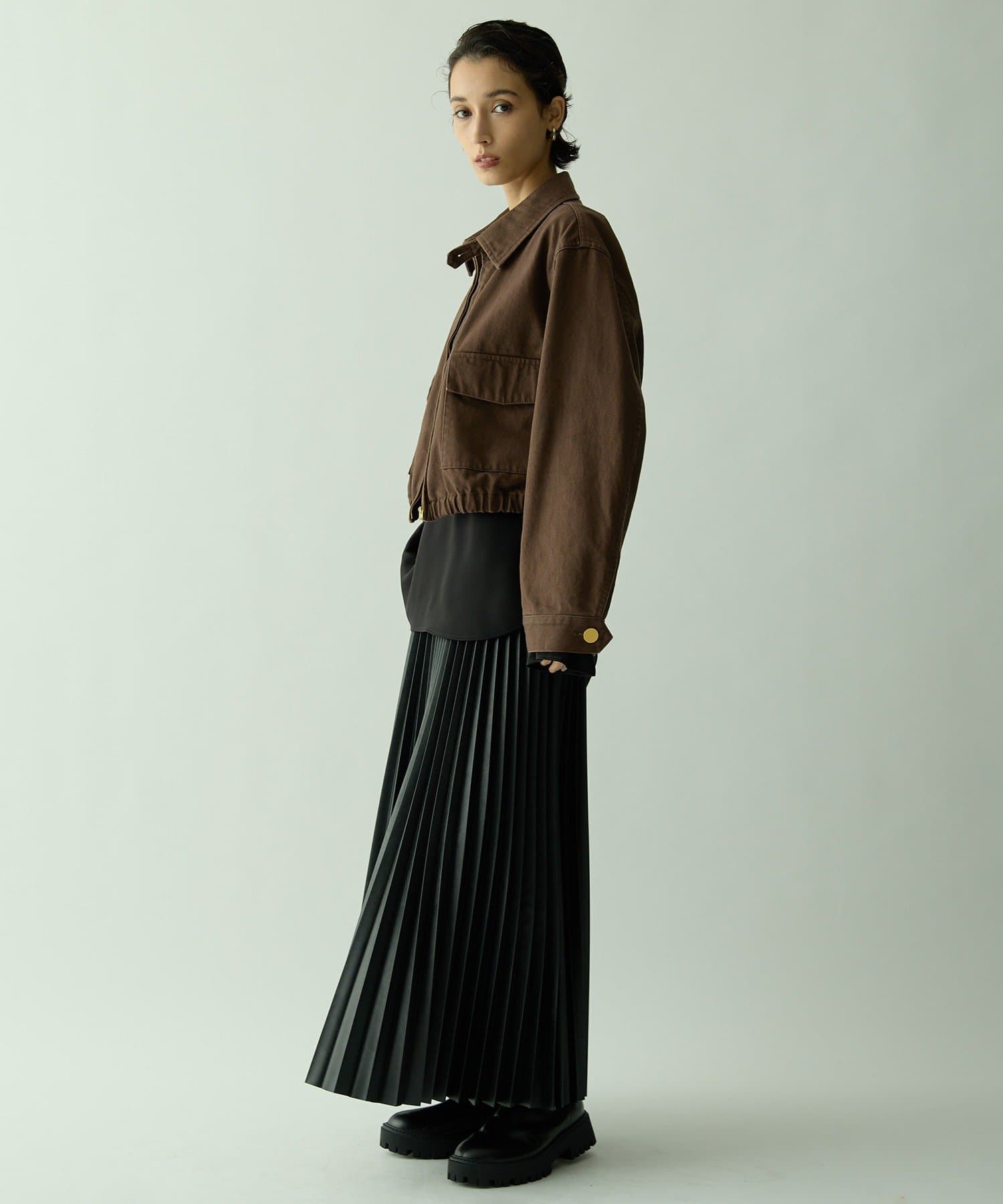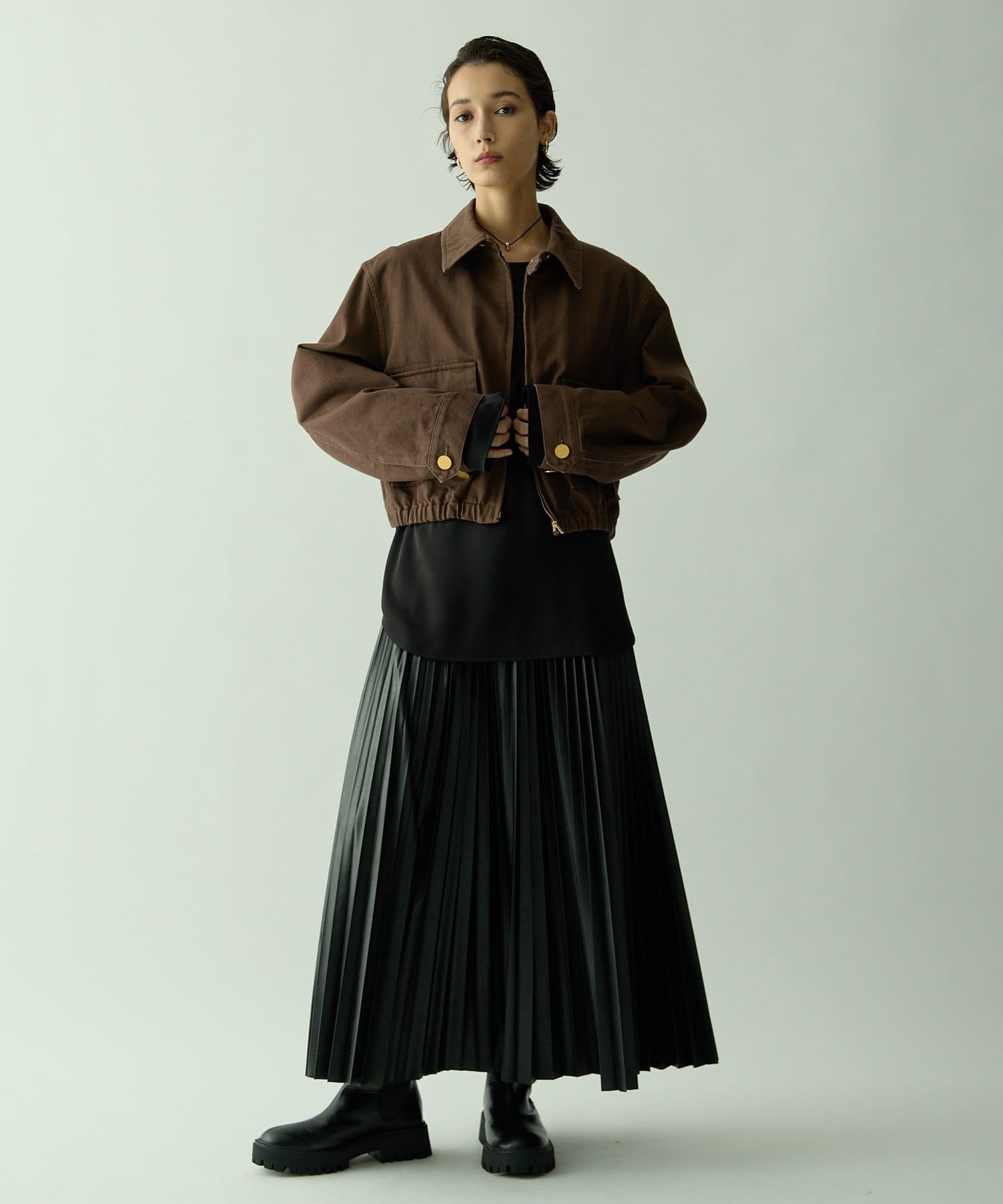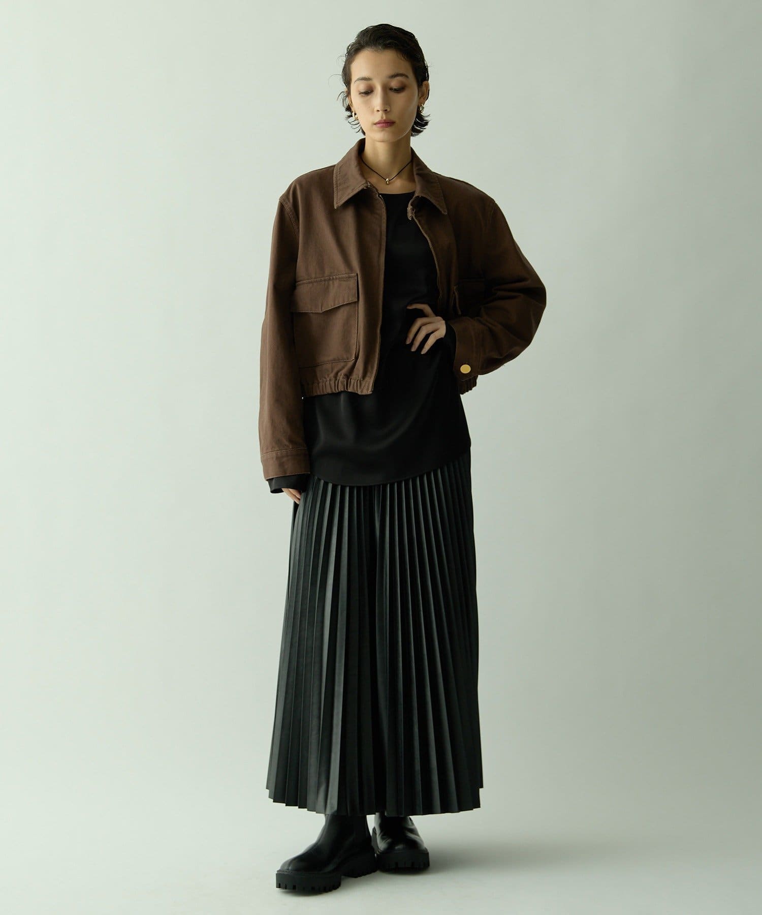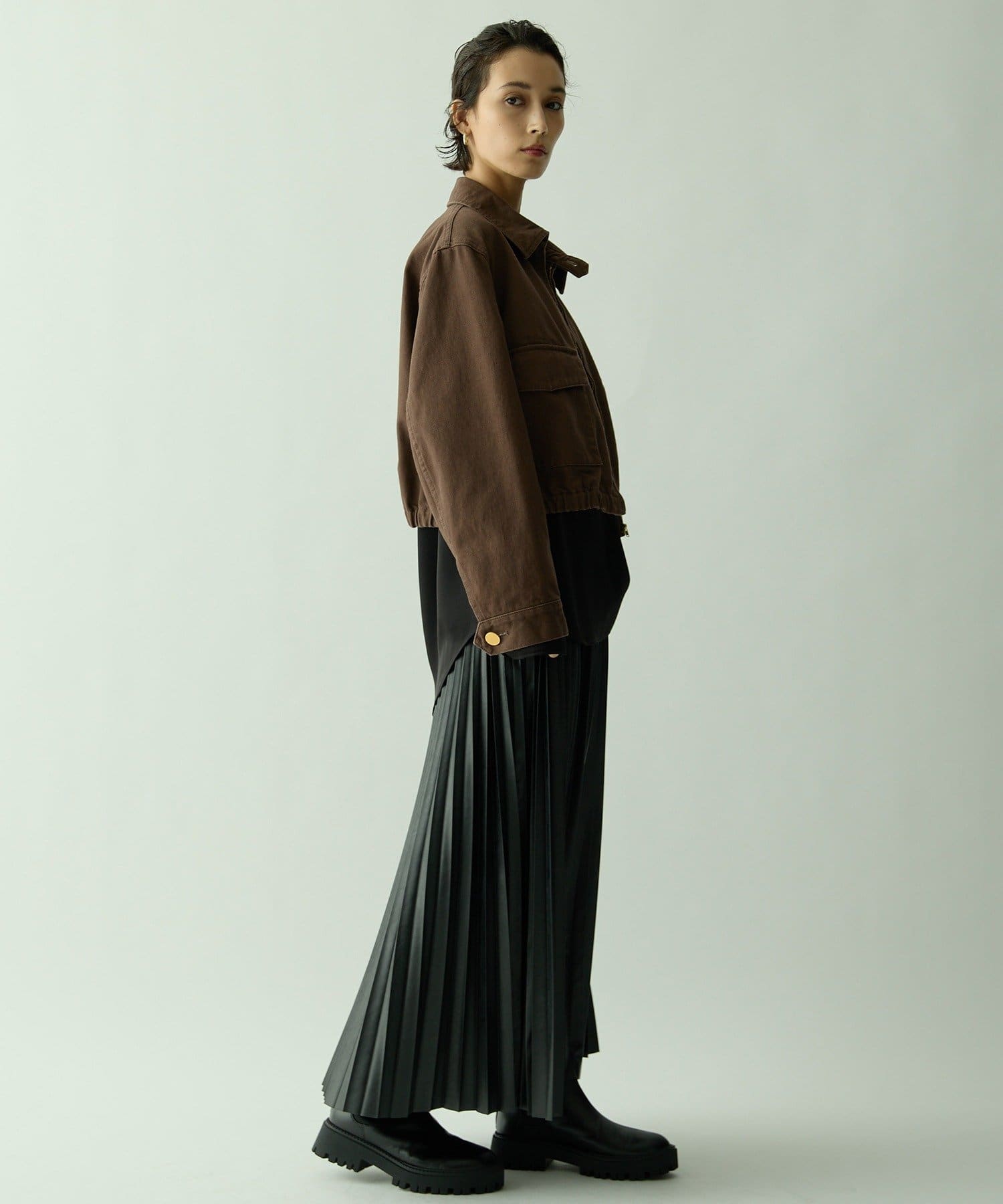 ■短めの着丈は幅広いボトムとバランスが取りやすく、スタイルアップ効果も。