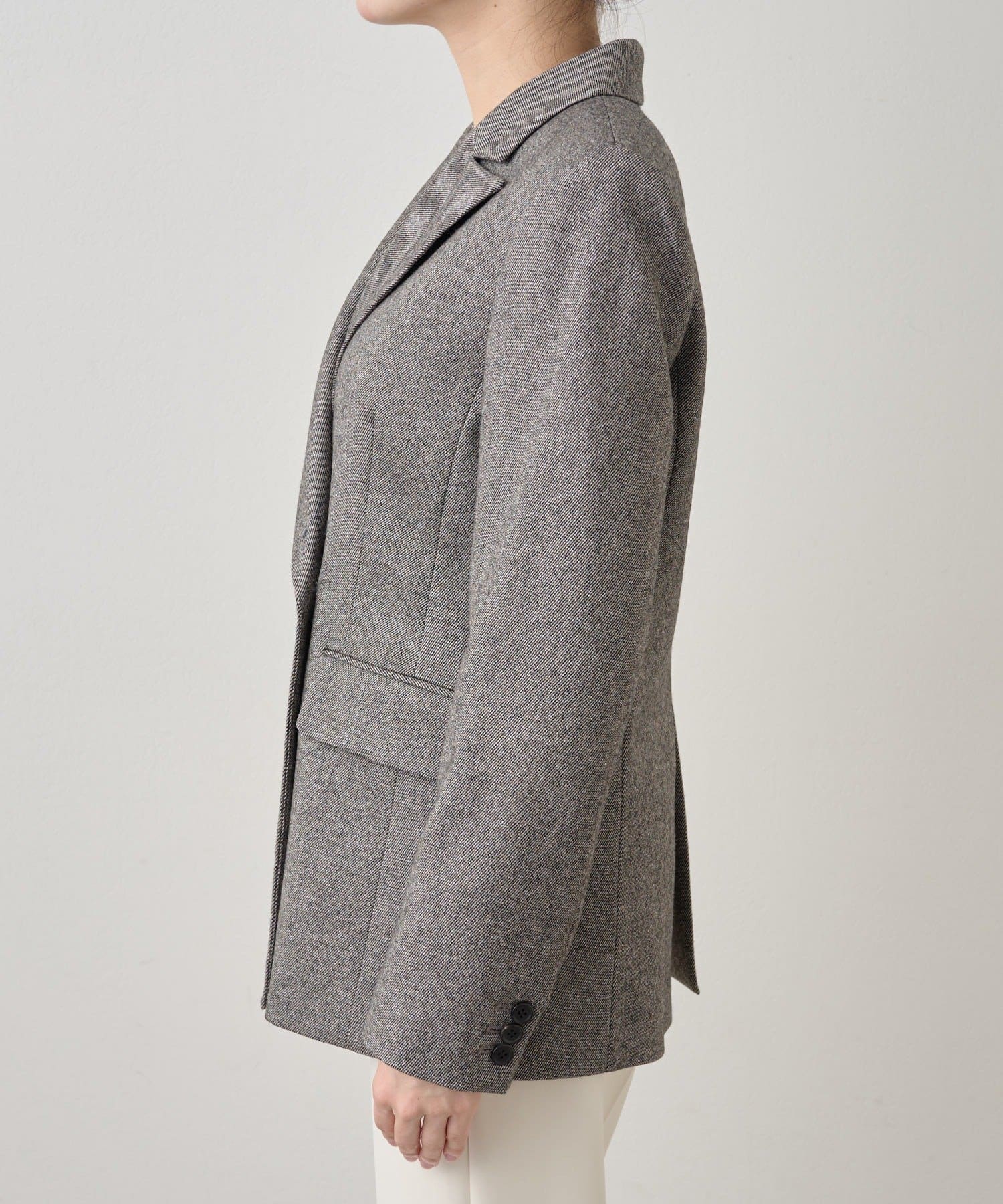 ■艶感のあるミックスツイード素材のクラシカルな表情が魅力。