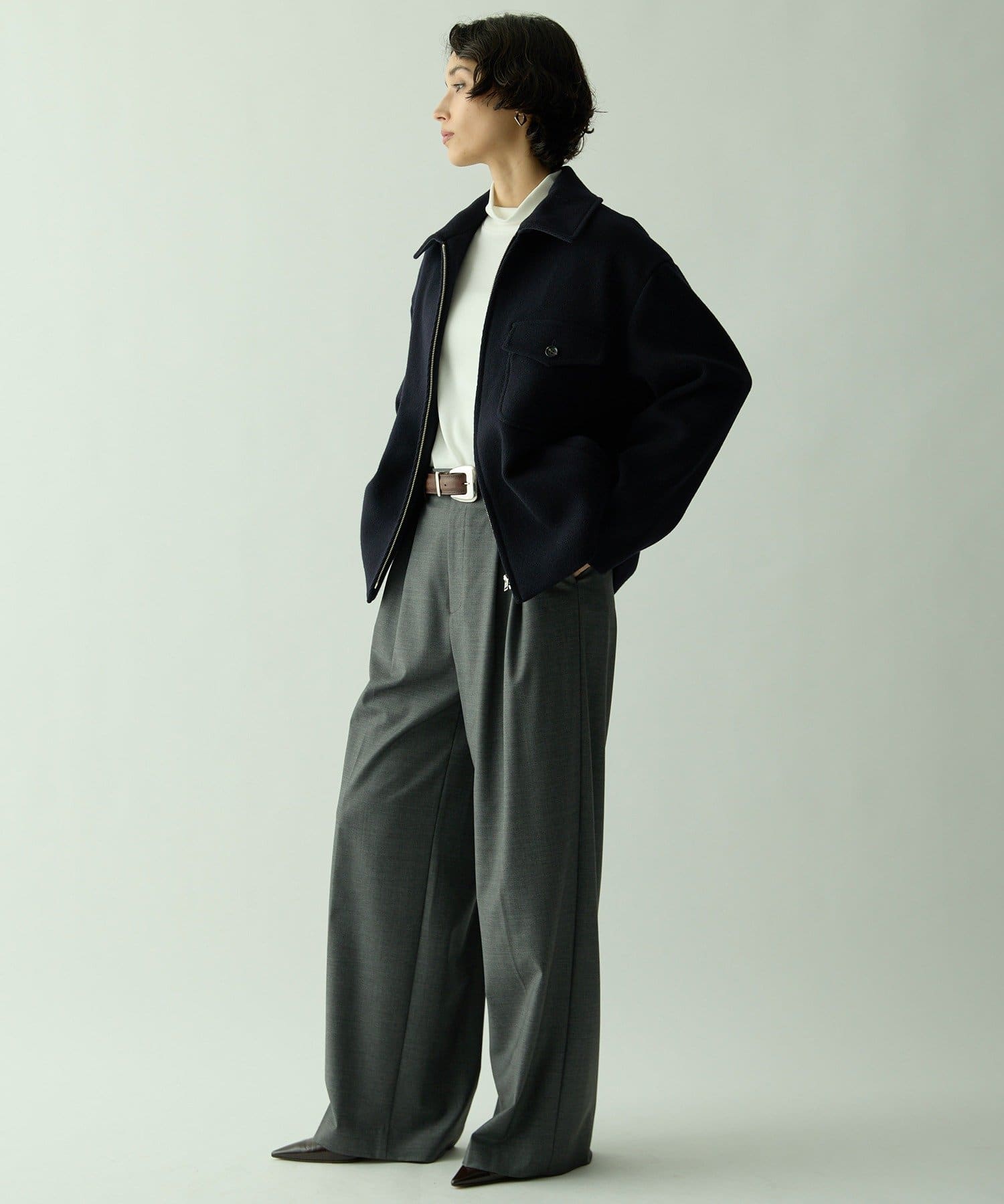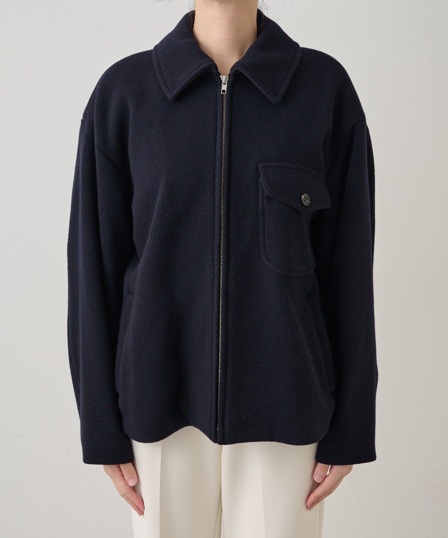 ■凹凸感のある表情が特徴のウールカルゼ素材で仕立てたブルゾン。