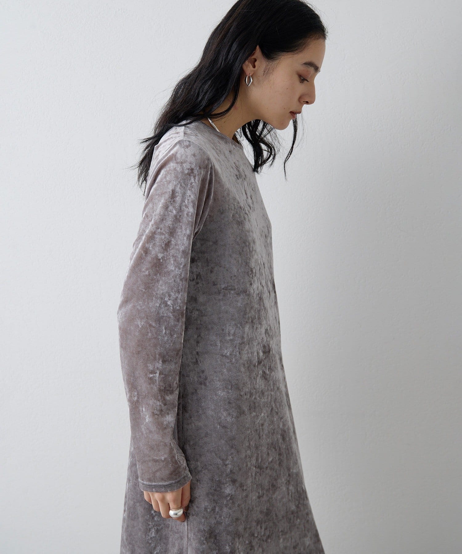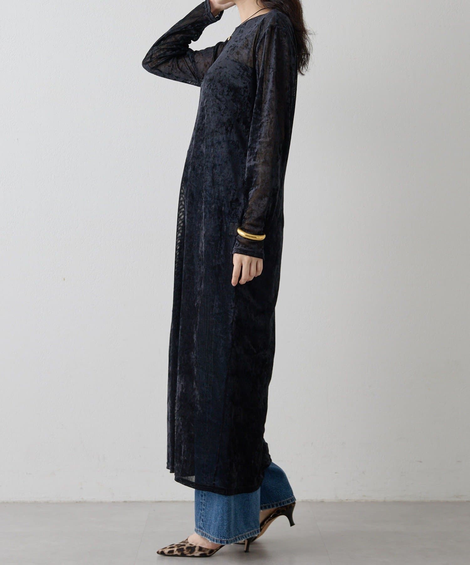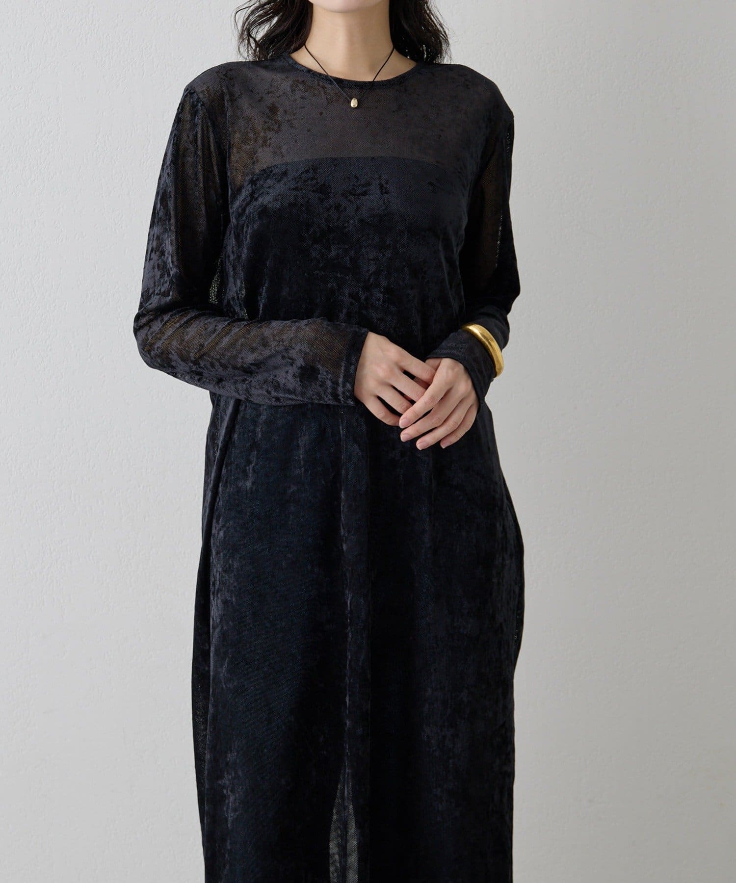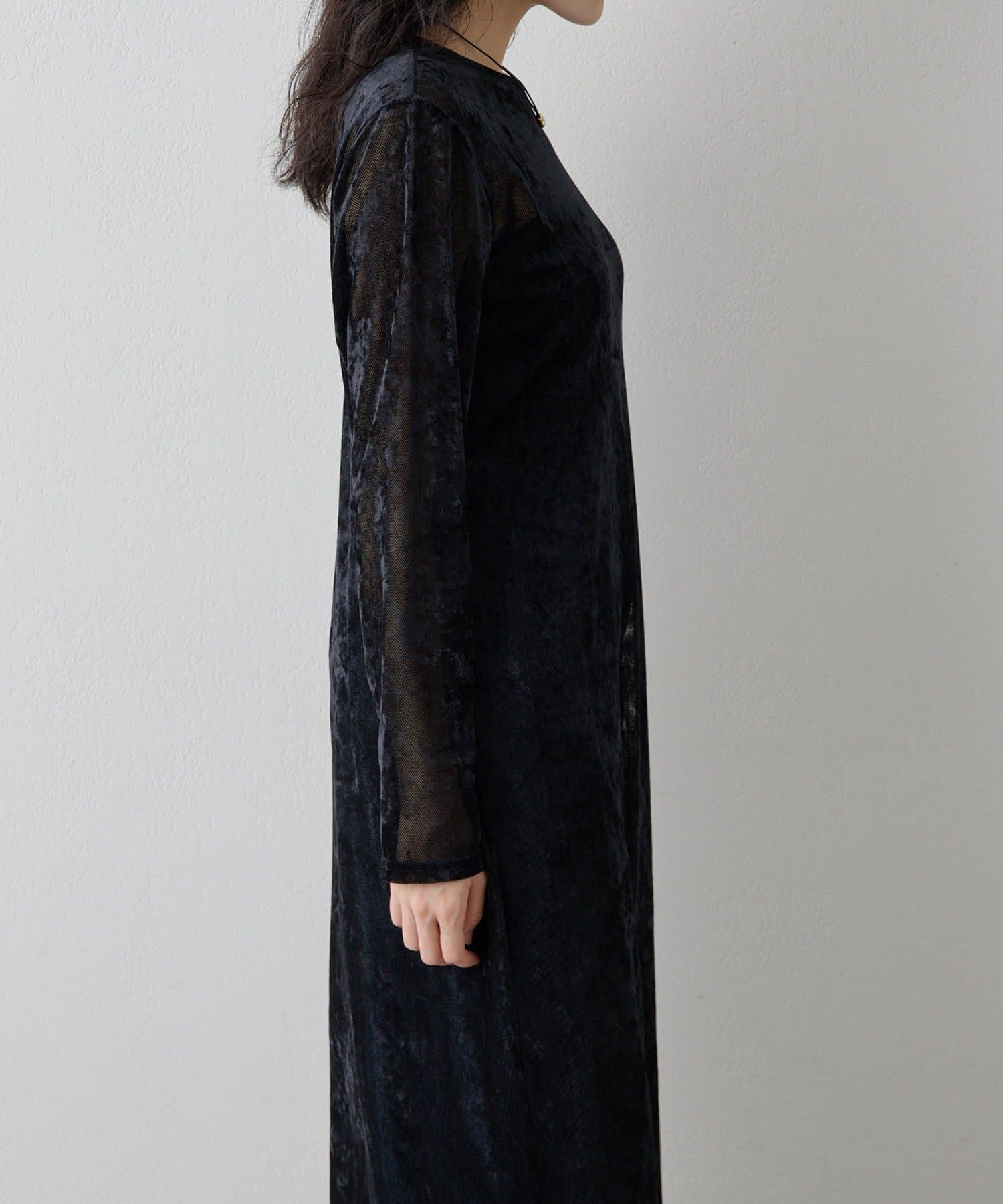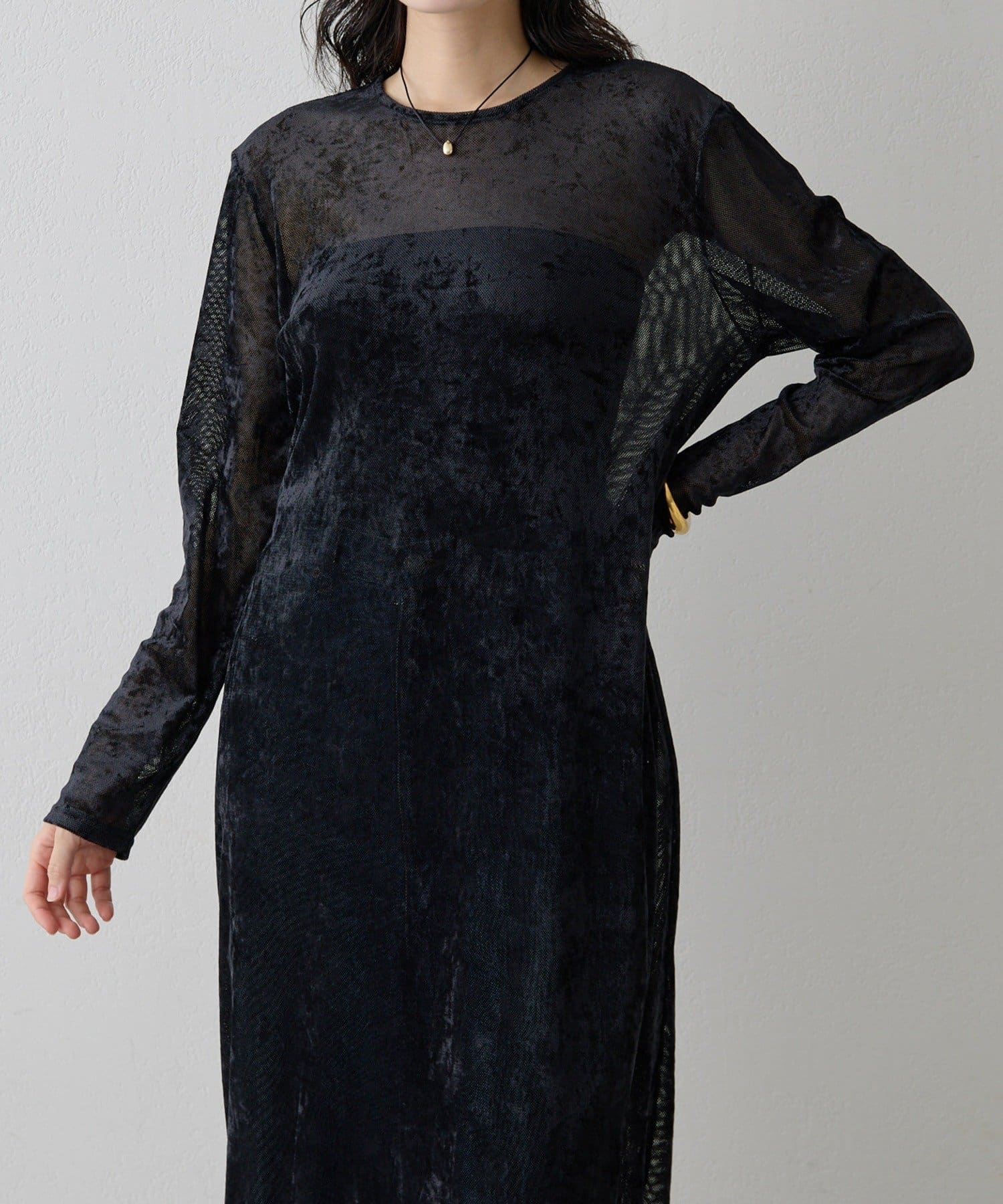 ■上品な光沢のあるメッシュベロアを使用したワンピース。