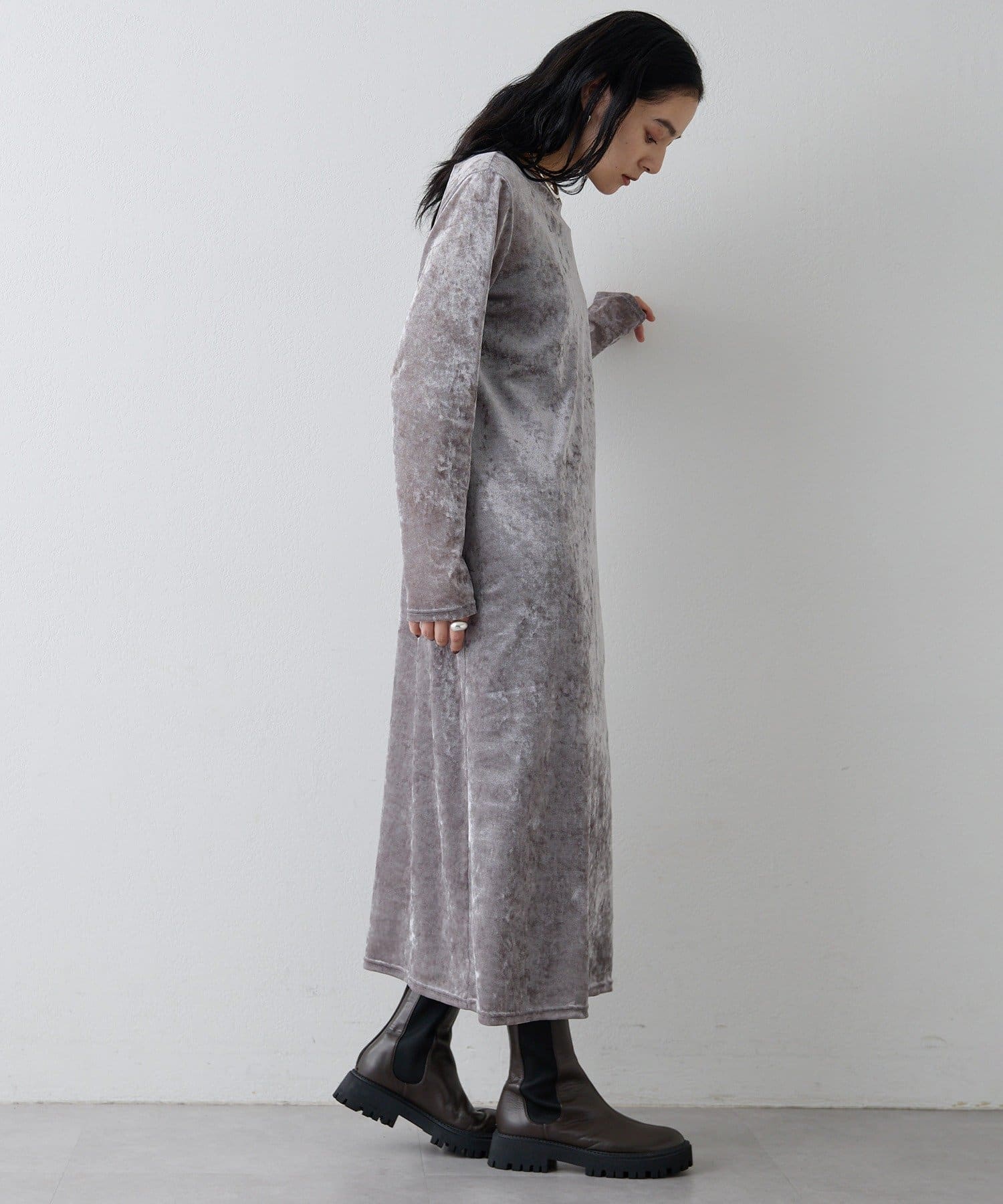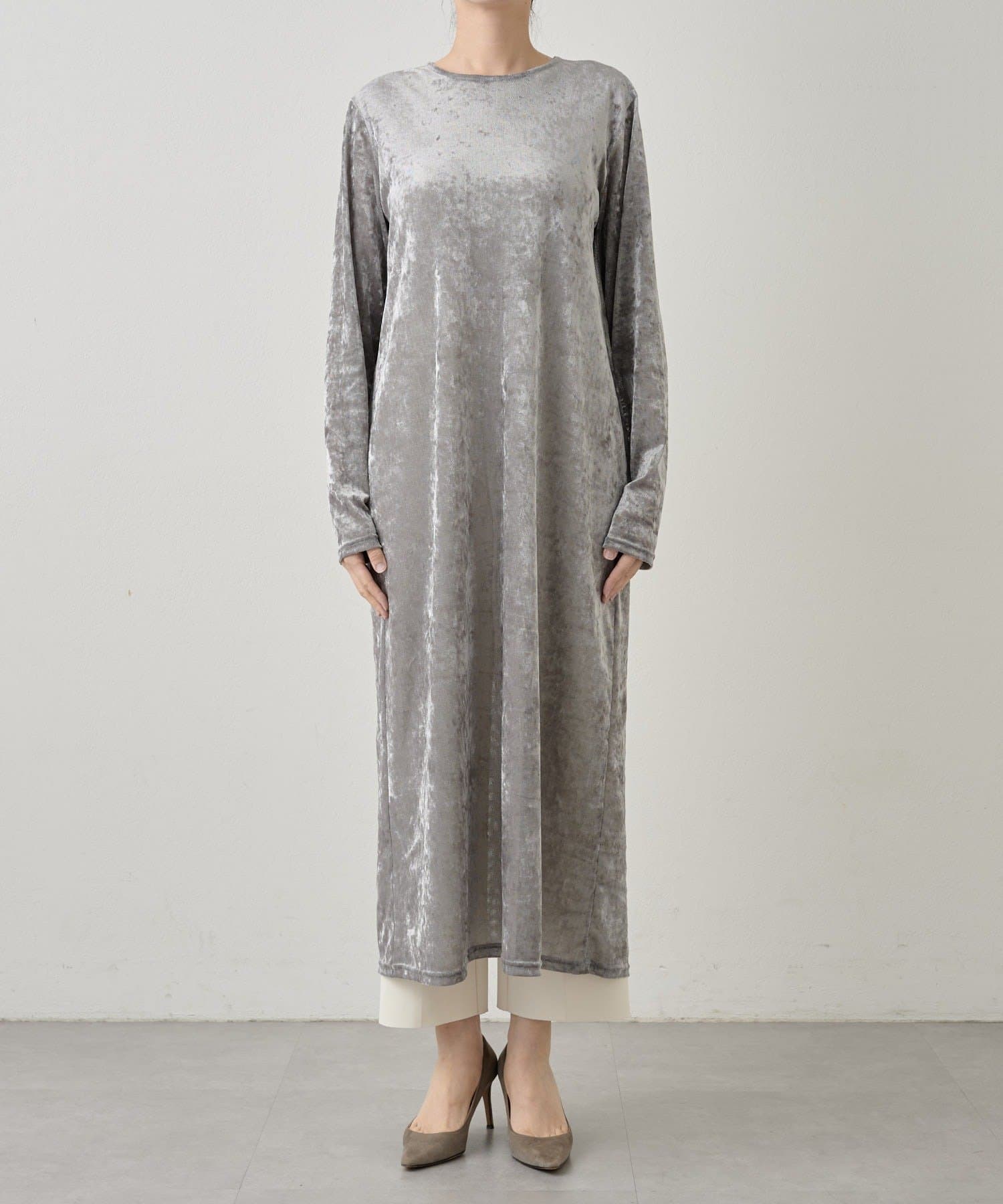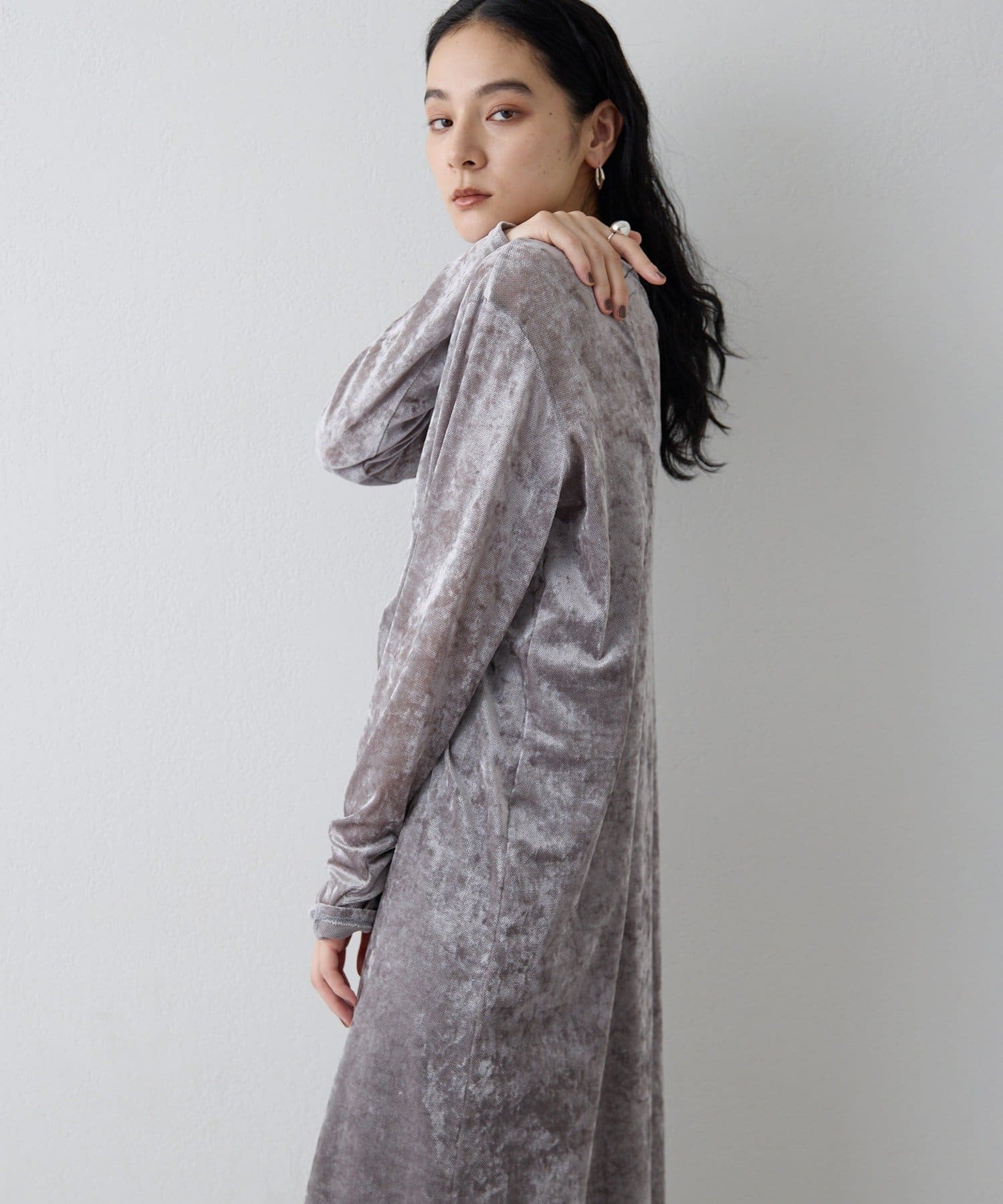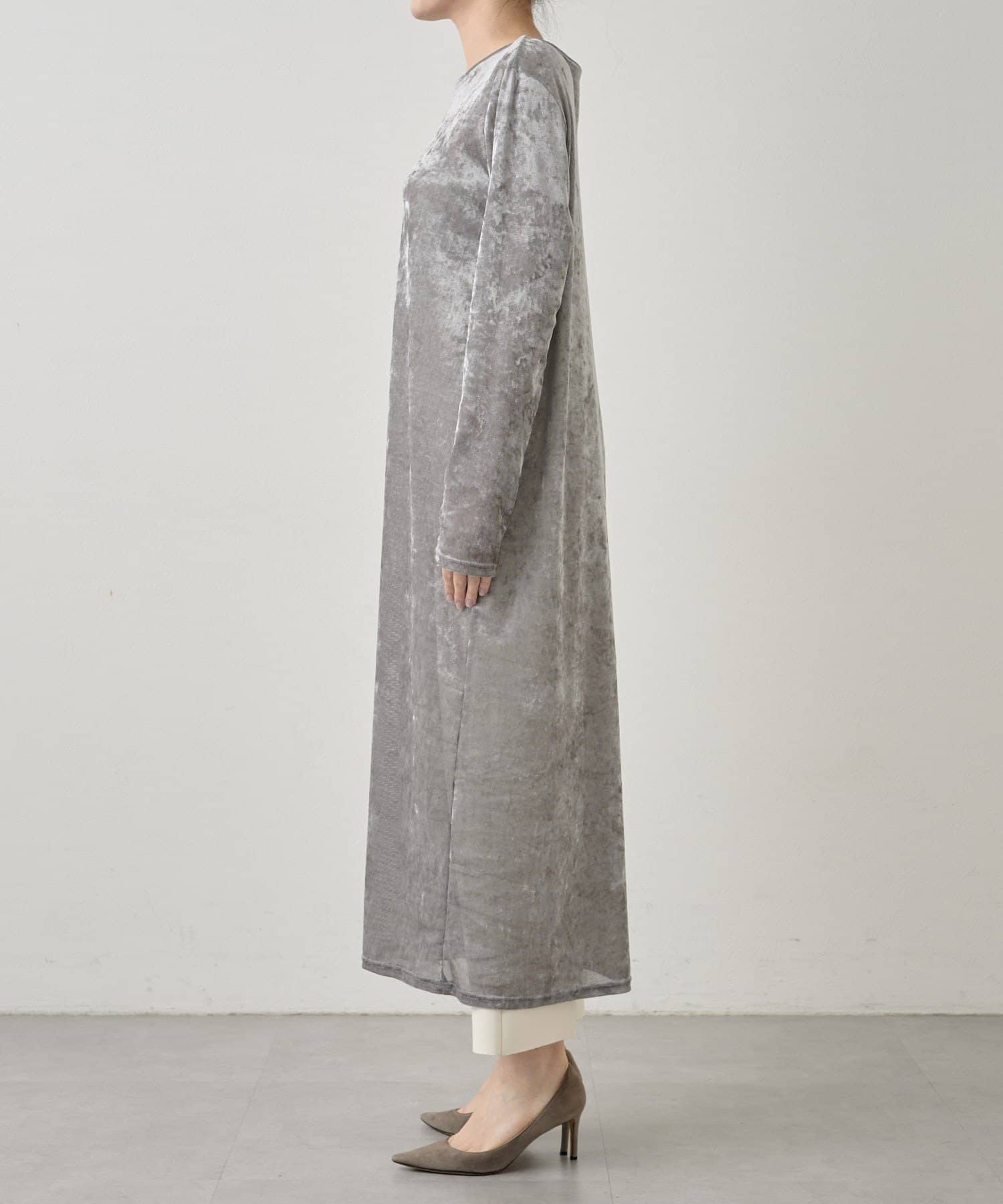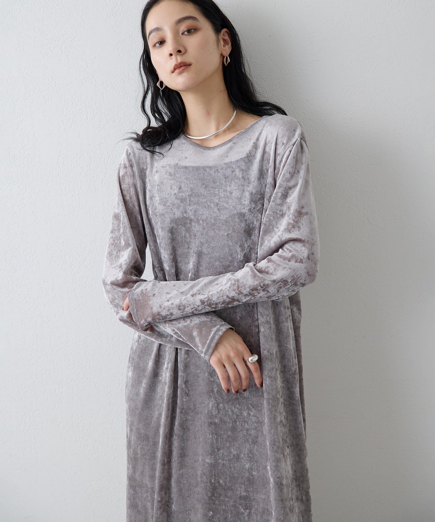 ■上品な光沢のあるメッシュベロアを使用したワンピース。