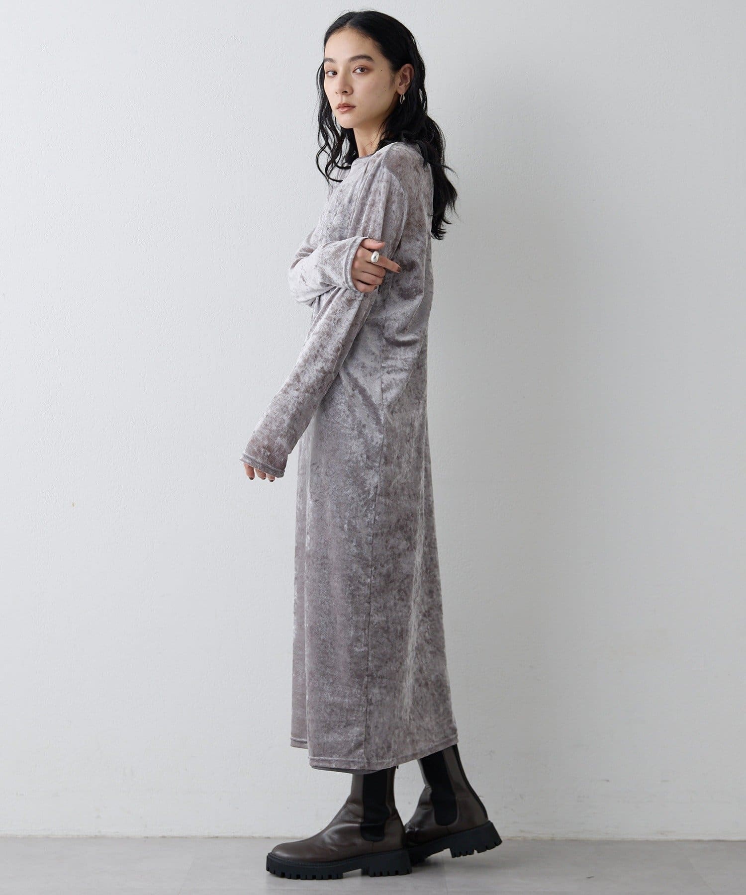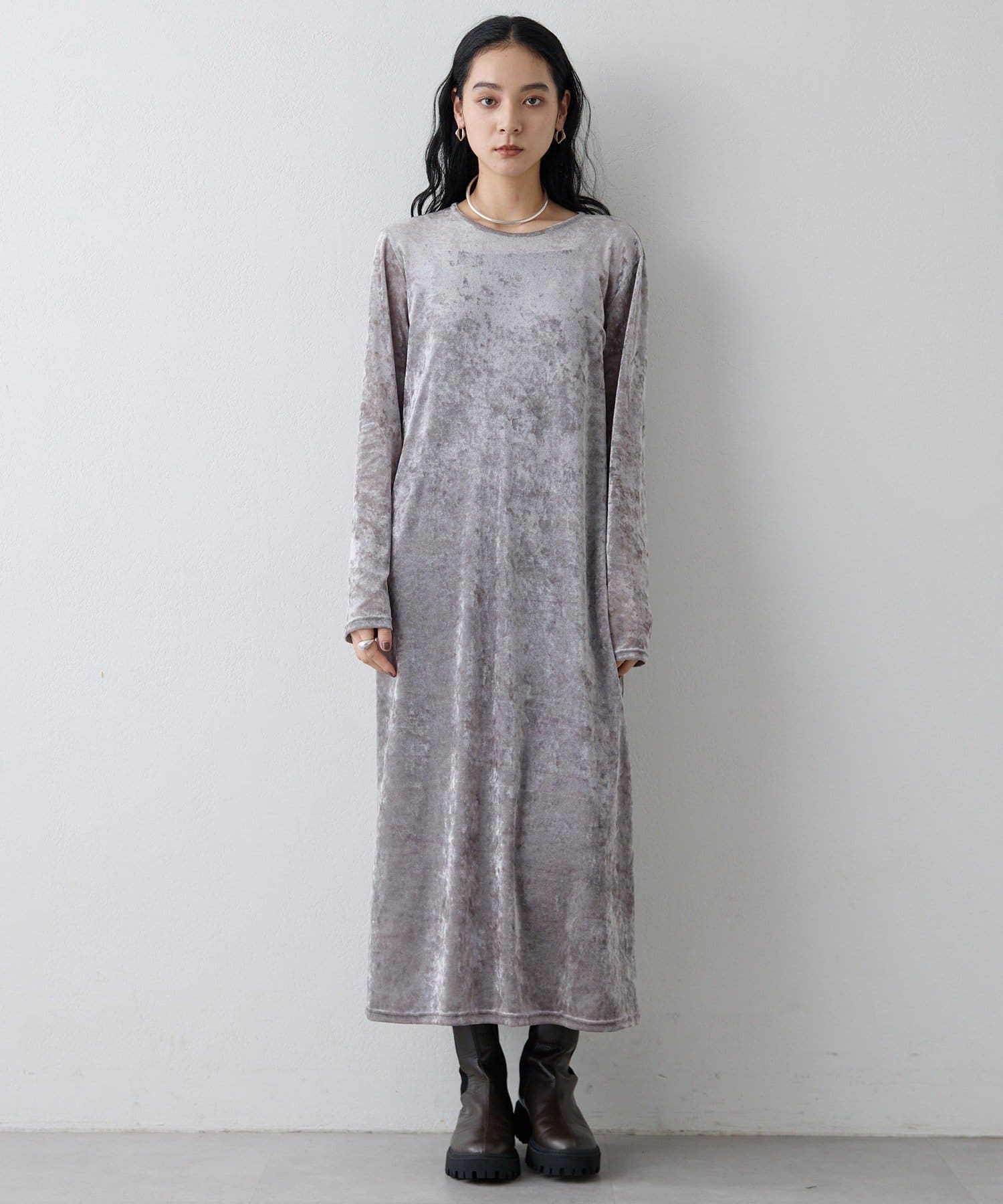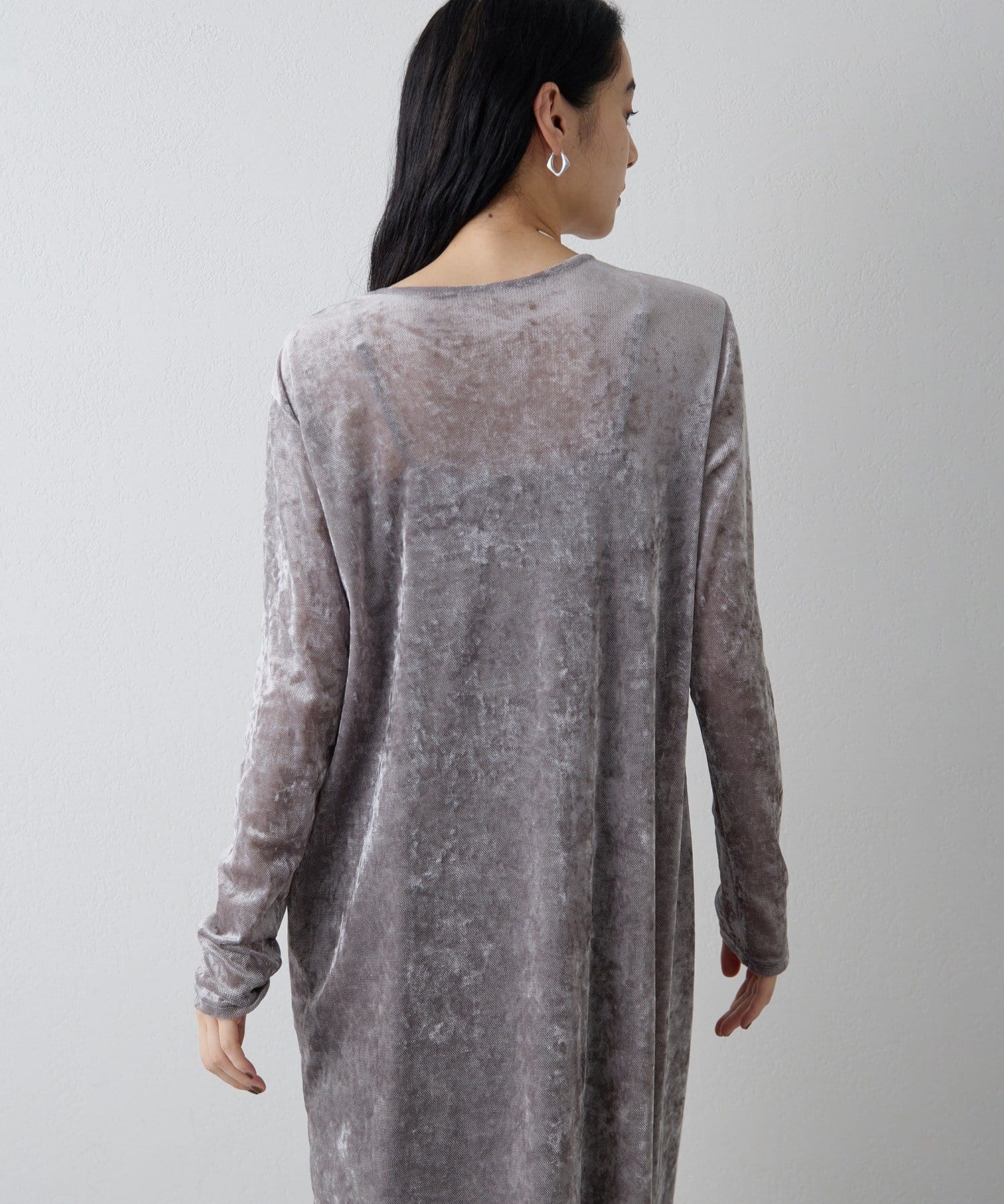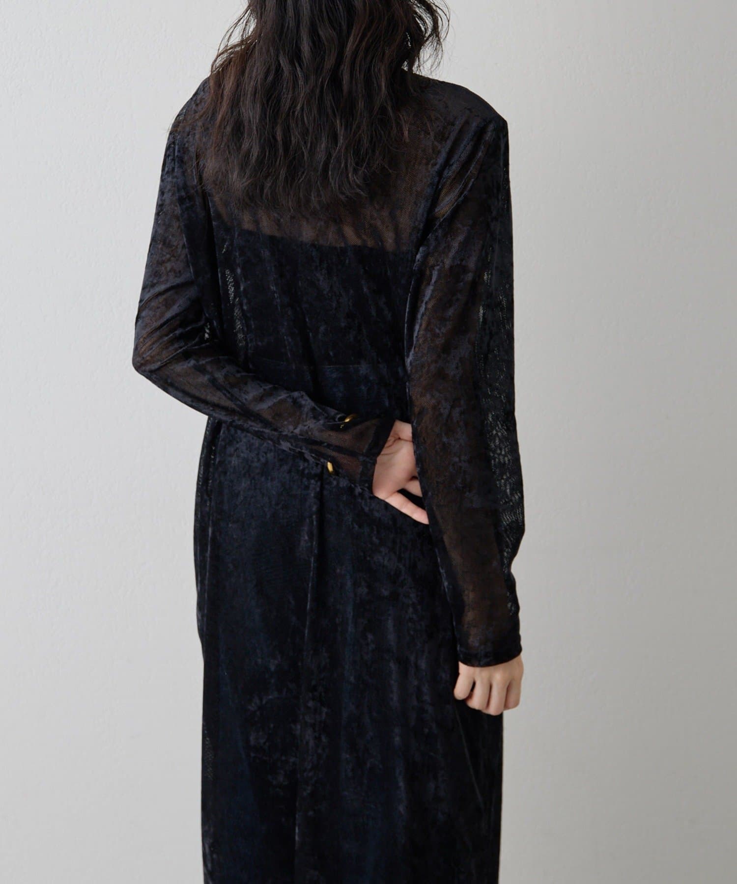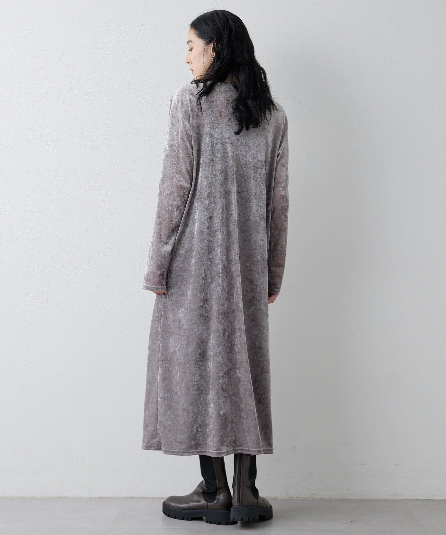 ■上品な光沢のあるメッシュベロアを使用したワンピース。