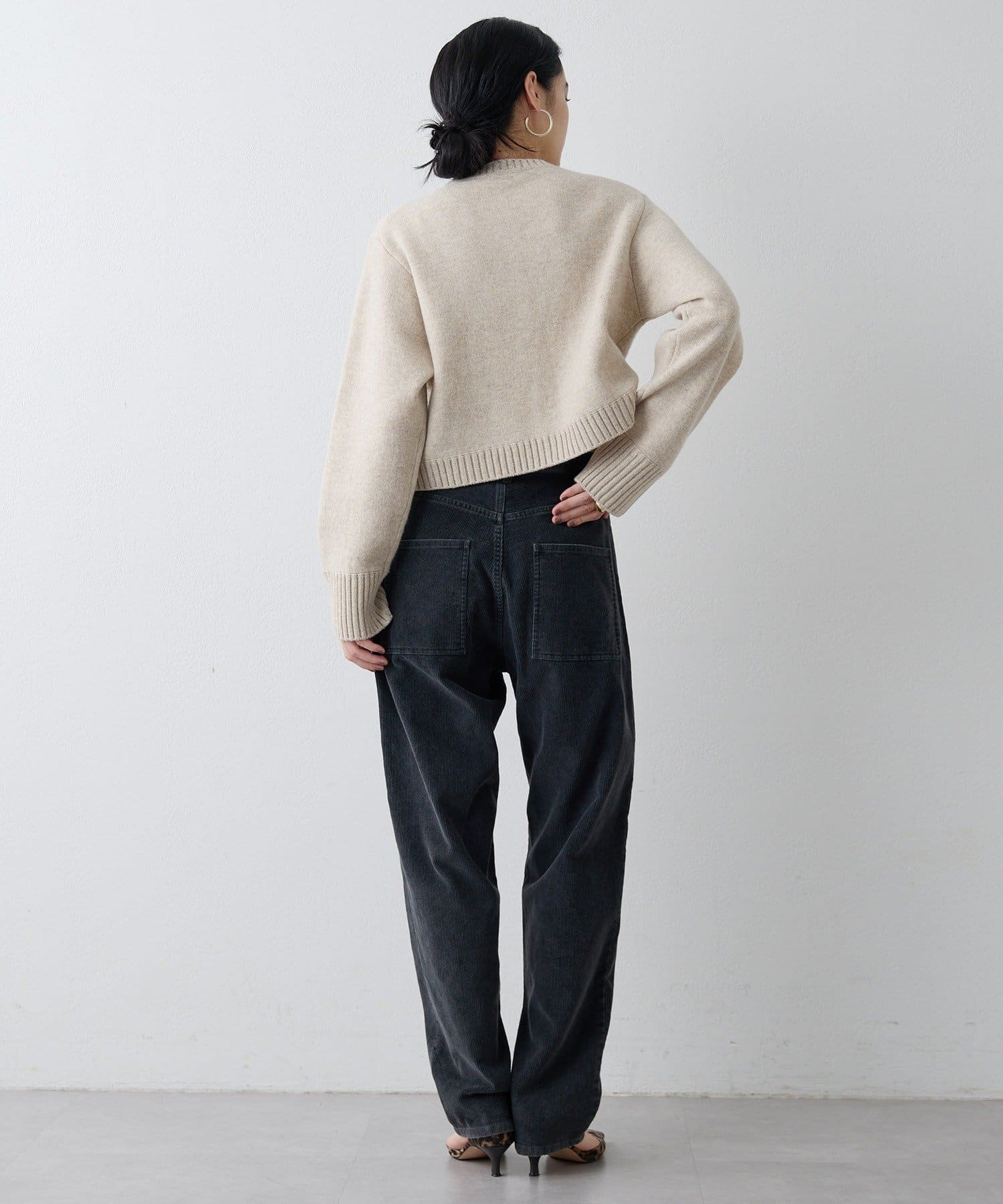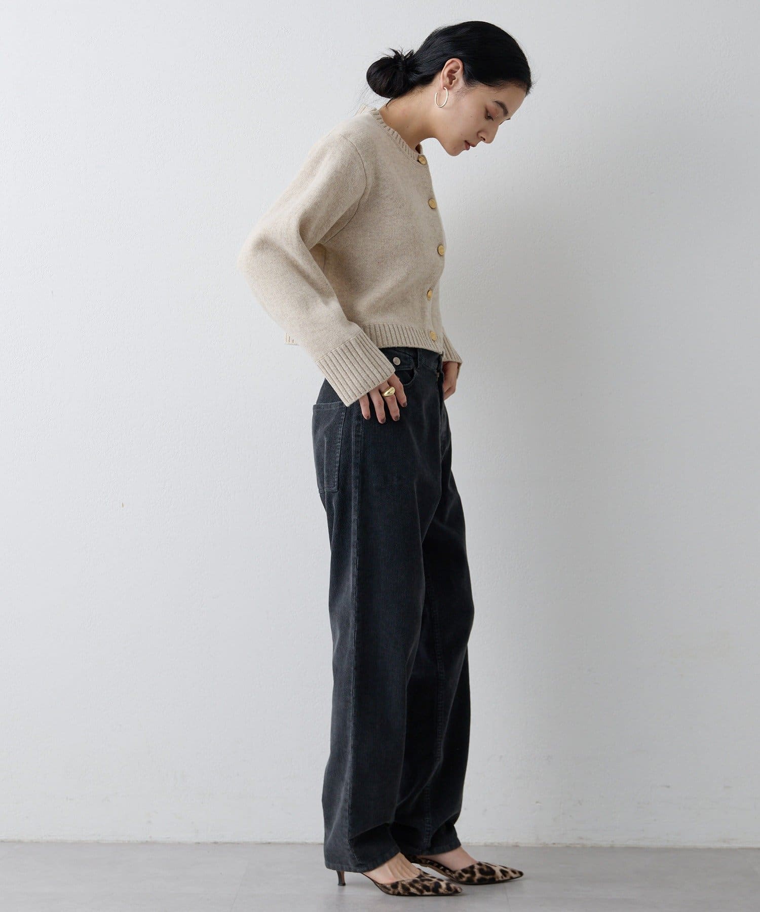 適度なゆるっと感、でもすっきりとしたシルエットが綺麗なパンツ。コーデュロイでもカジュアルになりすぎないデザインです。