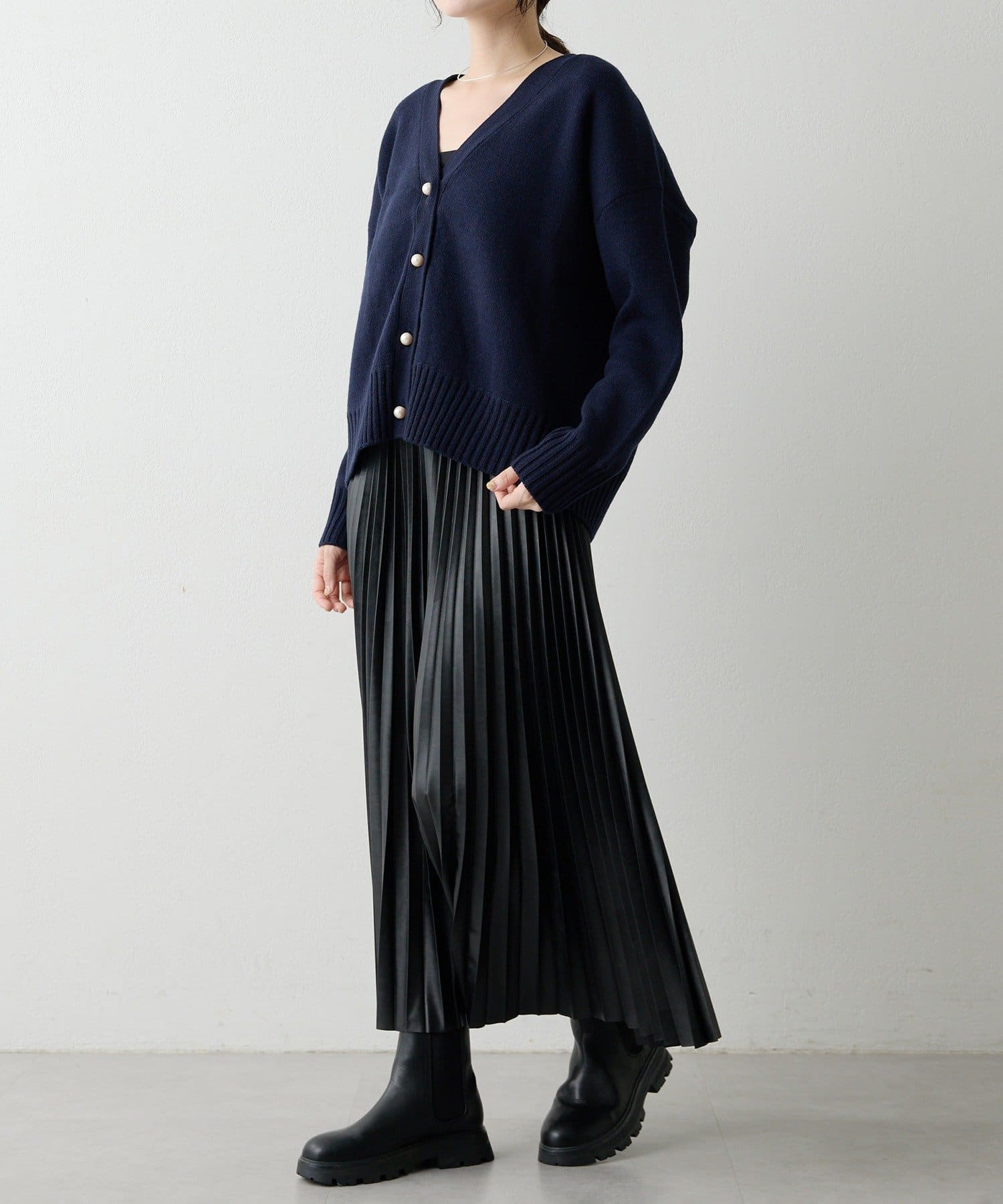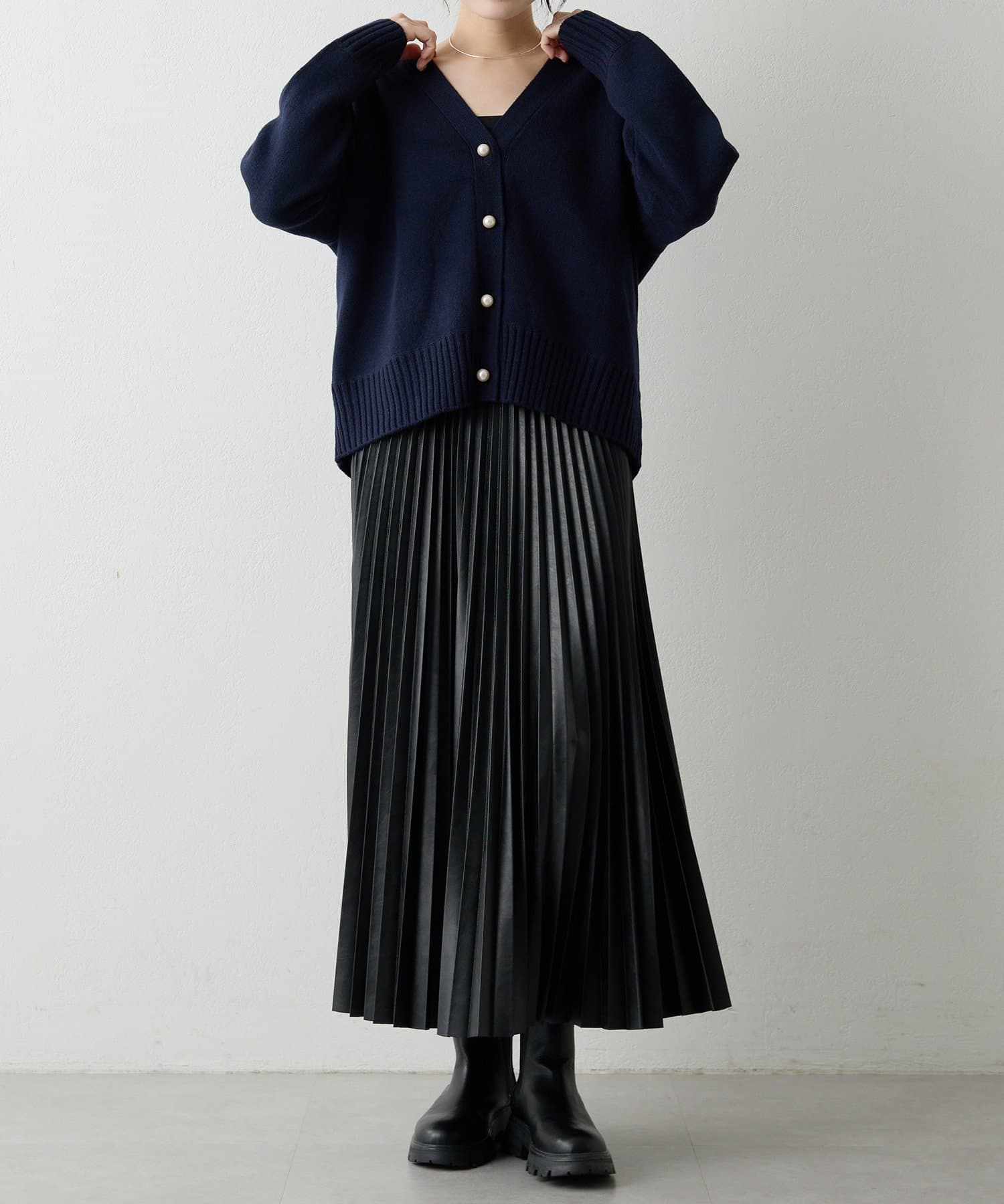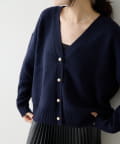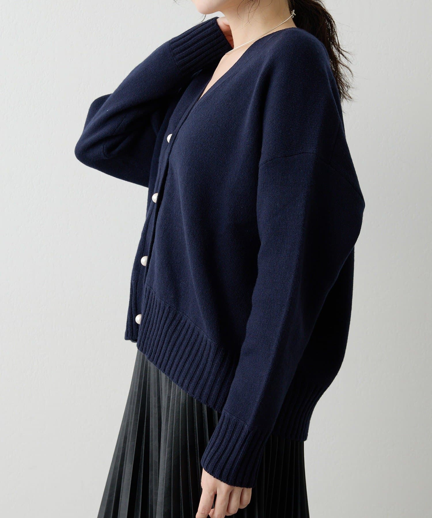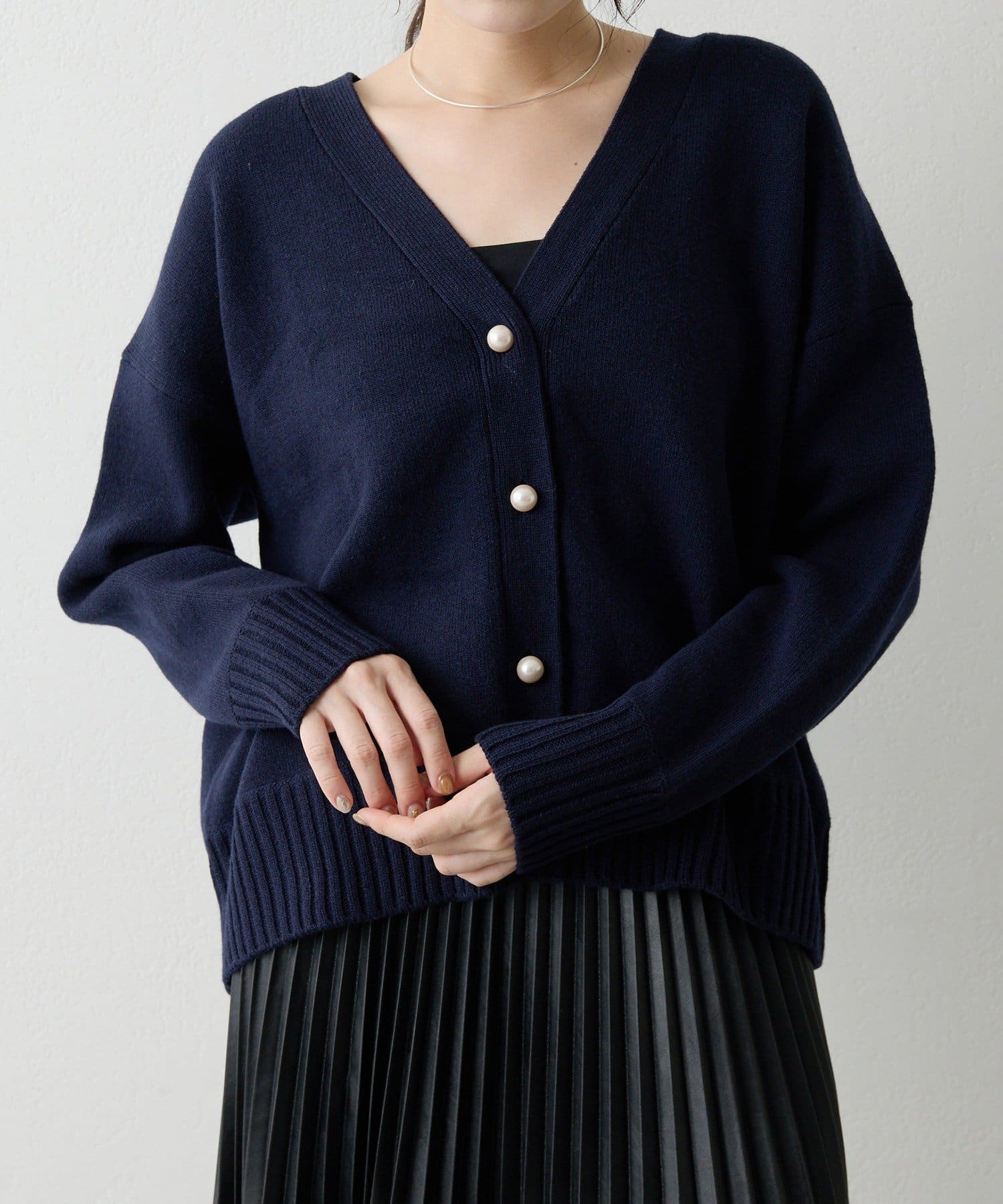 パールボタン接結ルーズVネックカーディガン