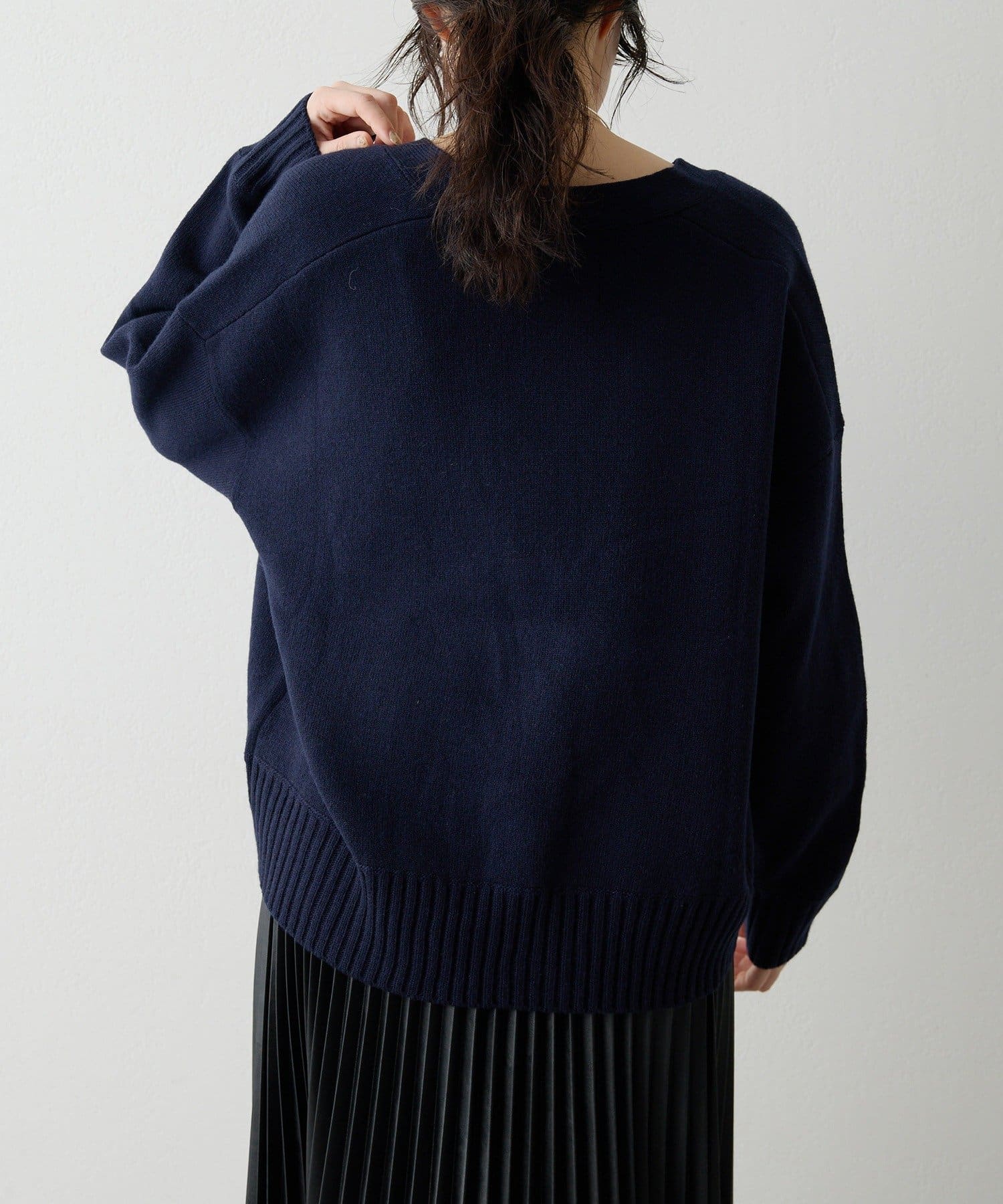 ■編地は接結編みにすることで立体感が生まれ、カジュアルながらも大人の定番ニットに。