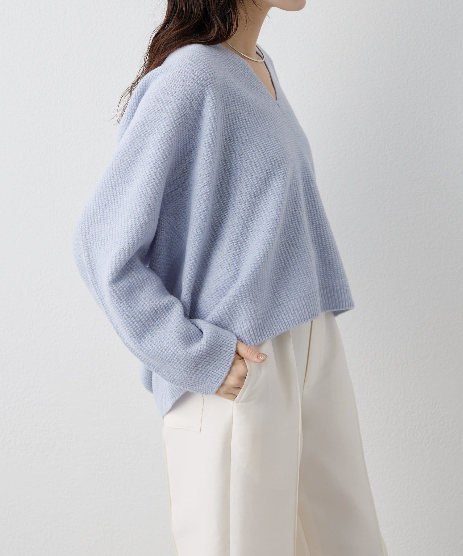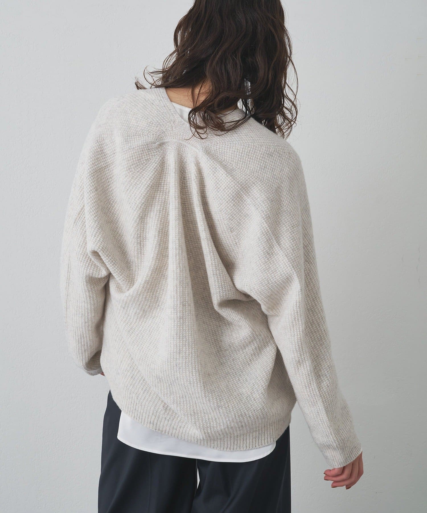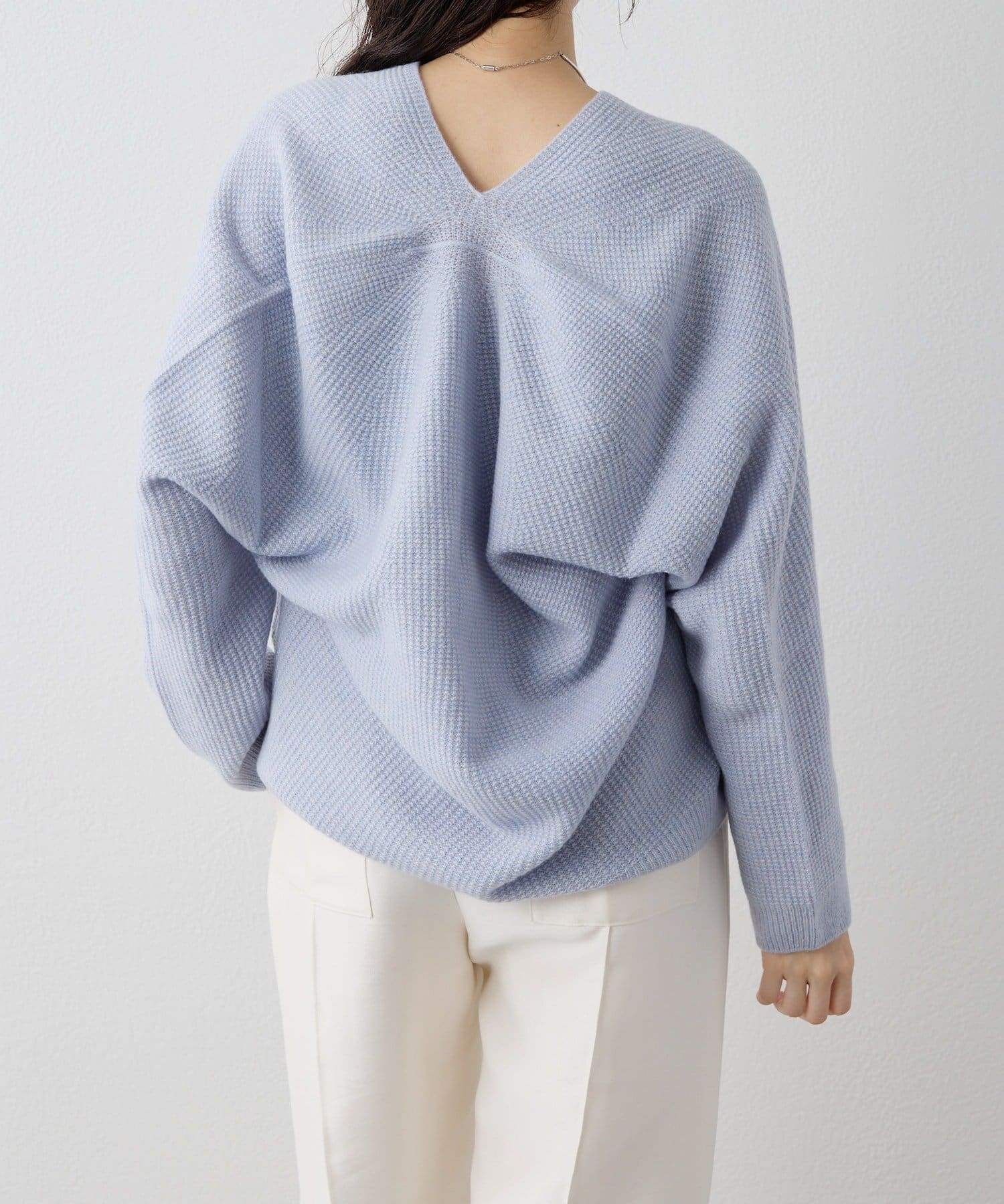 ■ホールガーメントで仕立てたVネックニットプルオーバー。