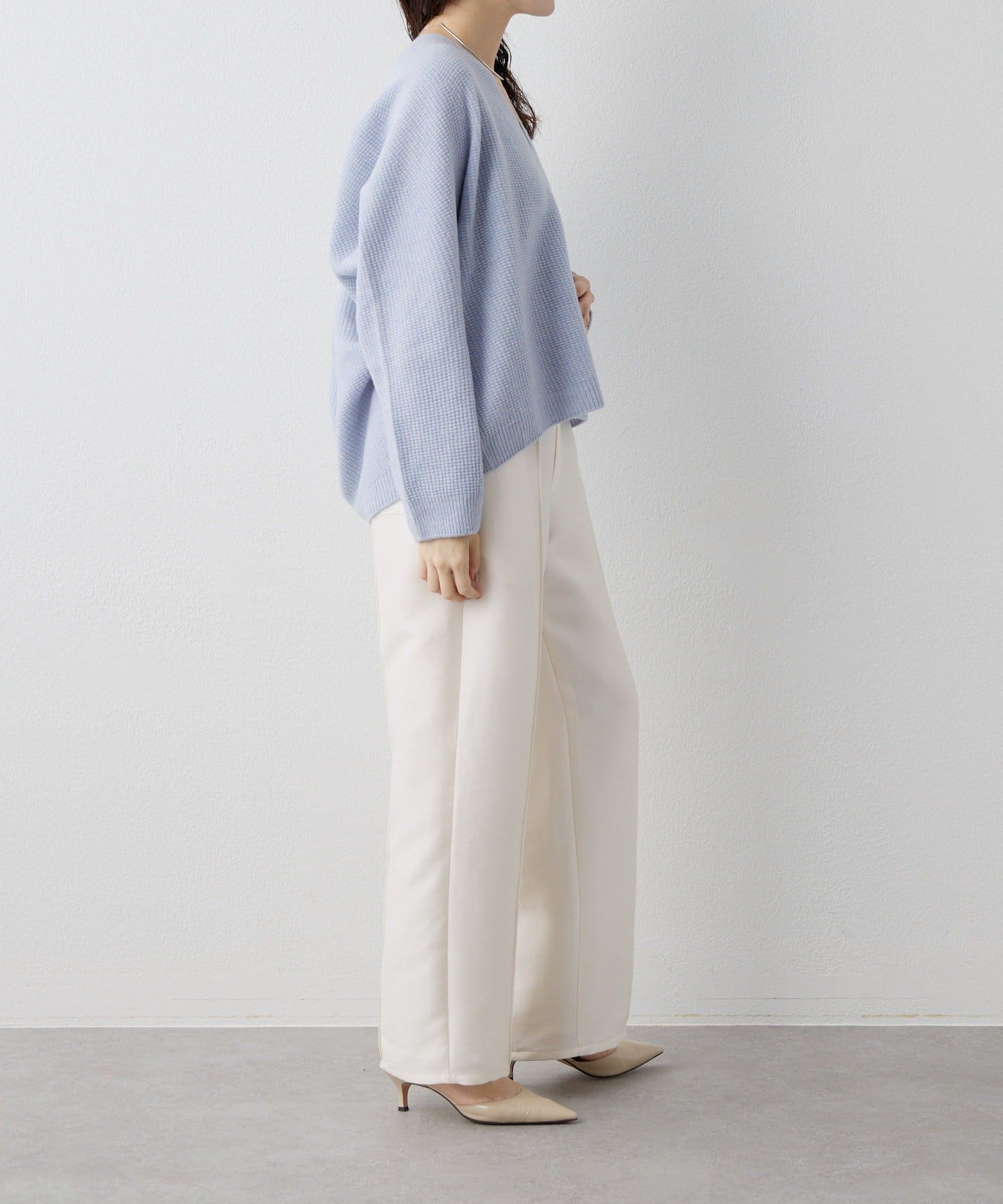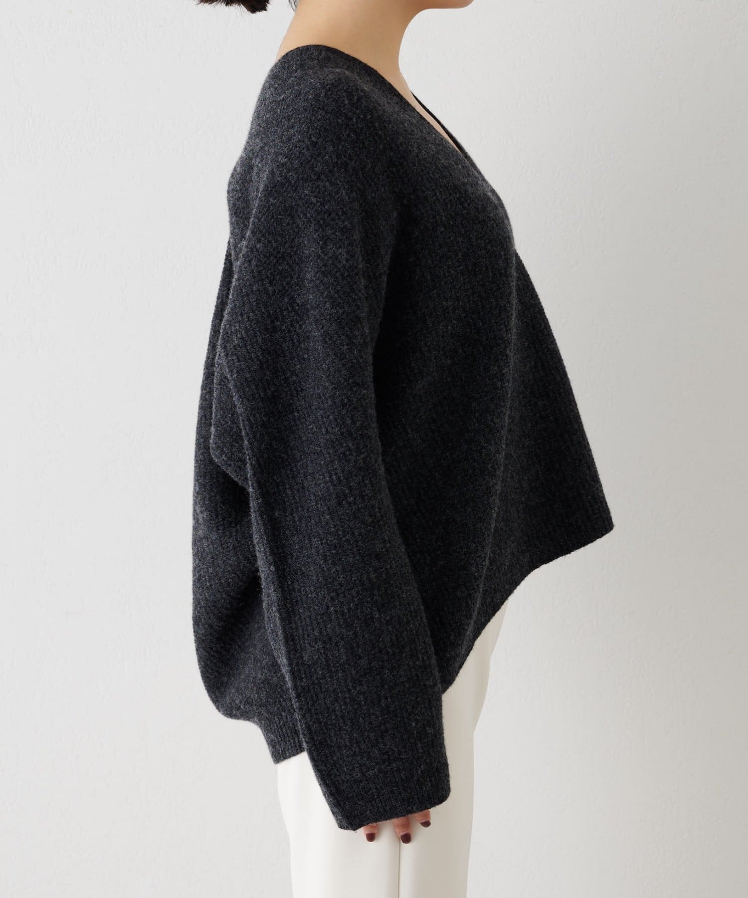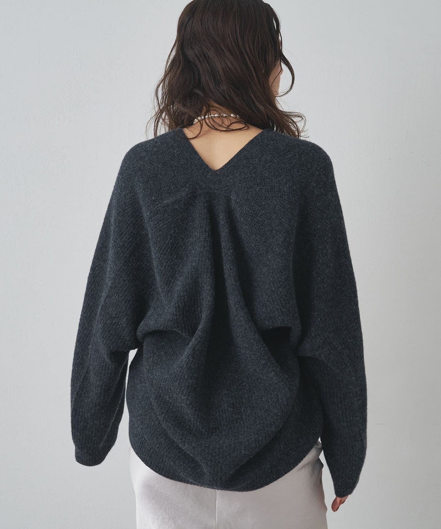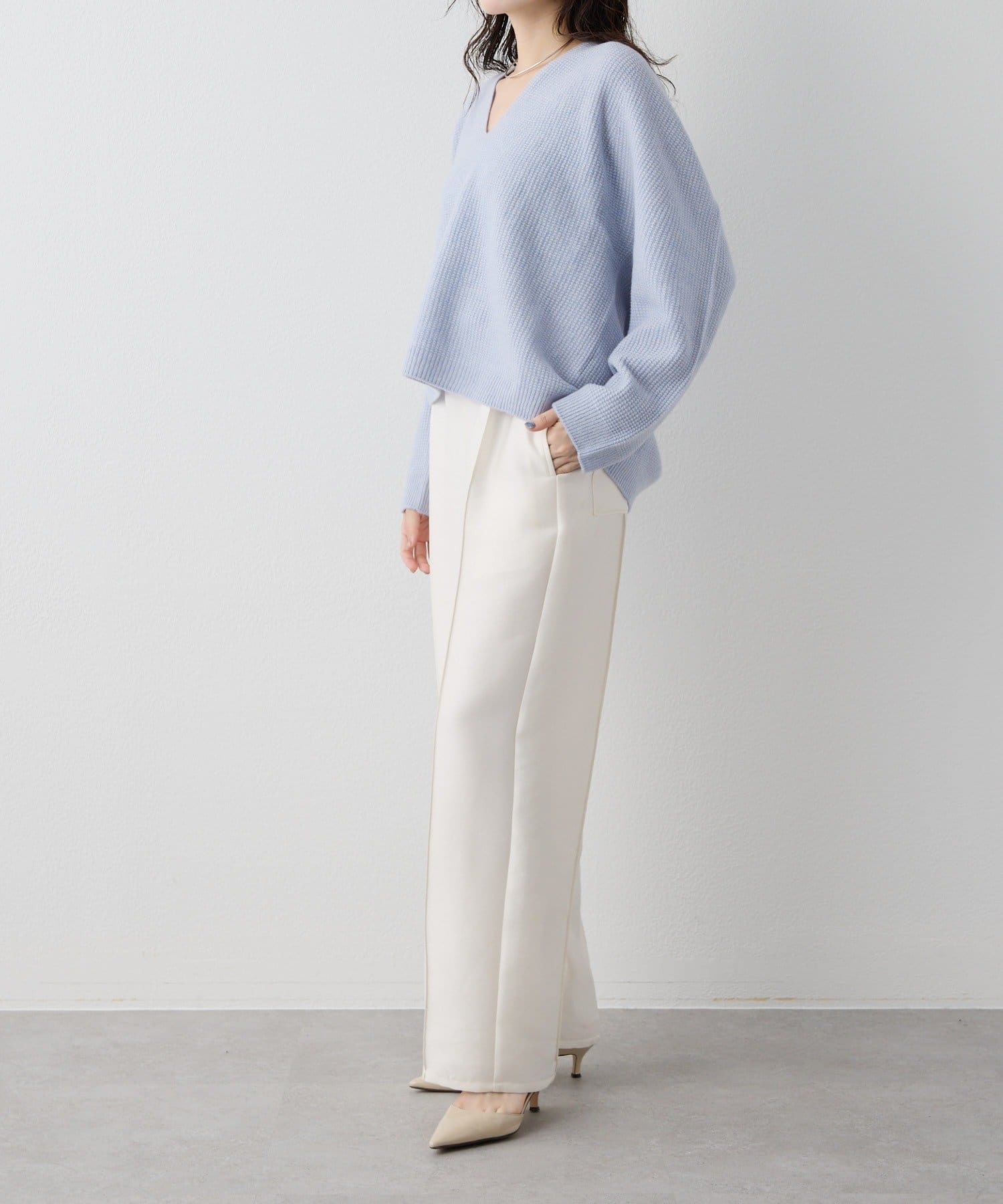 ■ホールガーメントで仕立てたVネックニットプルオーバー。