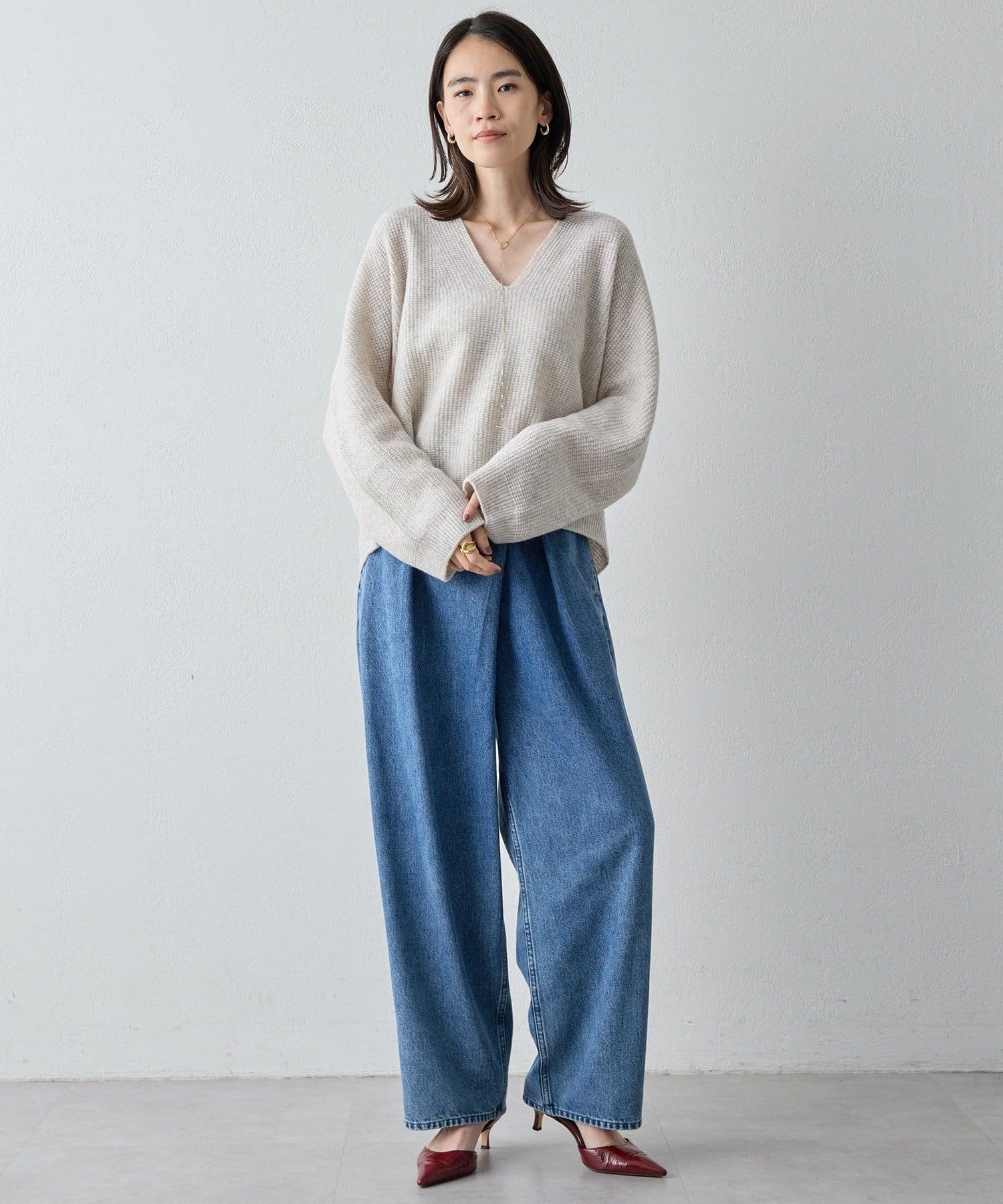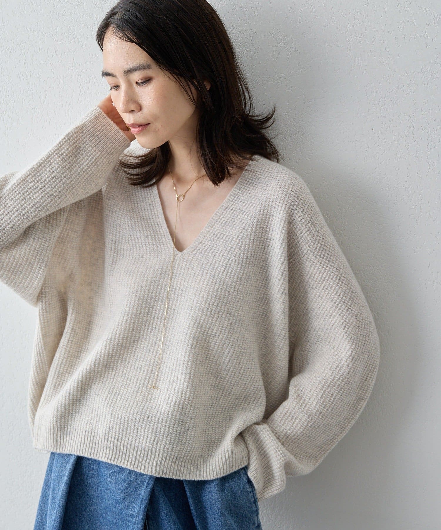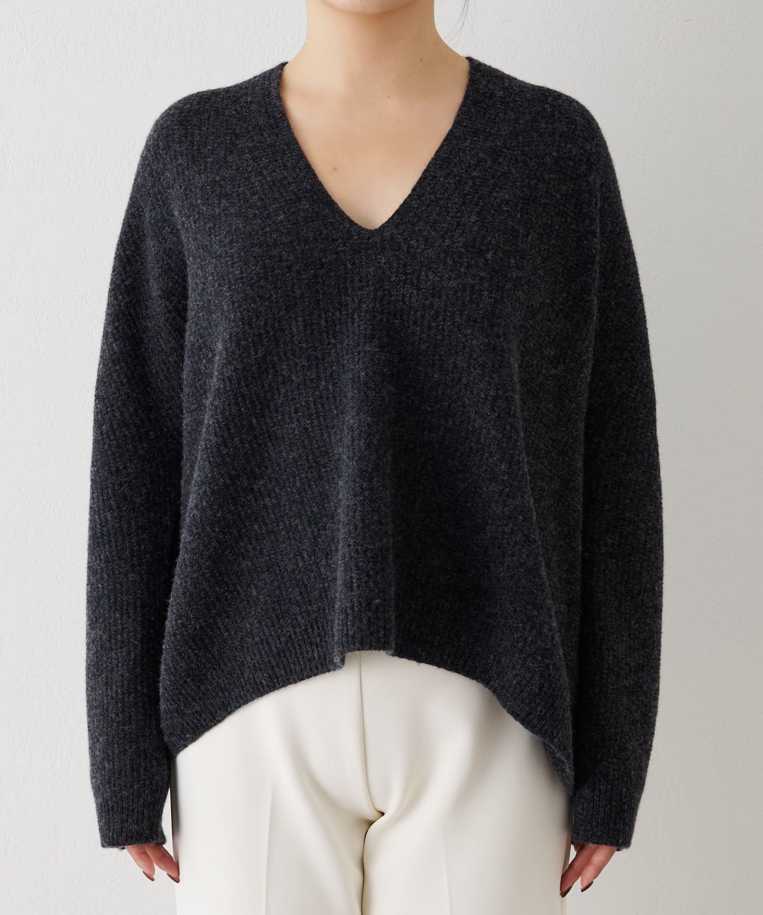 女性らしいシルエットが魅力のVネックニット