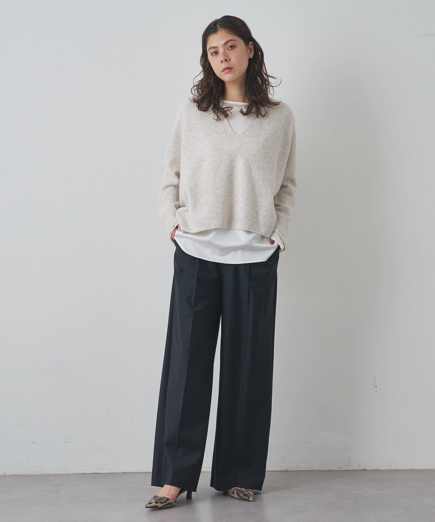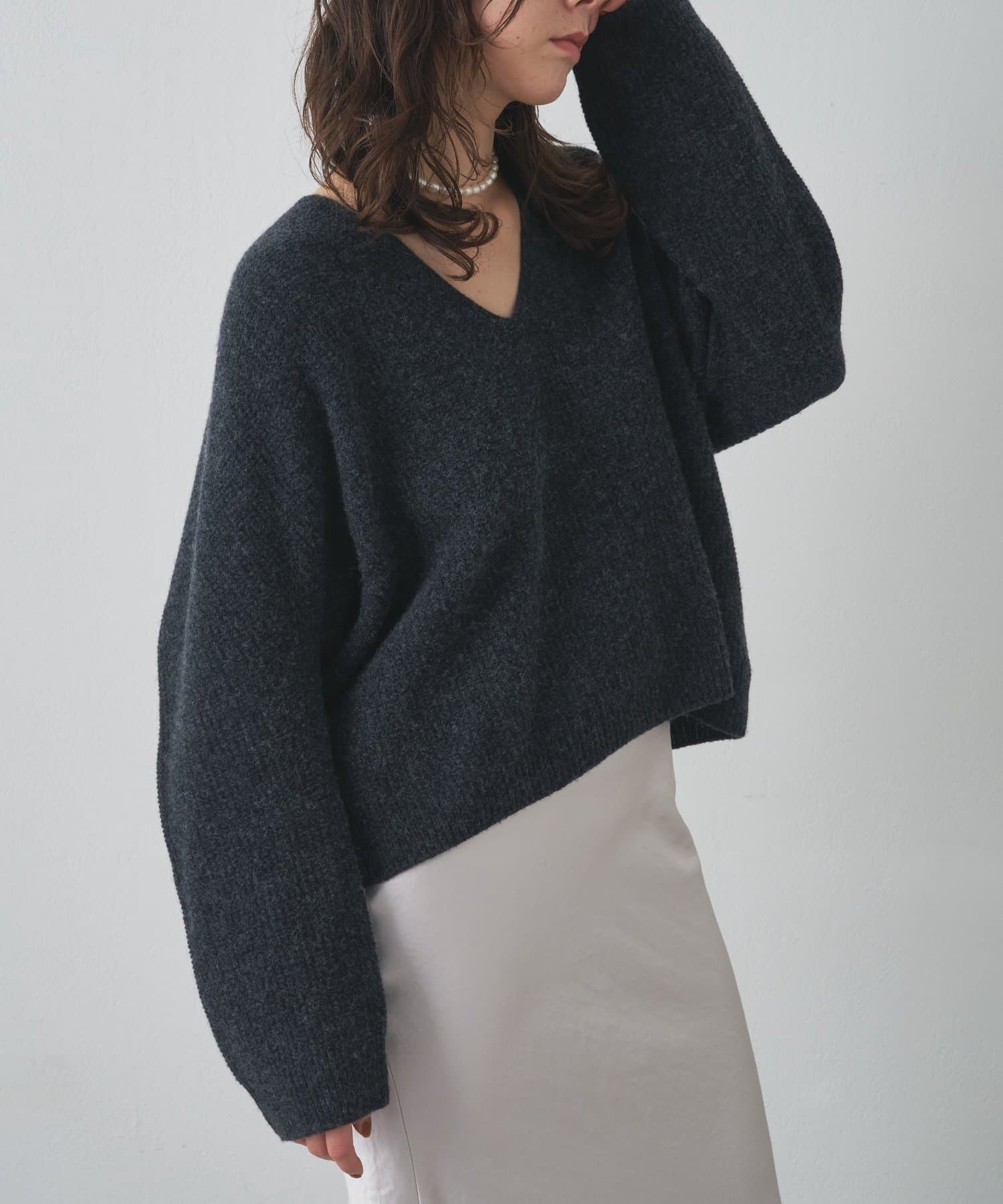 ■シンプルなデザインで合わせるアイテムを選ばず、品良く着こなせる大人の抜け感ニット。