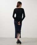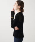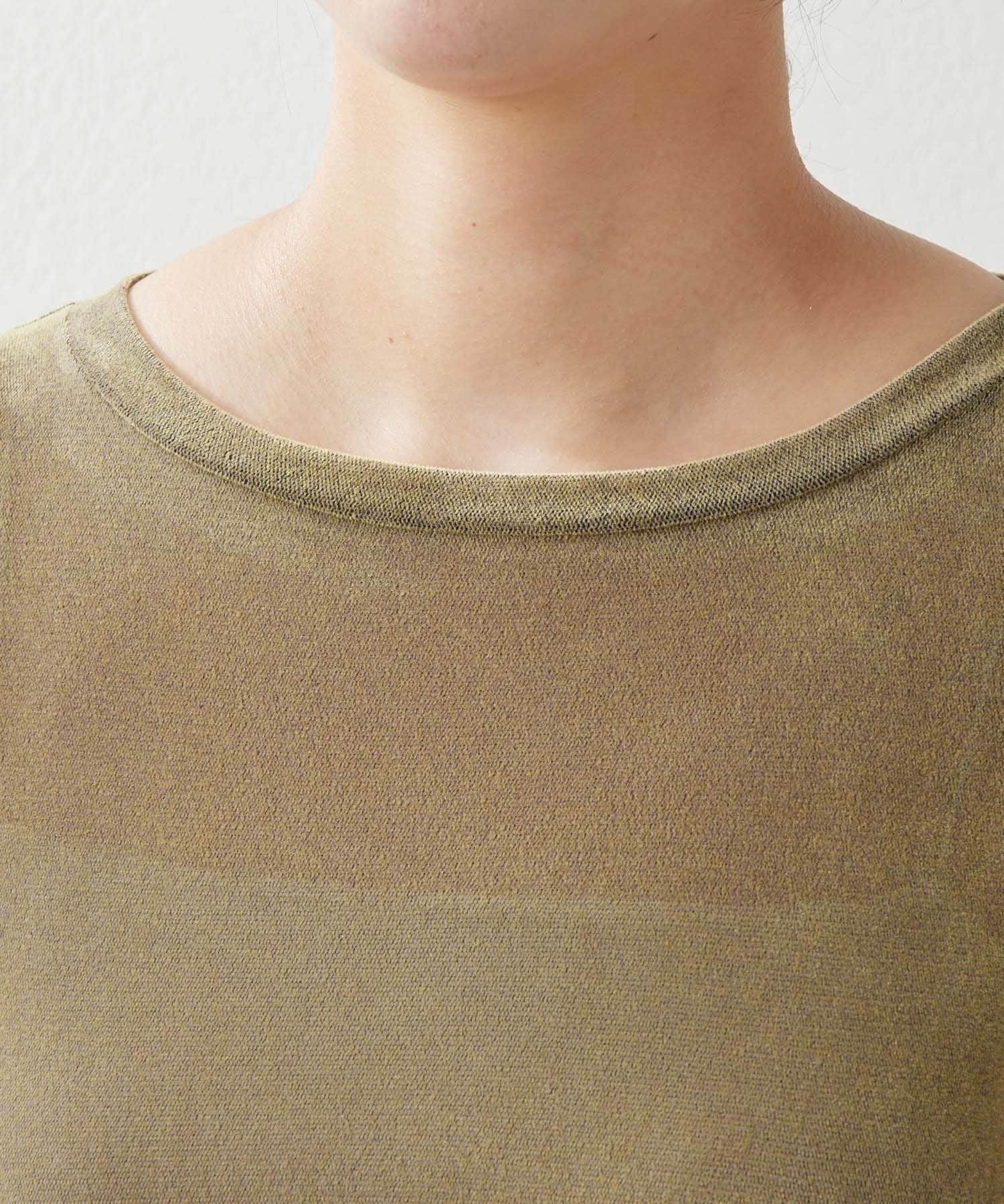 ■すっきりと横に開いたラウンドネックで端境期から着用可能。