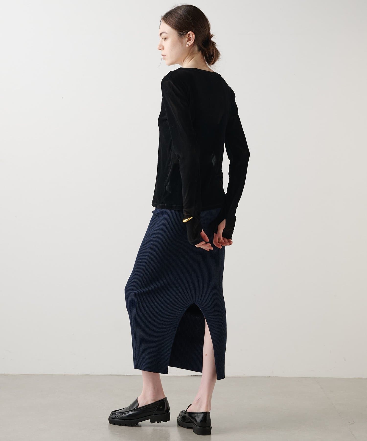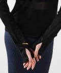 ■長めにとった袖丈と親指をのぞかせるサムホールが抜け感をプラス。