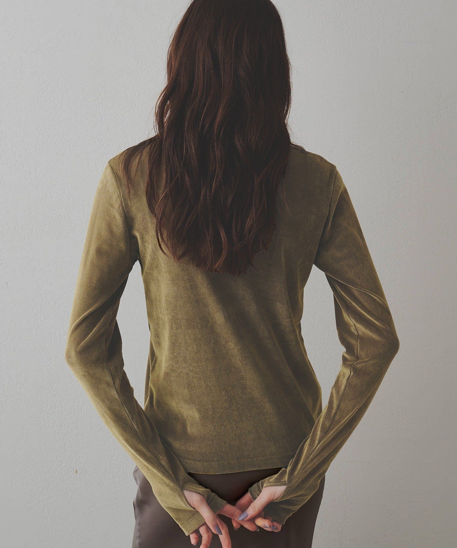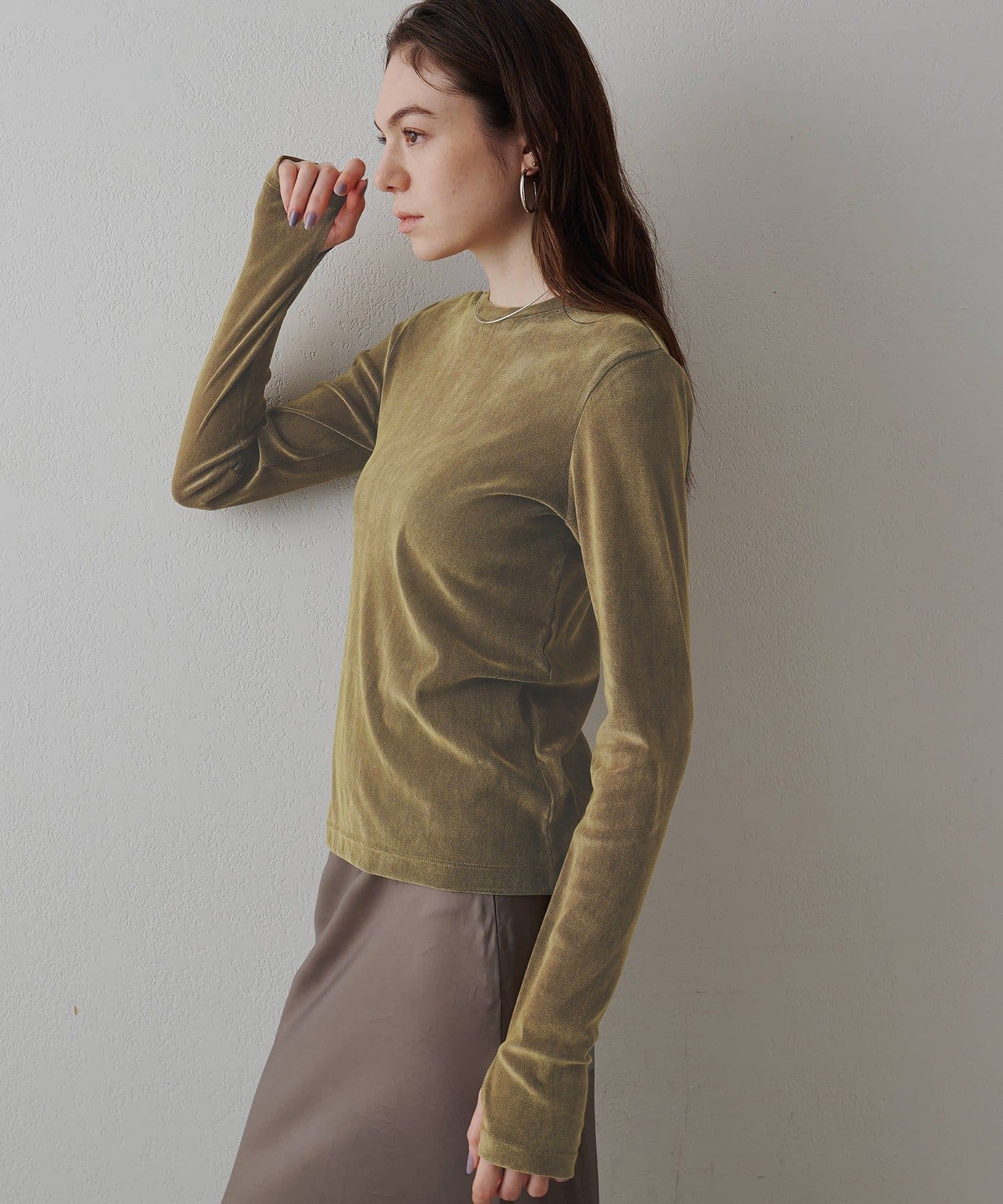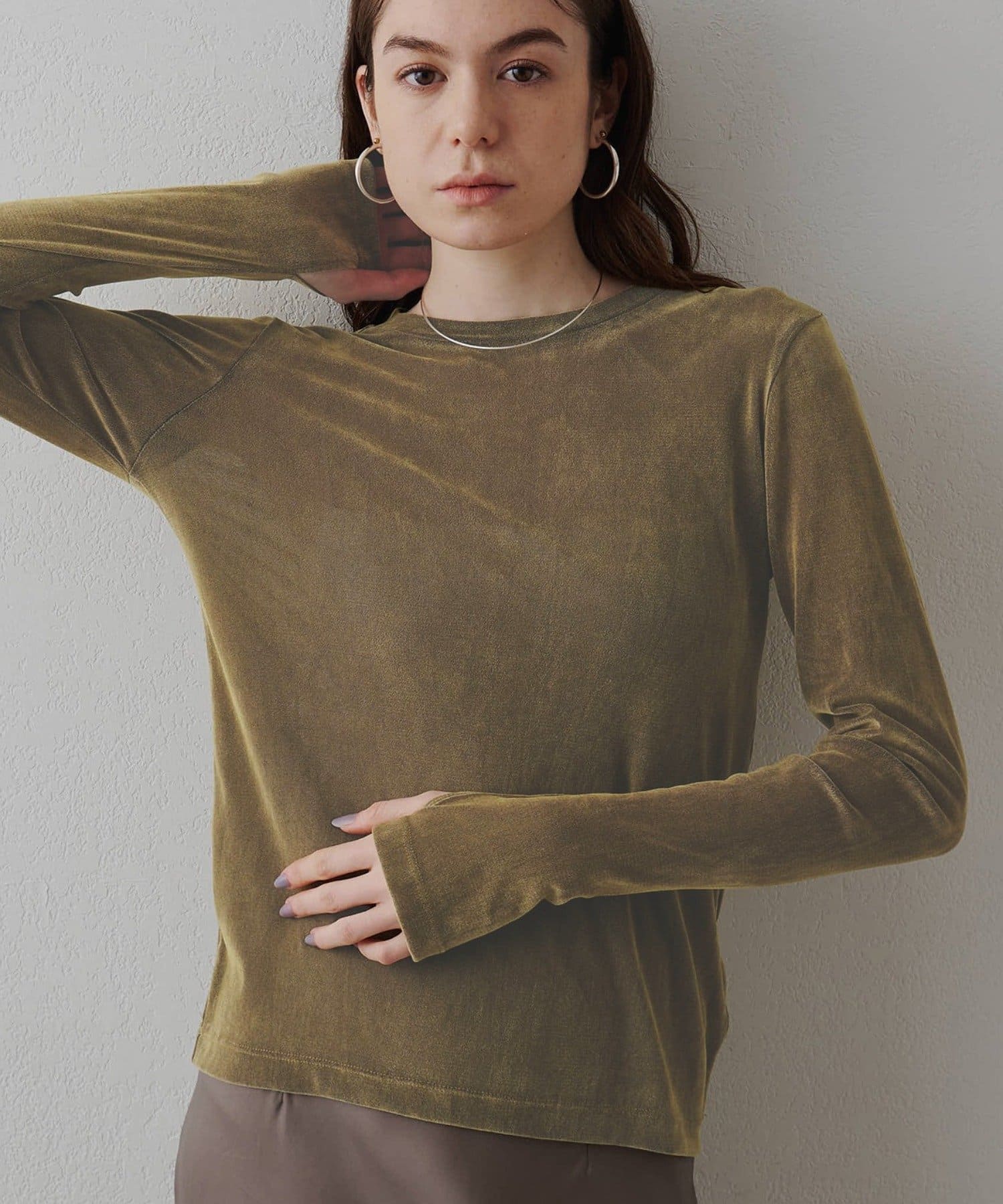 ■トレンドのフロッキー素材を使用したロングスリーブカットソー。