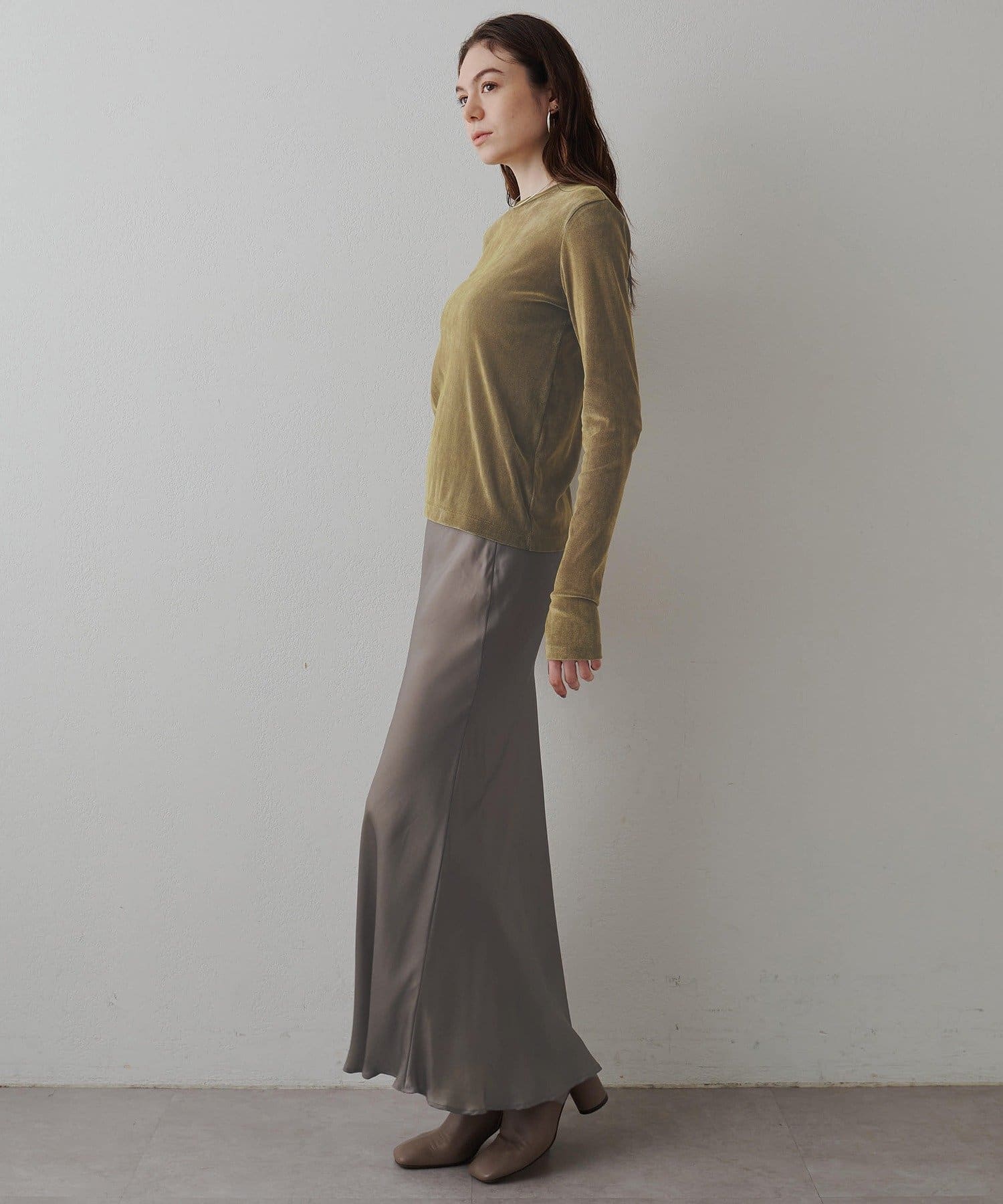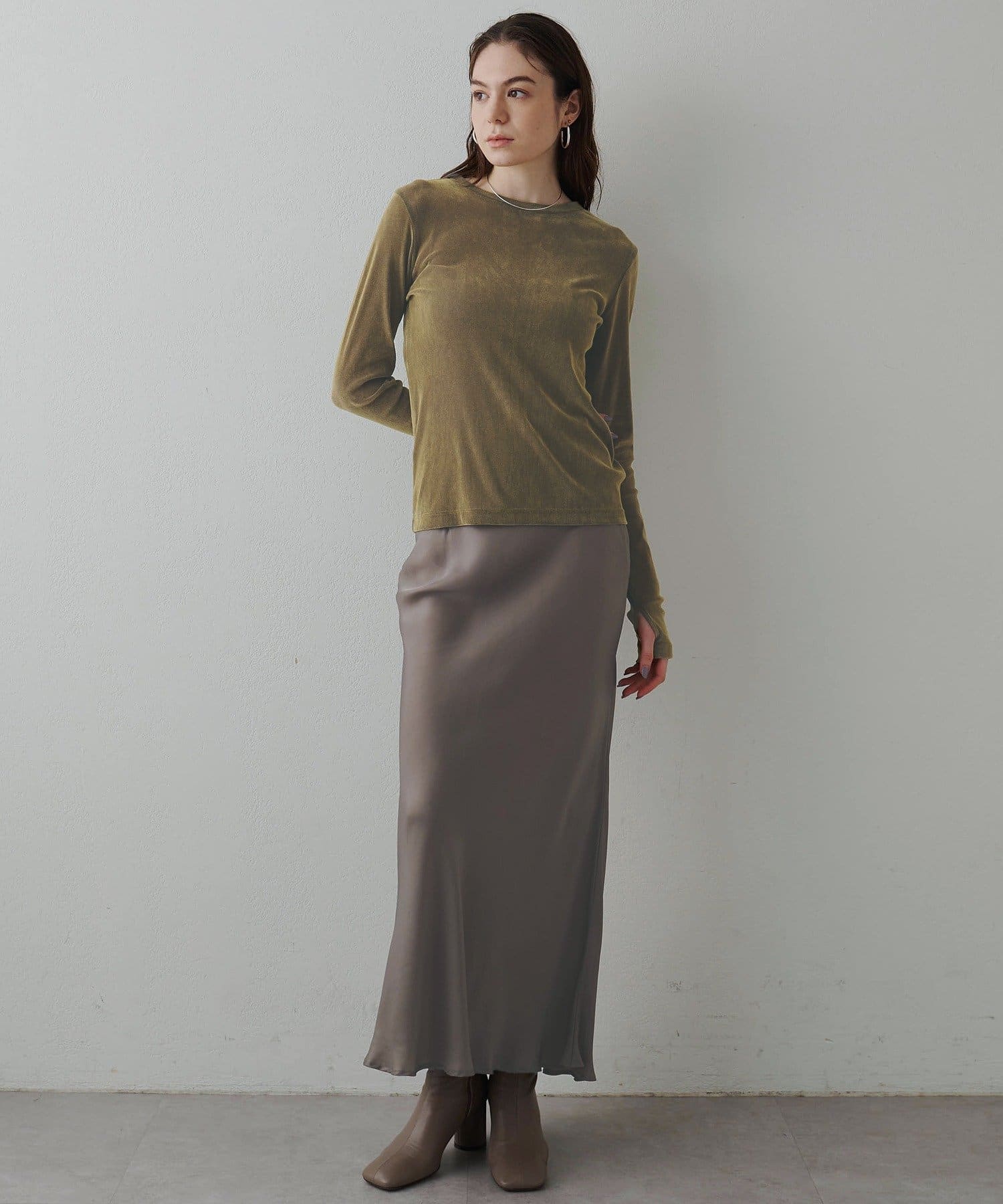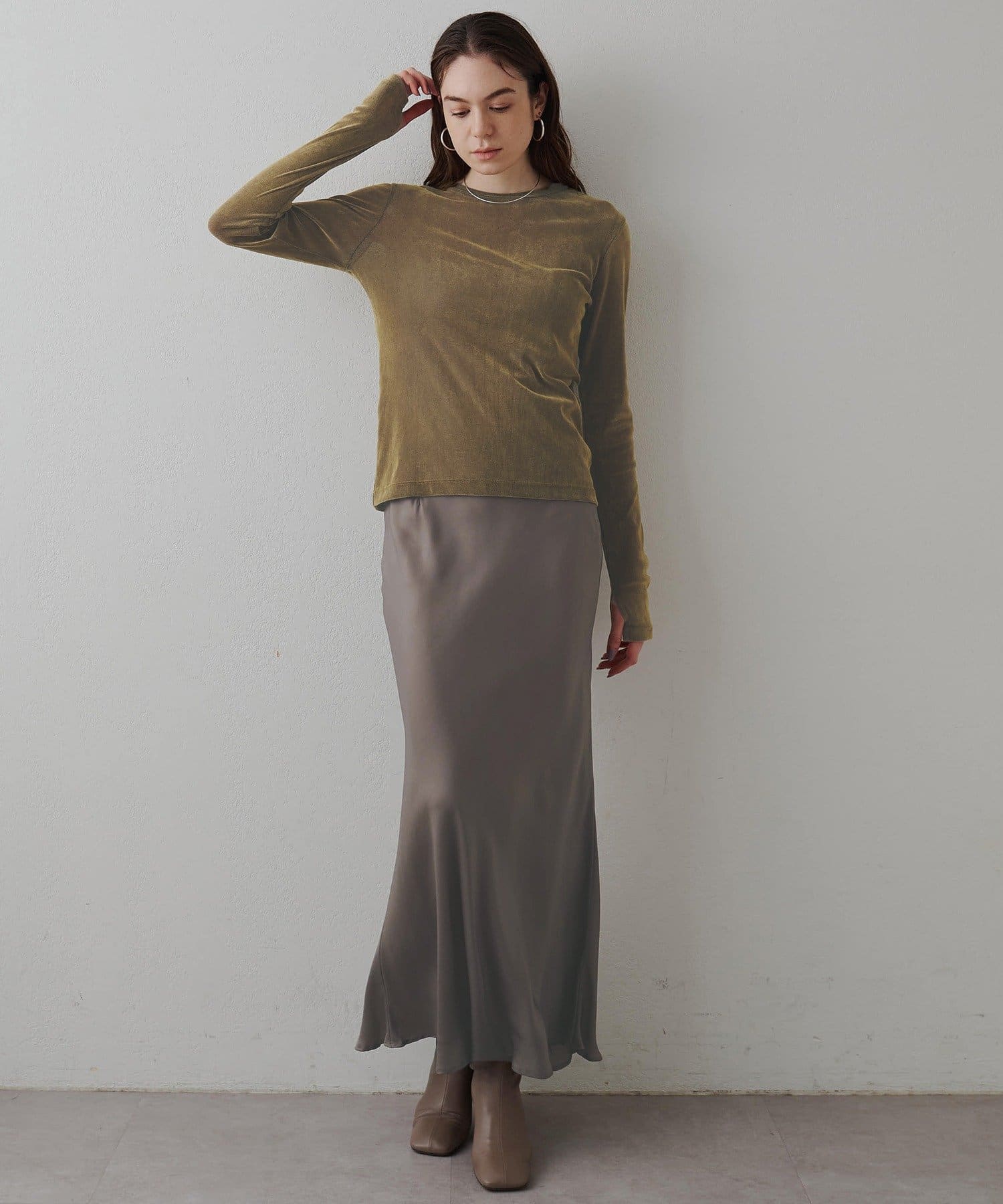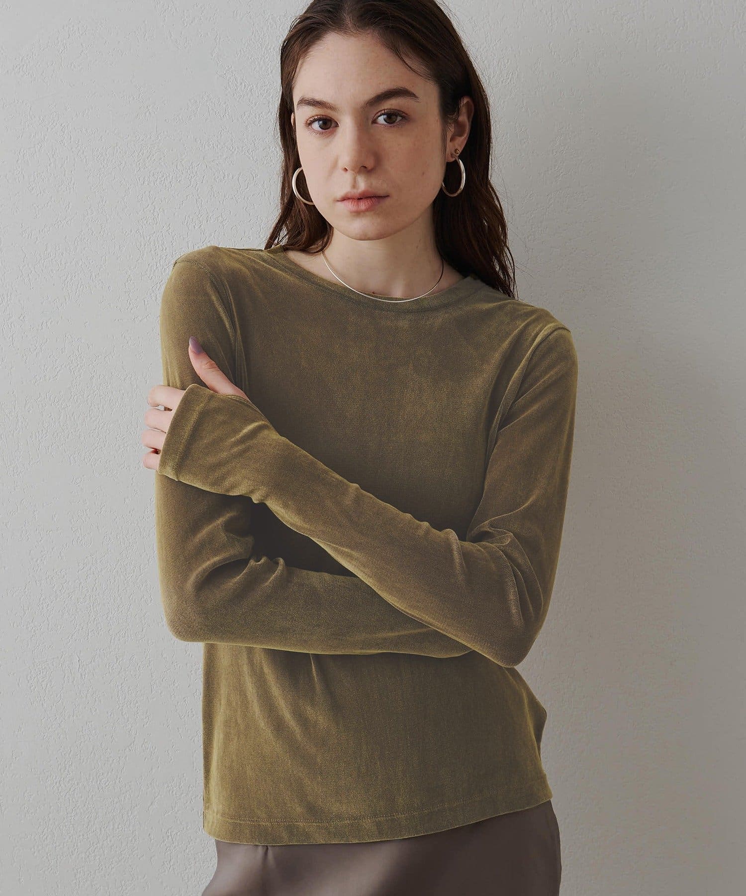 ■トレンドのフロッキー素材を使用したロングスリーブカットソー。
