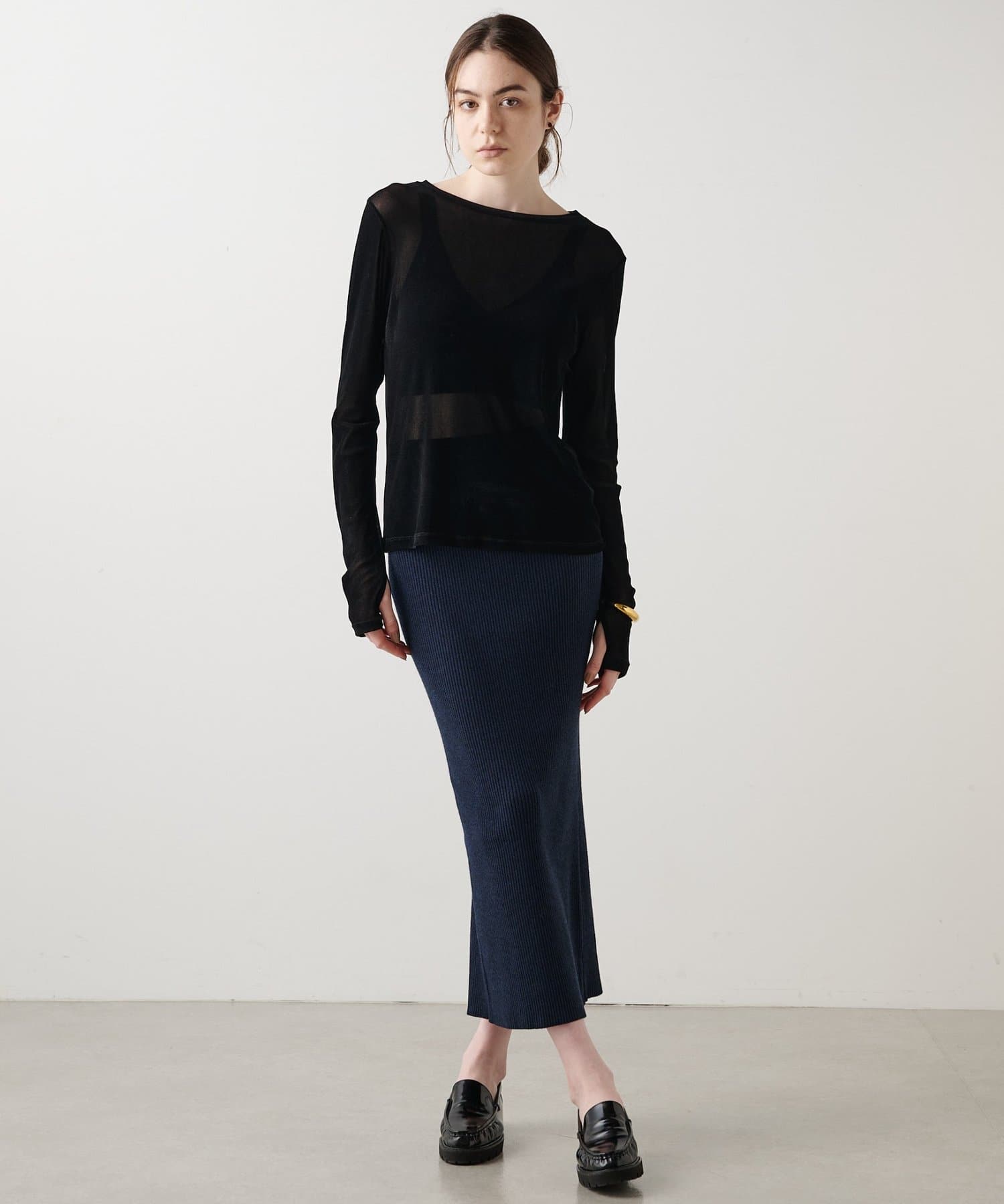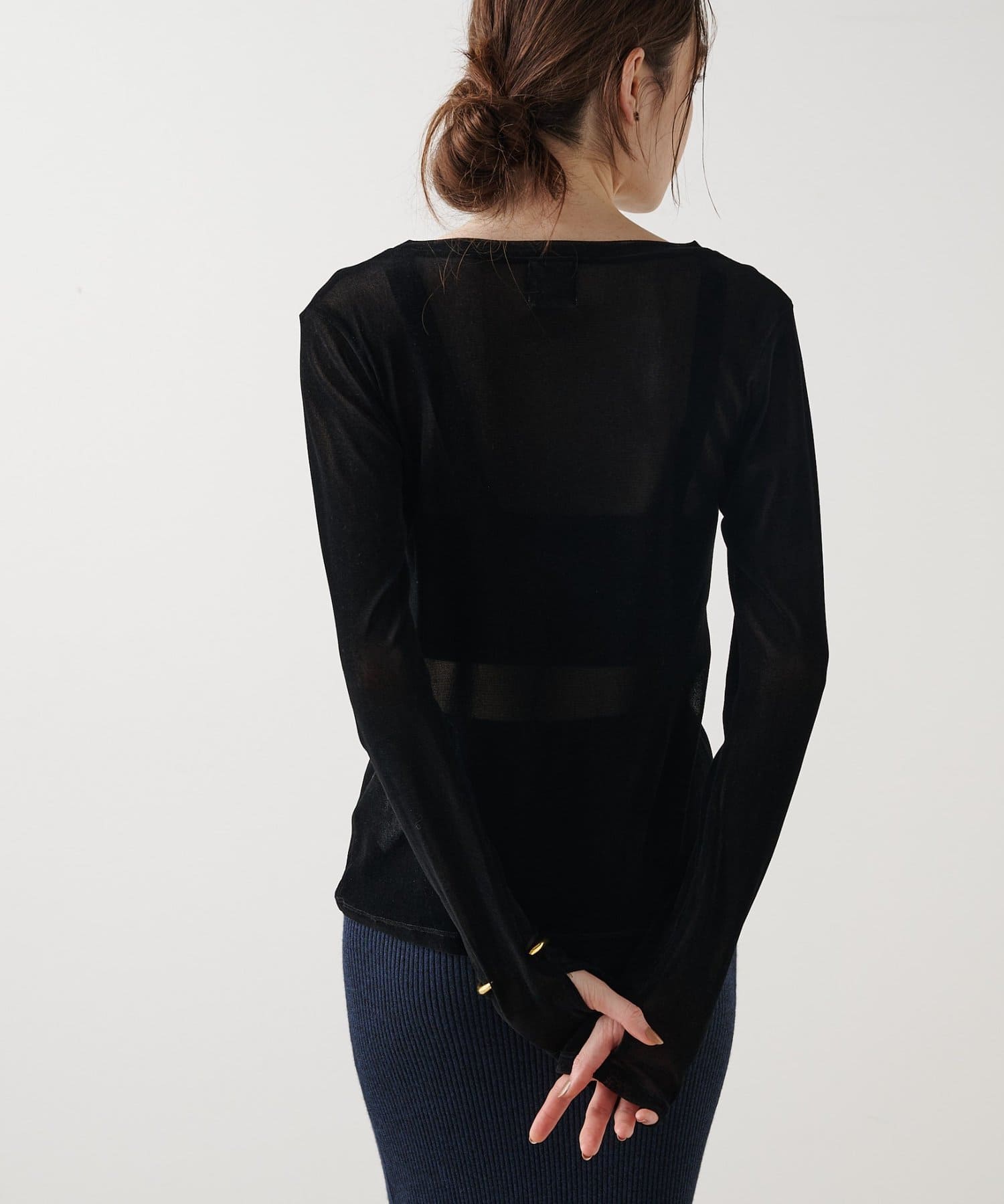 ロングスリーブで親指が出るサムホールが◎シアー感もちょうどよく肌触りが心地よいです!全色ほしくなるアイテムです♪