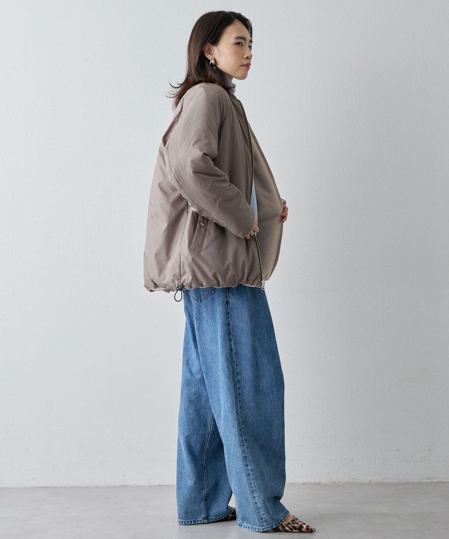 ■ヒップ下の着丈でボトムを選びにくく、幅広いスタリングに羽織りやすいのも◎。
