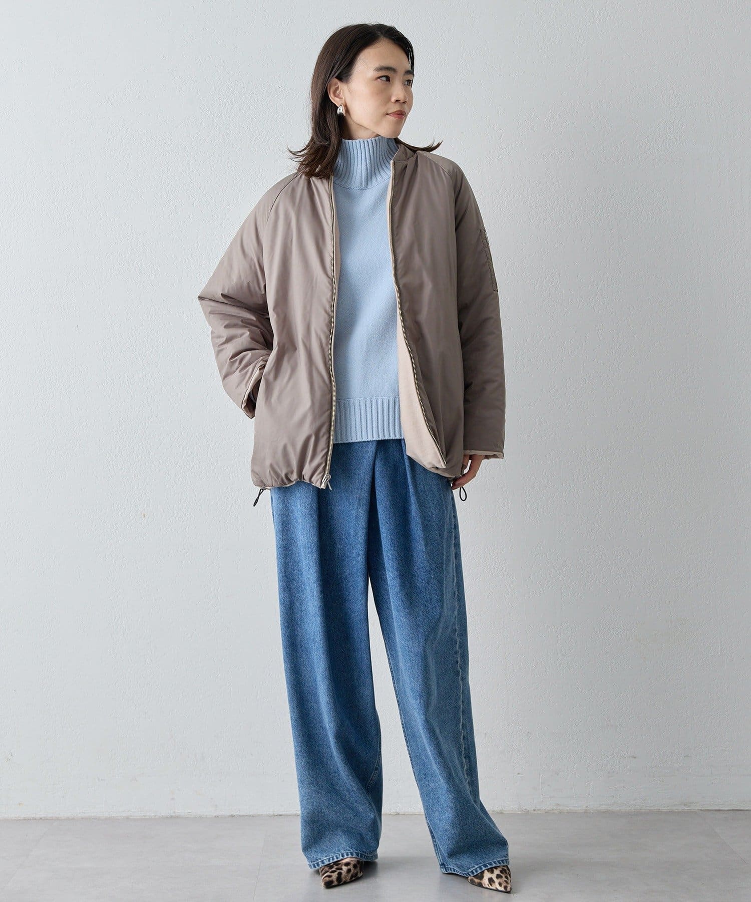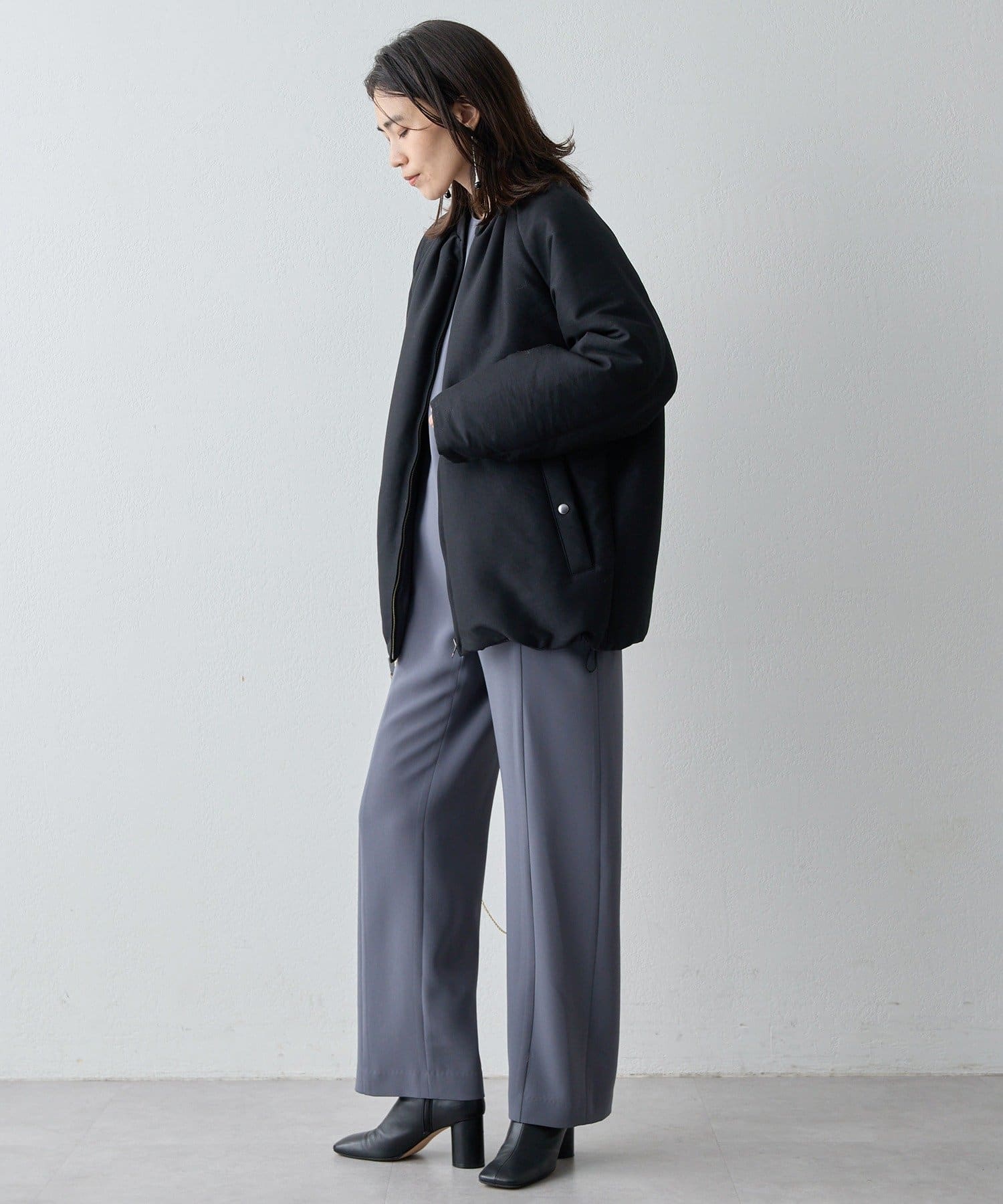 ■ヒップ下の着丈でボトムを選びにくく、幅広いスタリングに羽織りやすいのも◎。