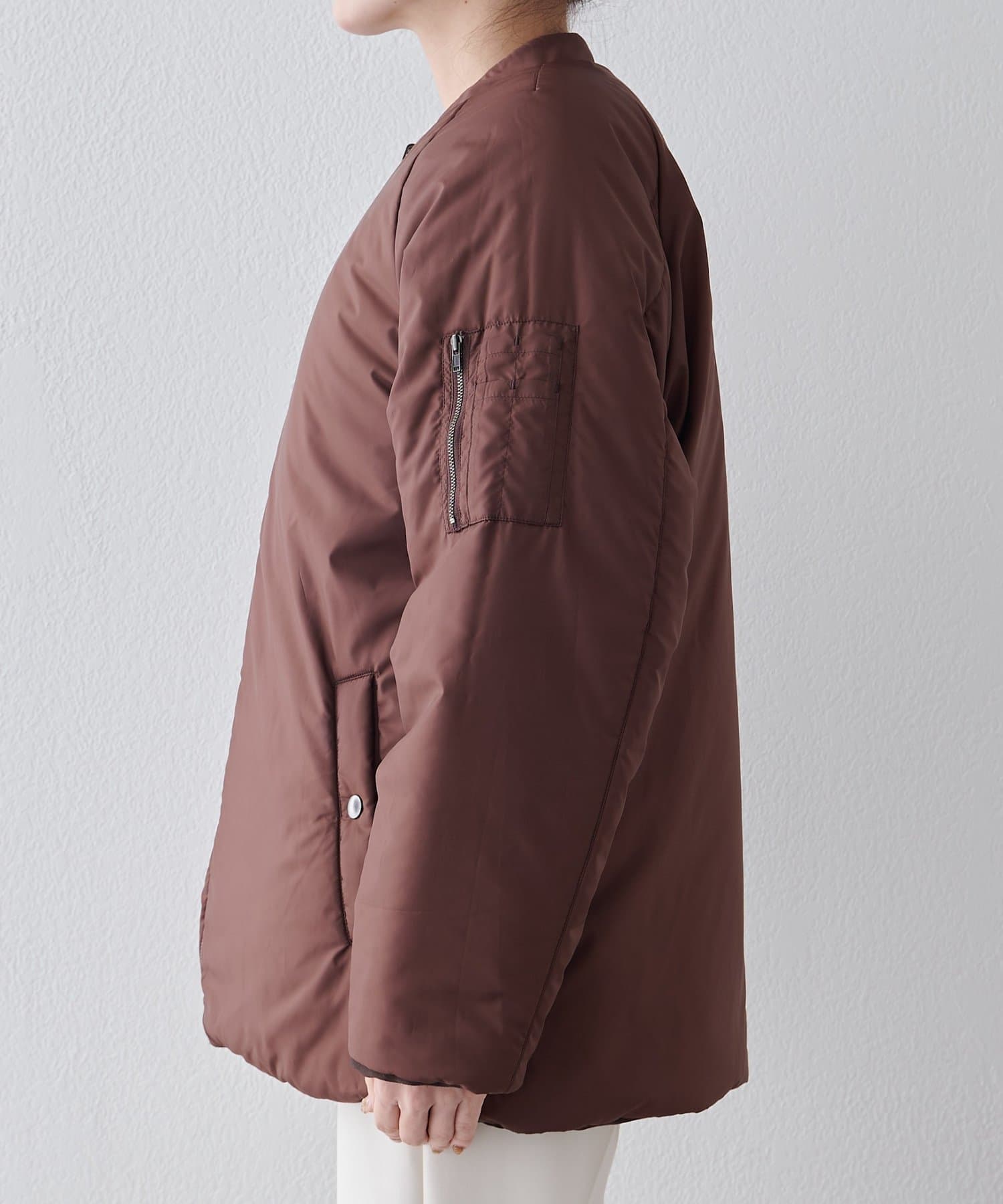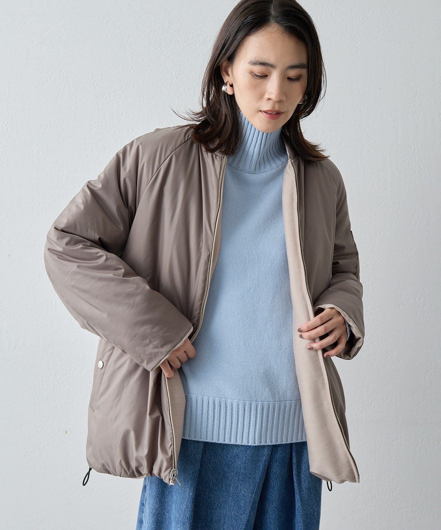 ■2つのデザインを楽しめるリバーシブル仕様のブルゾンコート。