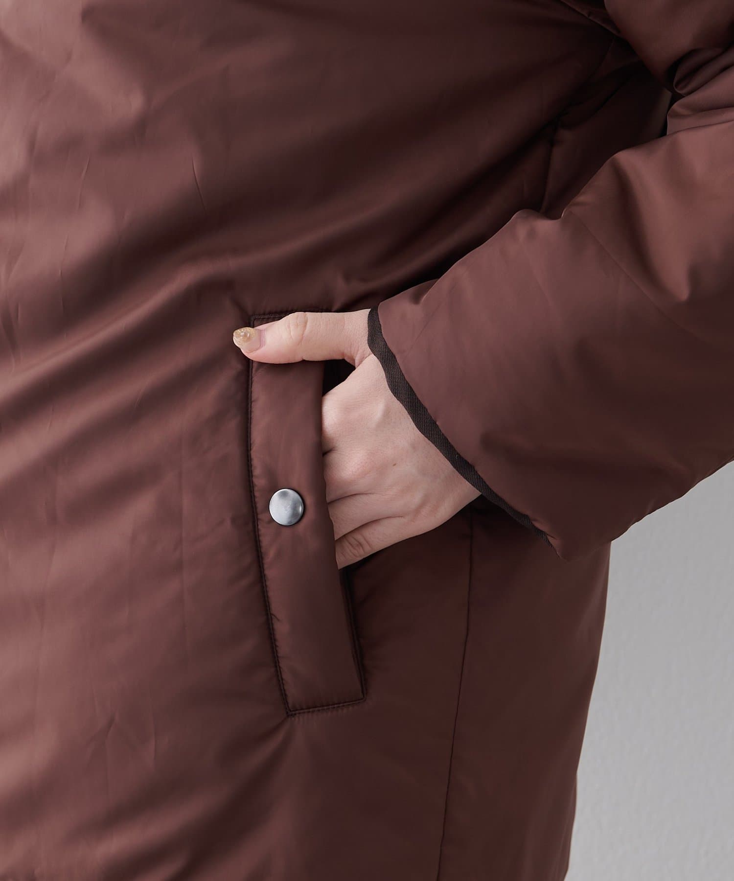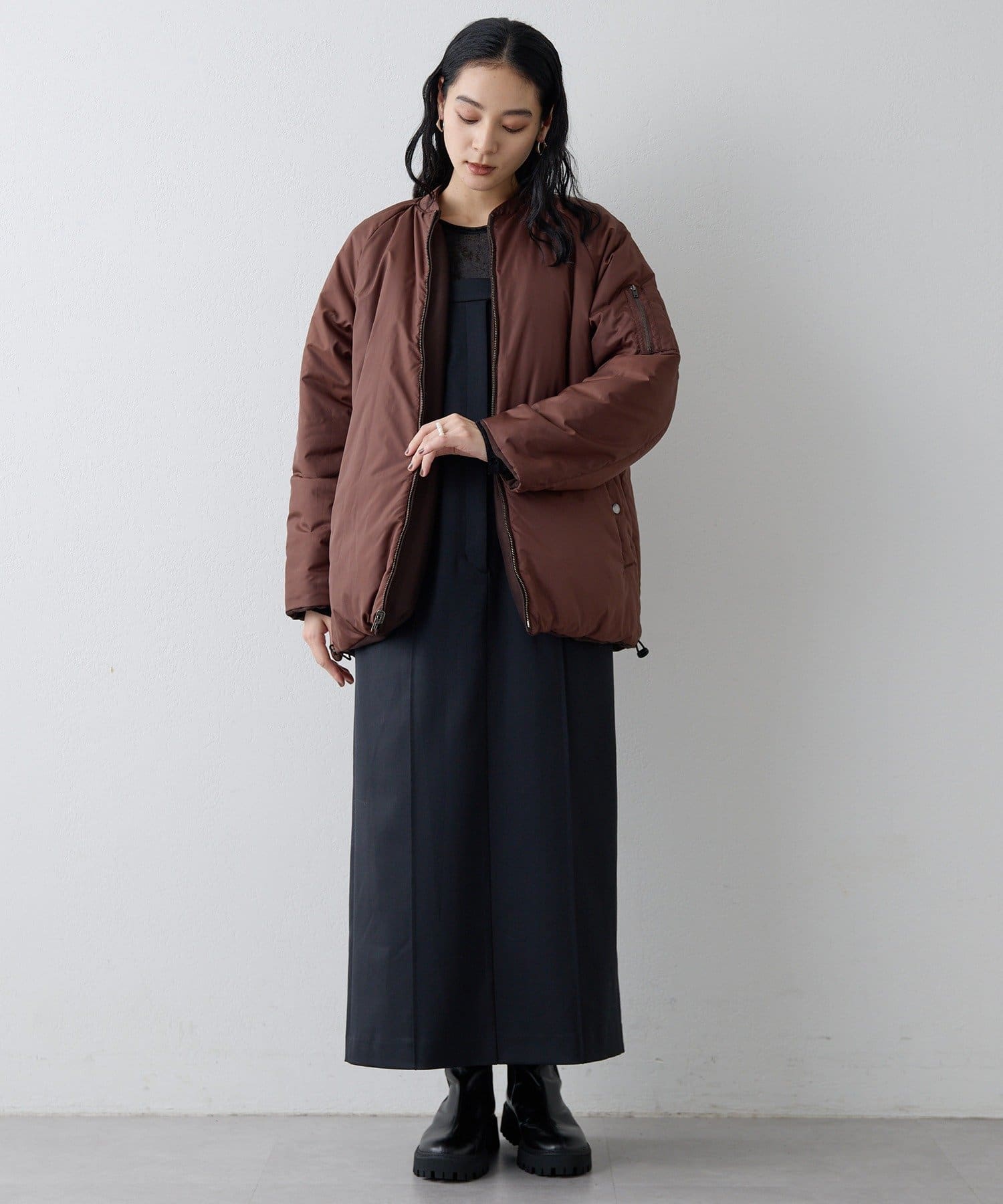 ■中綿入りで暖かく、ボリューム感のあるシルエットもポイントに。