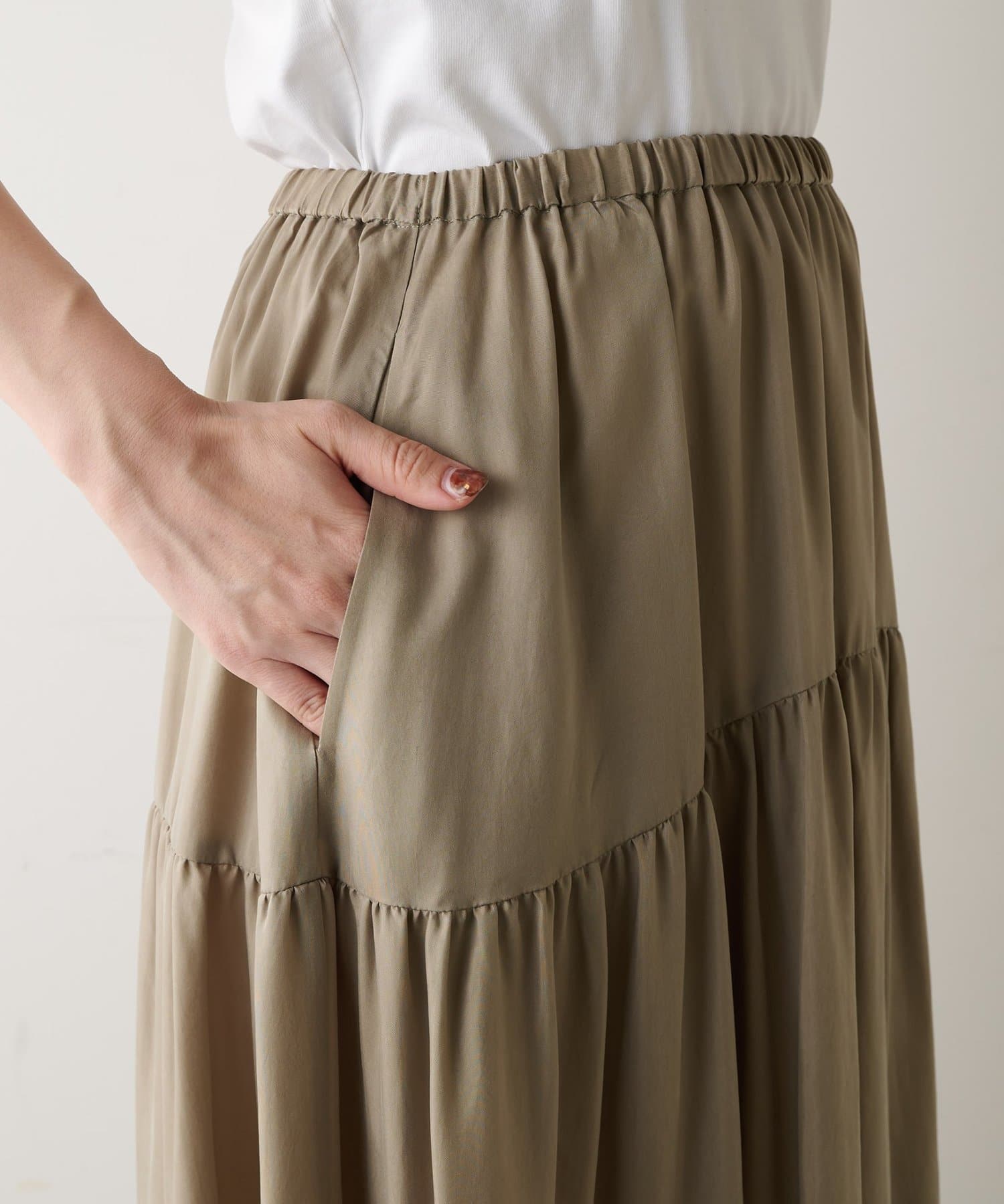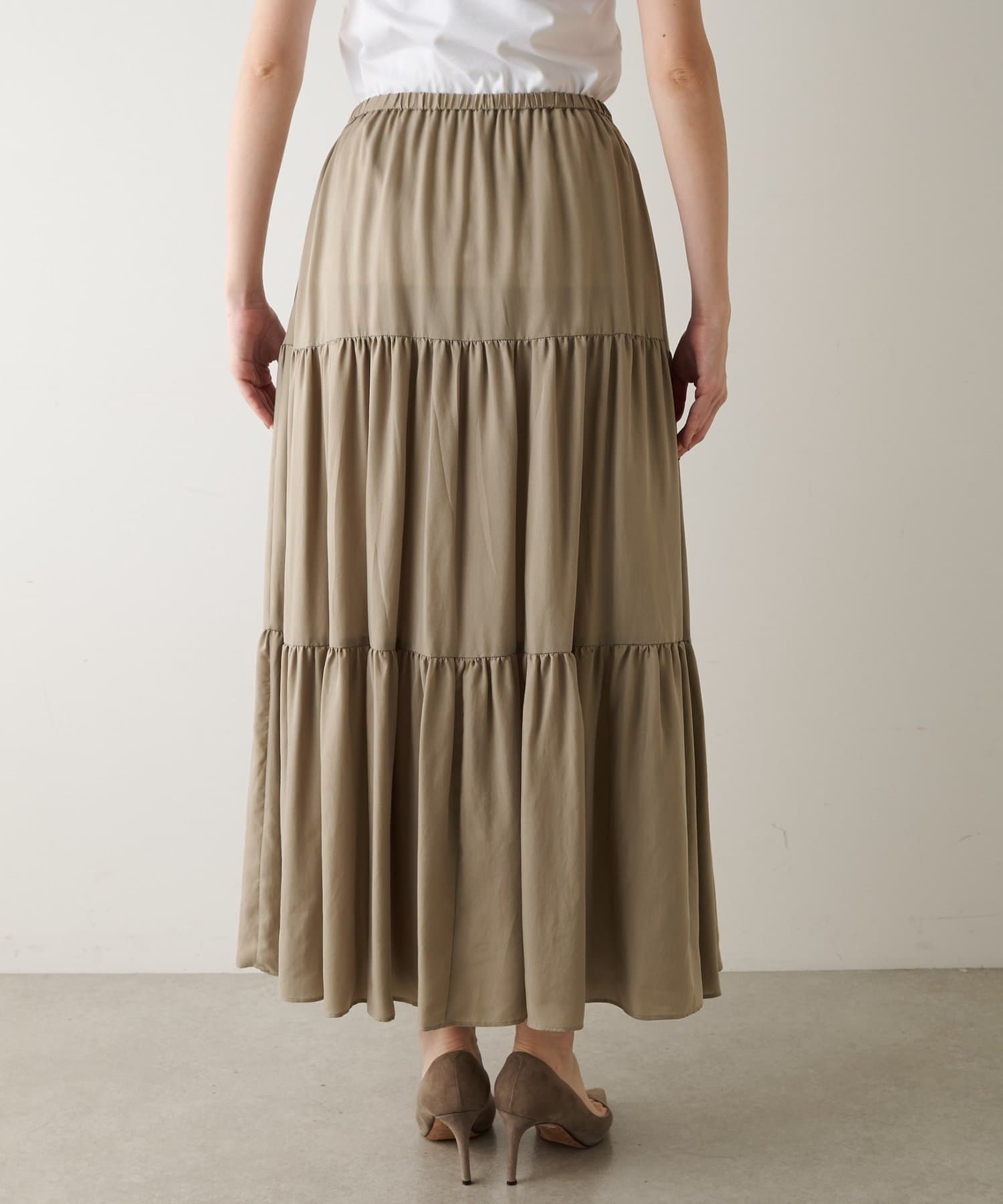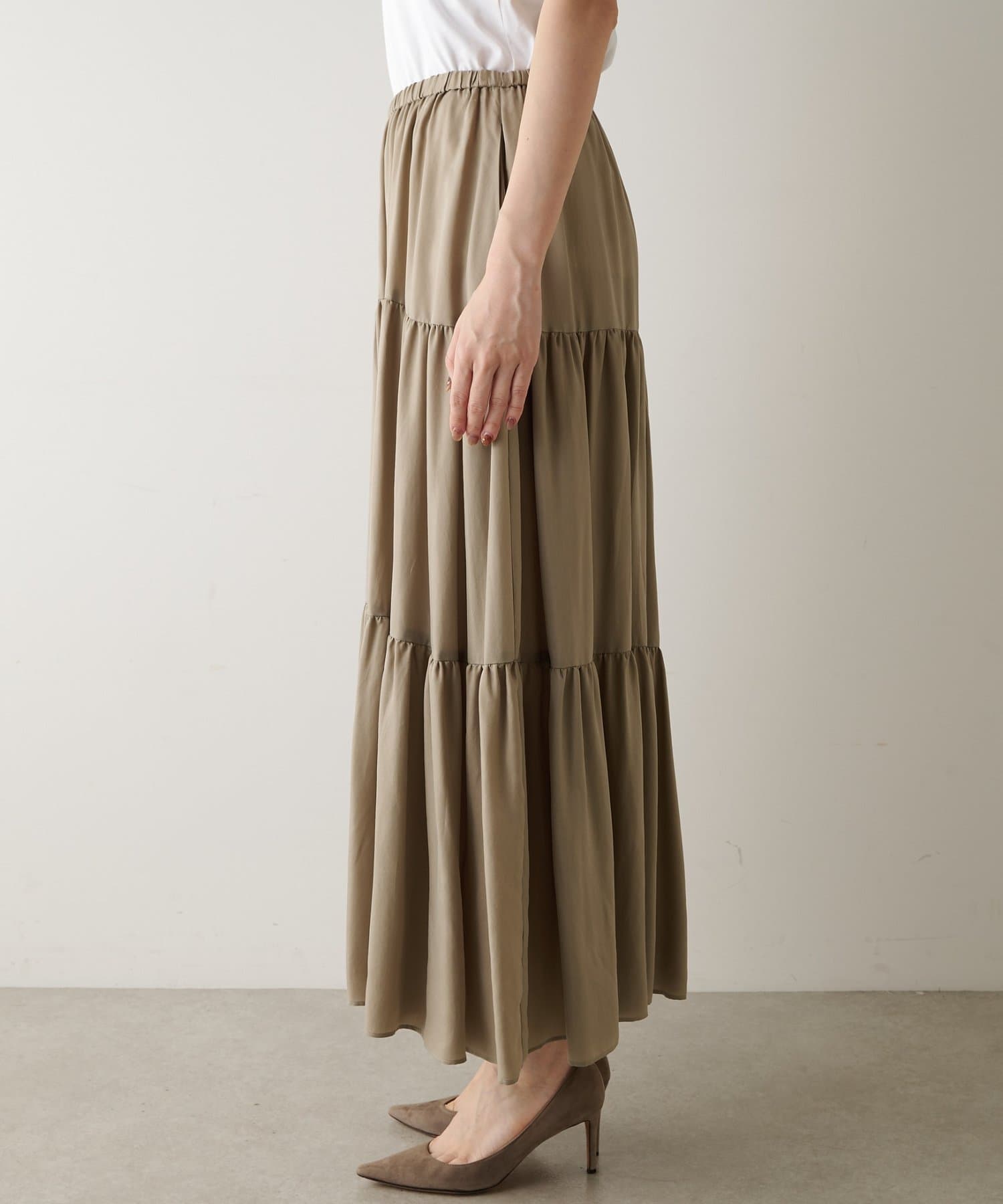■ティアードデザインが女性らしさを演出するギャザースカート。