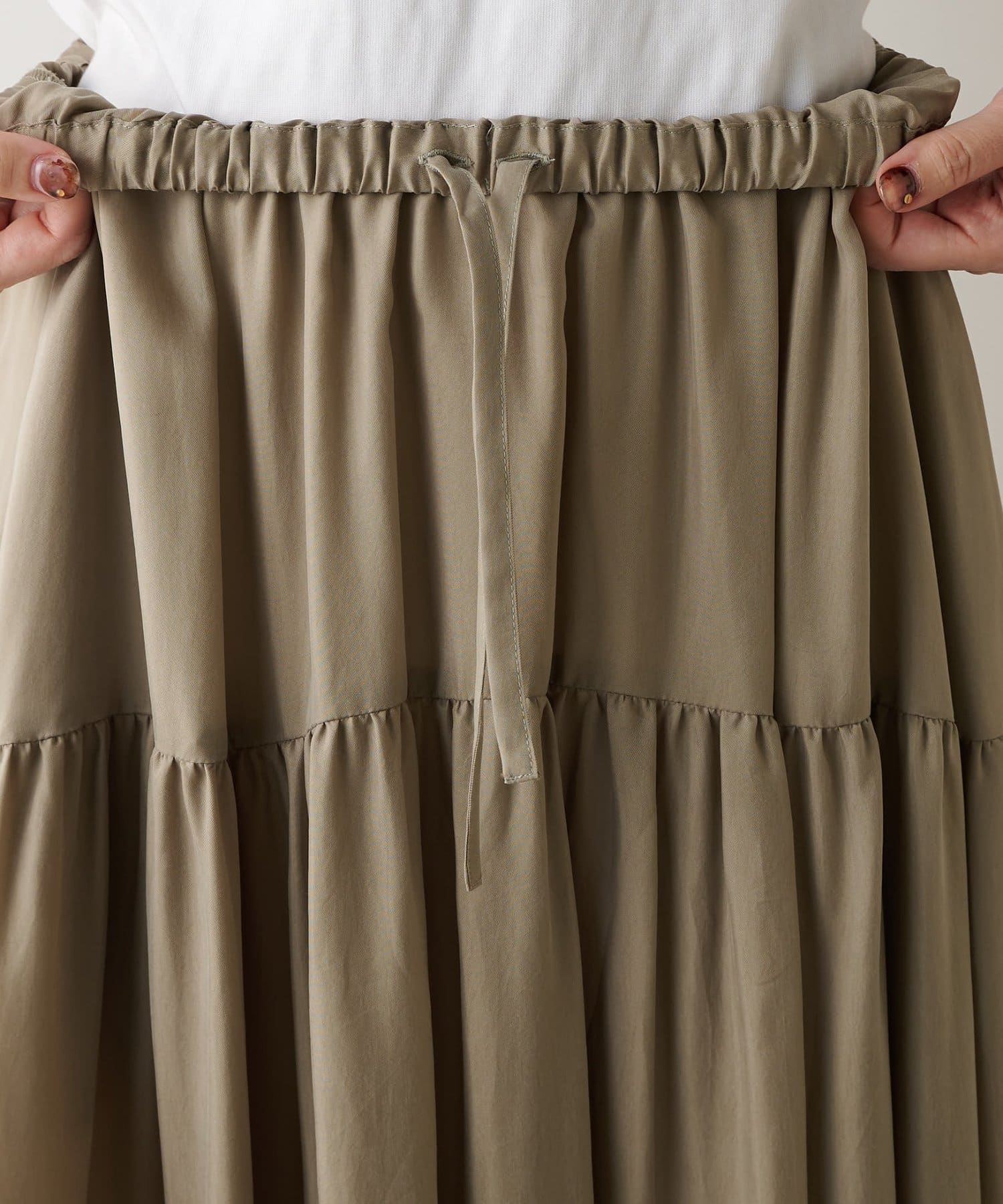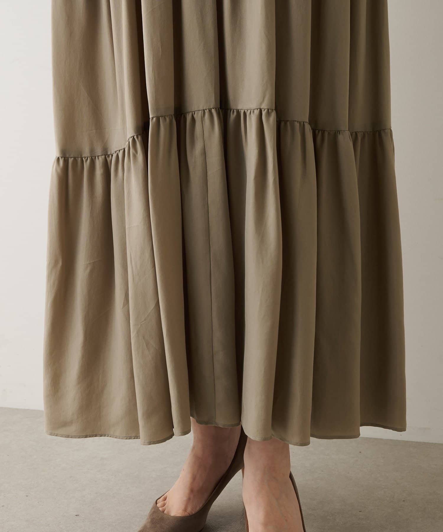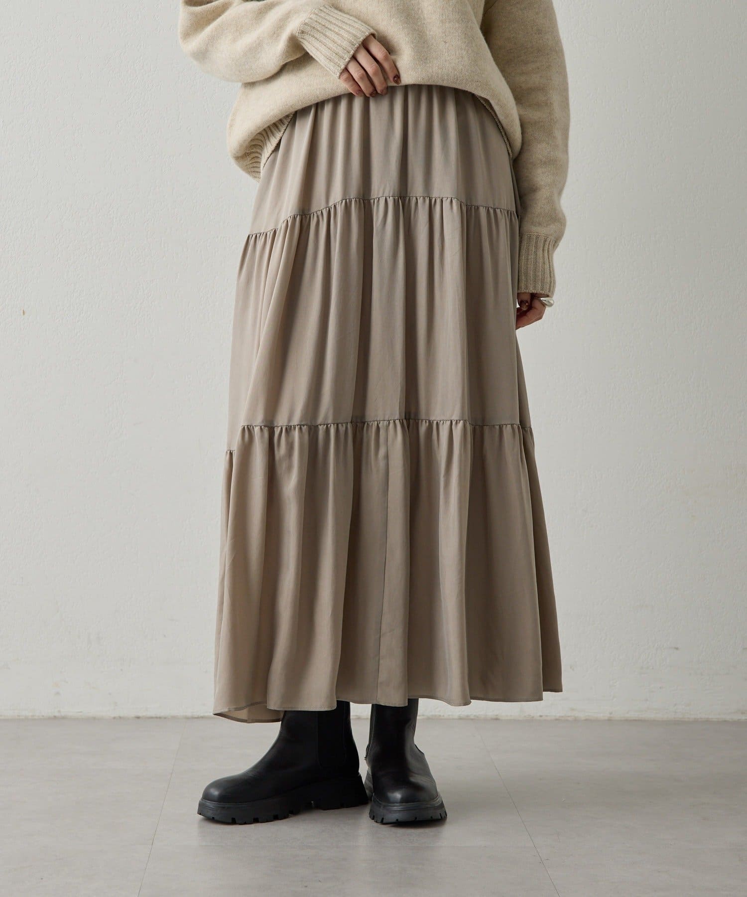 ■ティアードデザインが女性らしさを演出するギャザースカート。