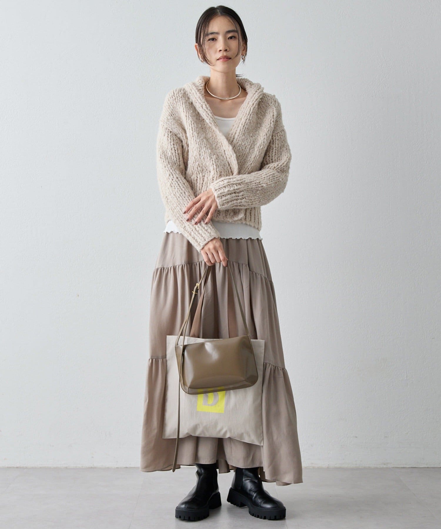 秋冬のスタイリングに軽さを添えるティアードスカート