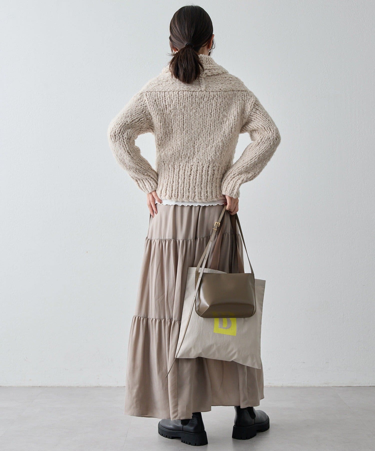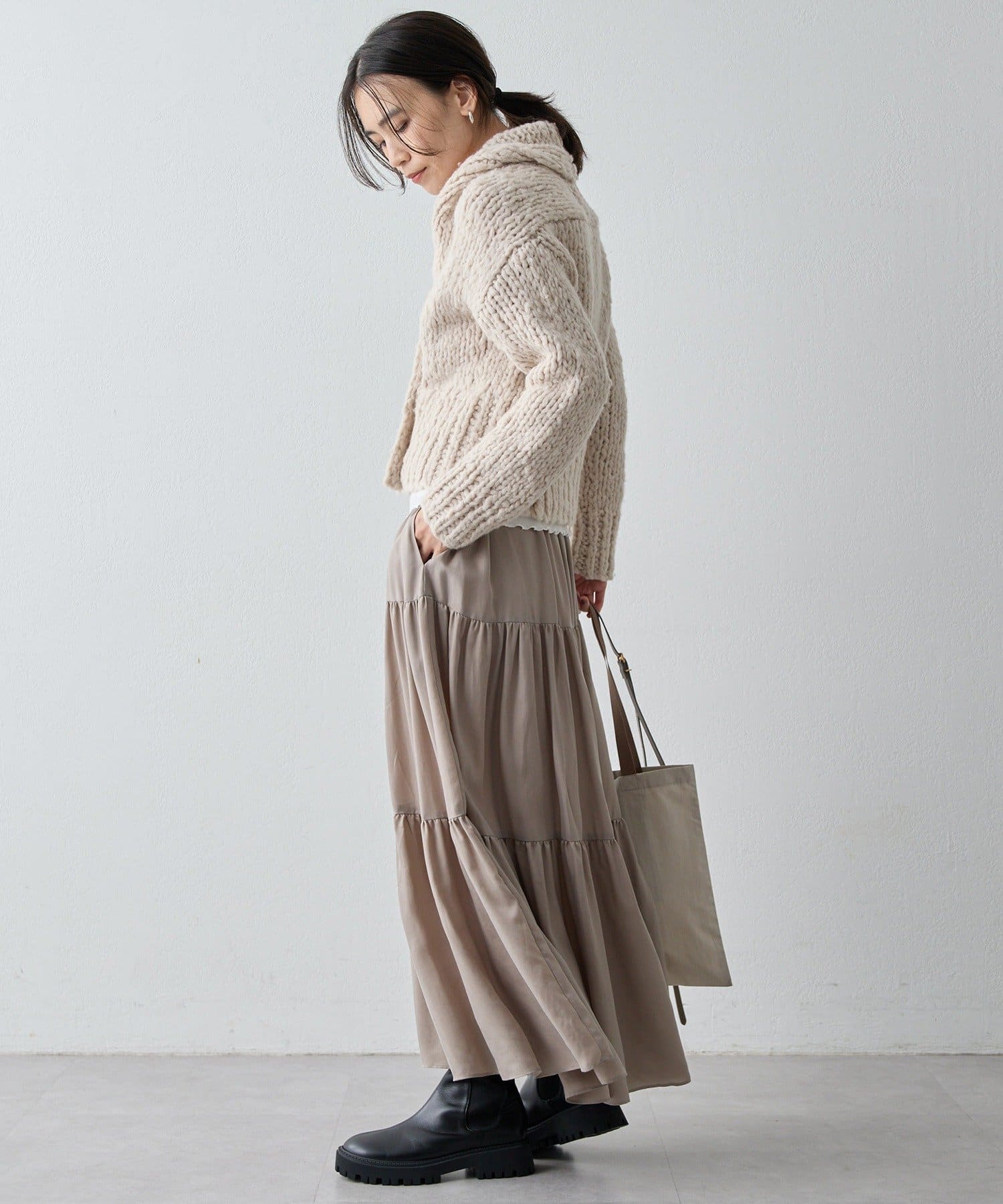 ■軽やかに揺れ動くスカートは、毛足のあるニットやオーバーサイズのニットに合わせたいアイテム。