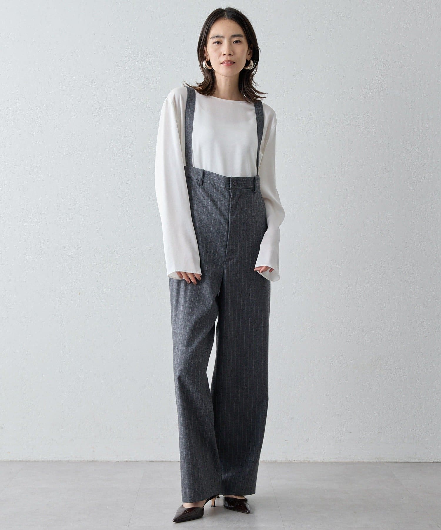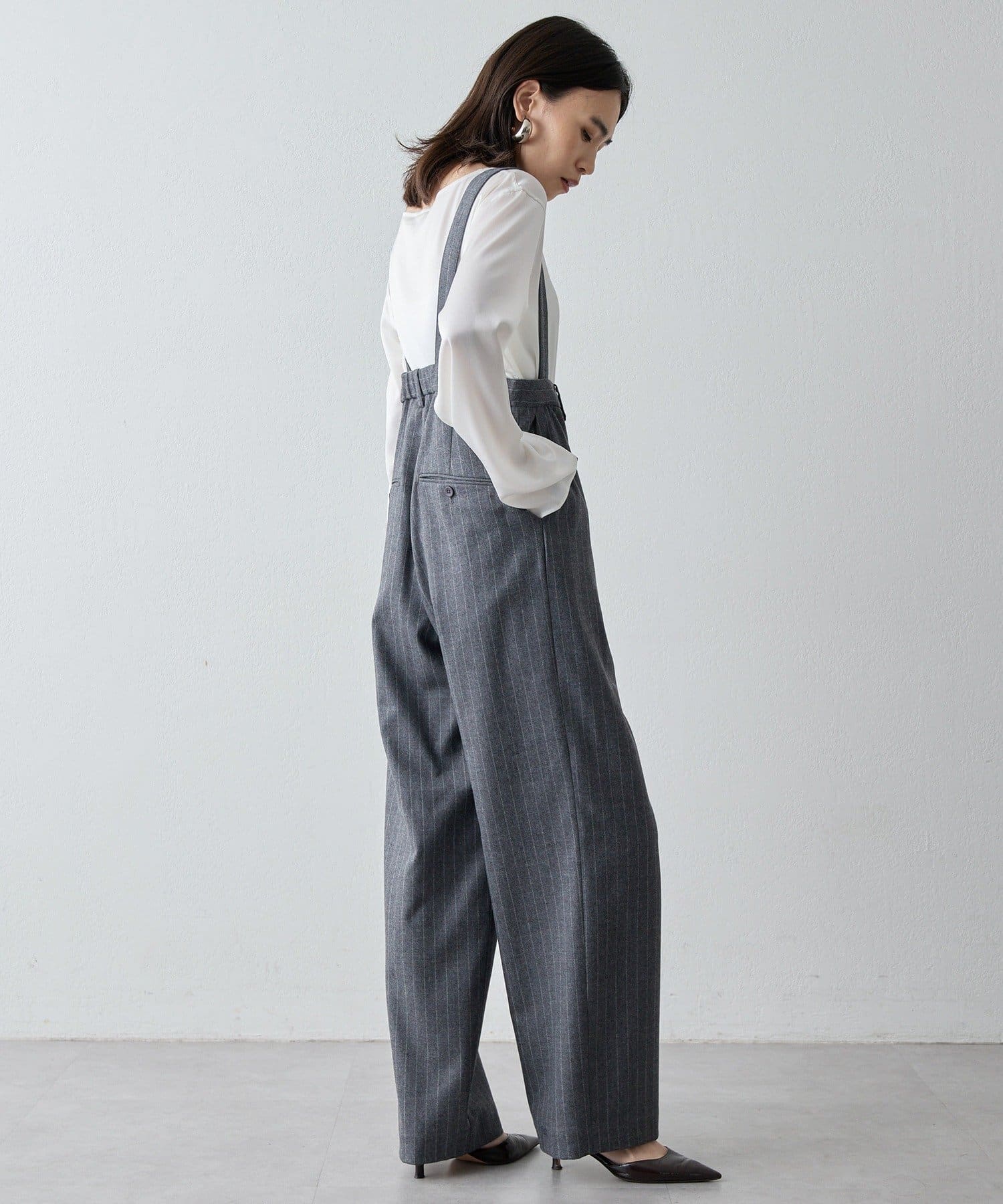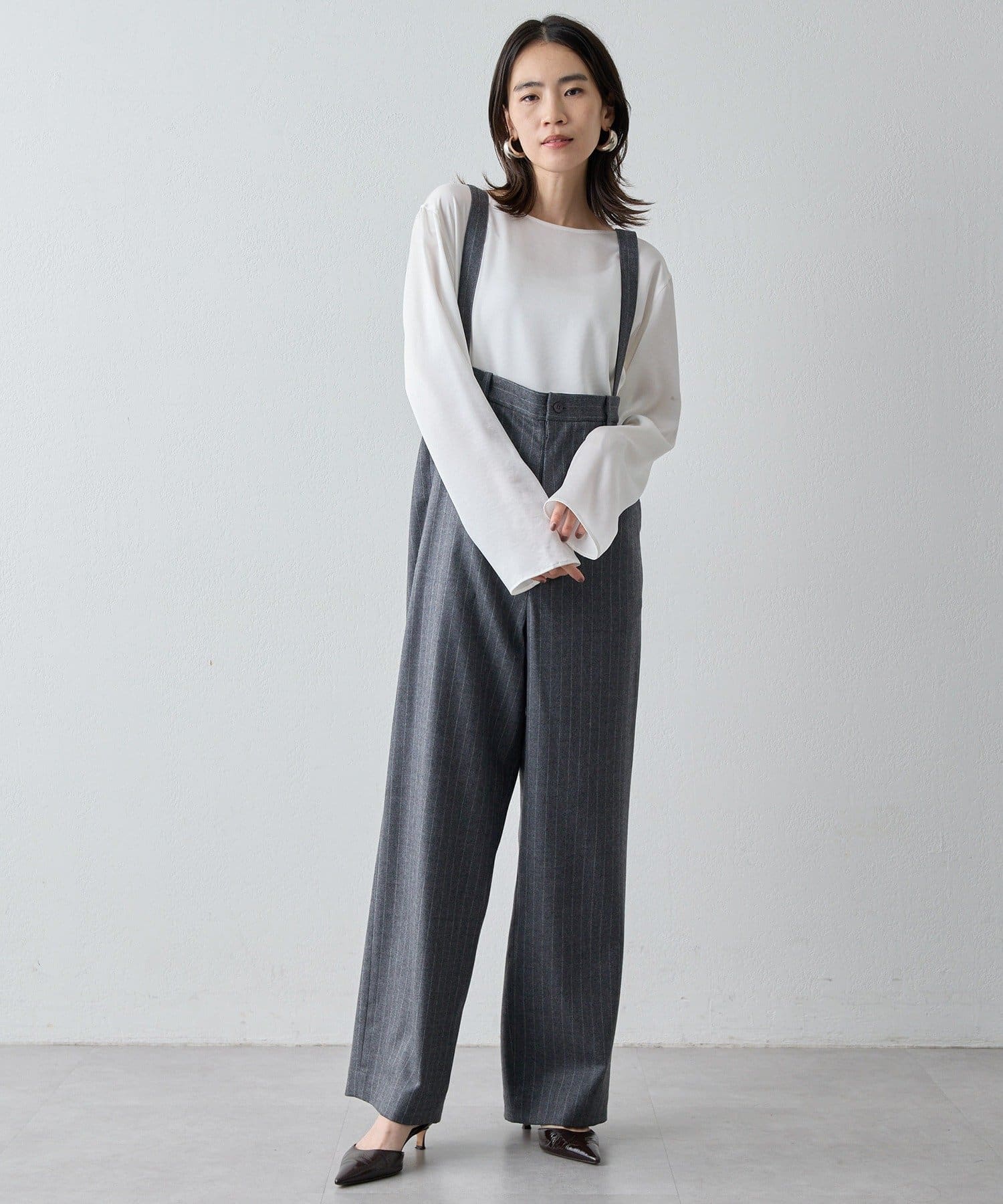 脚長効果が嬉しい、大人のサロペットワイドパンツ