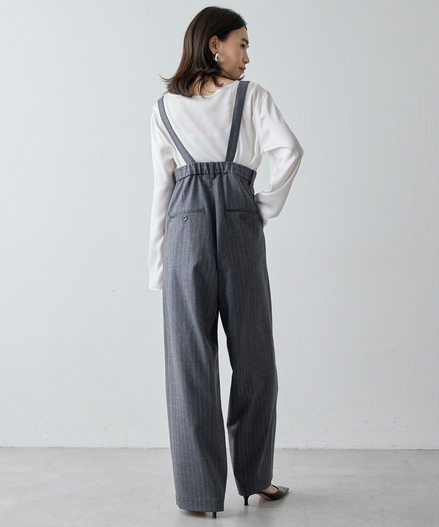 《セットアップ対応可》ハイウエストサロペットワイドパンツ