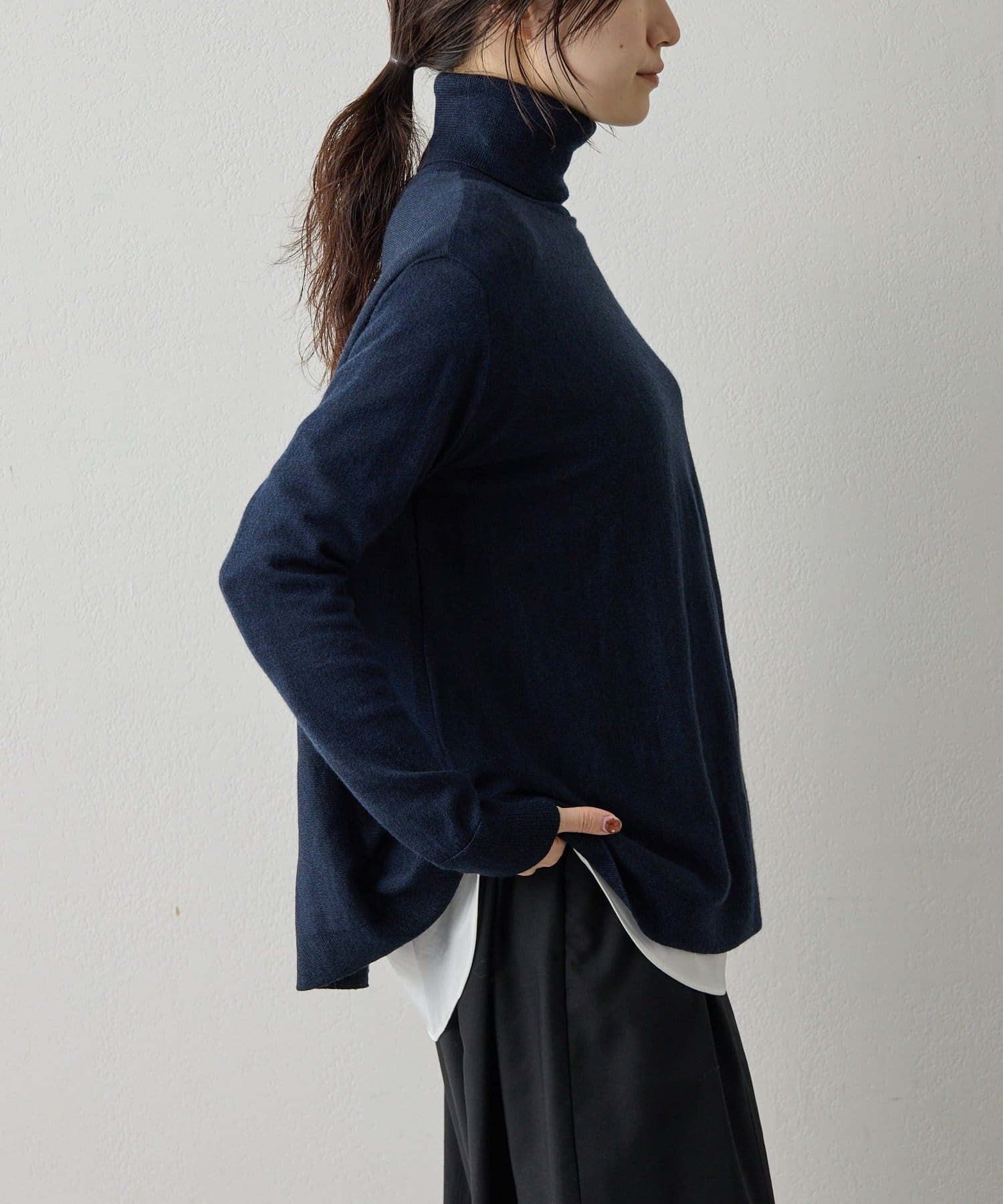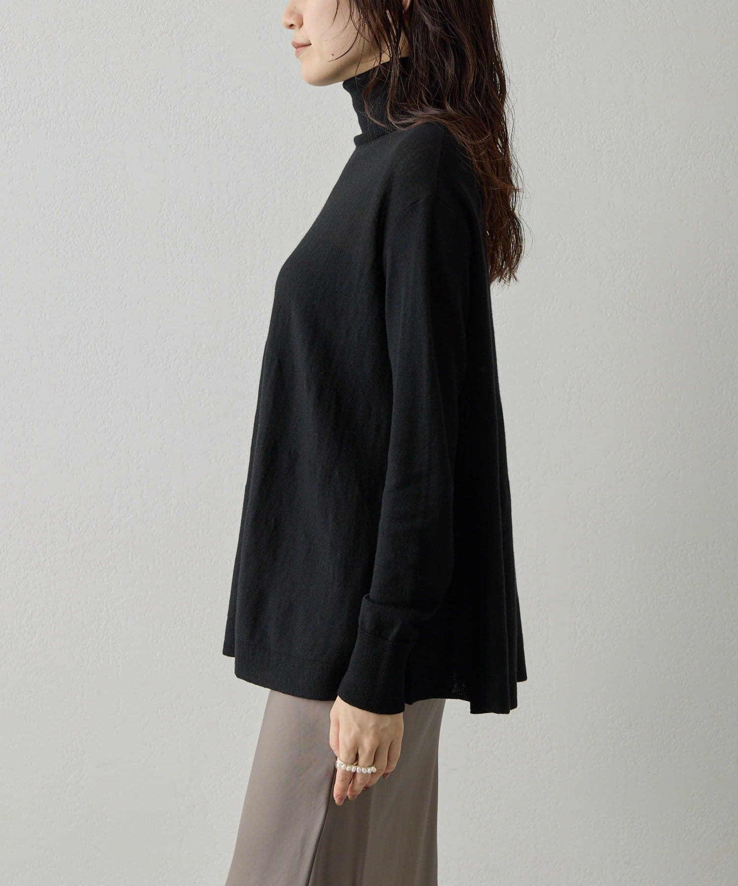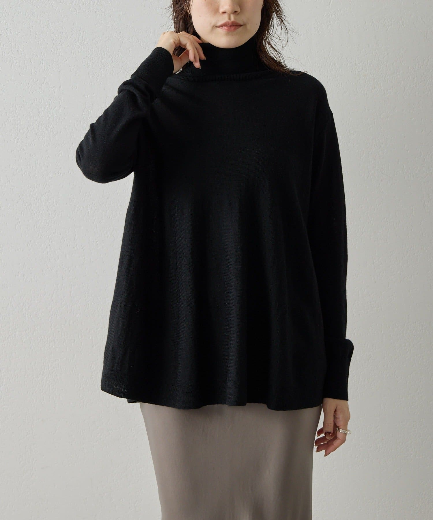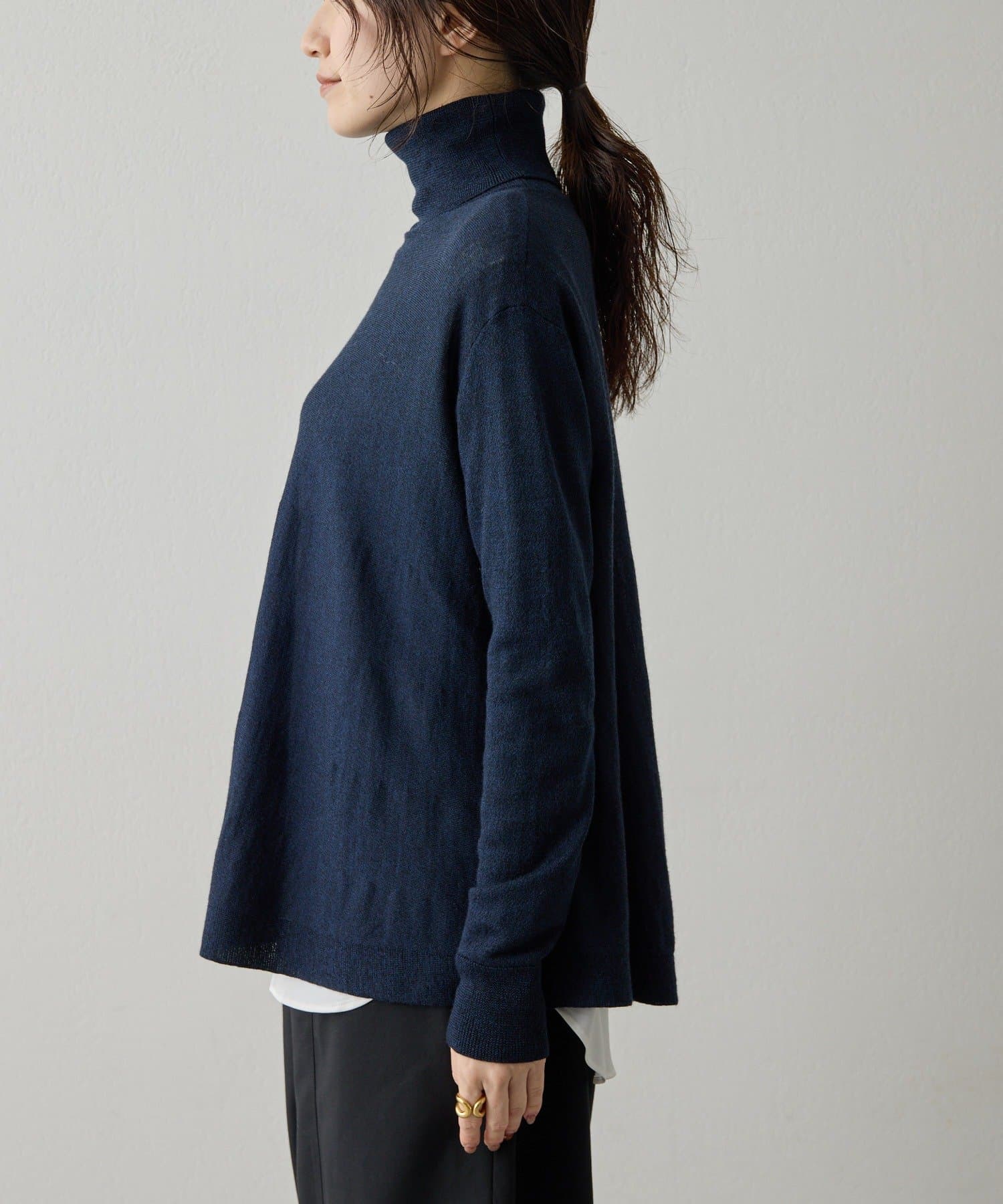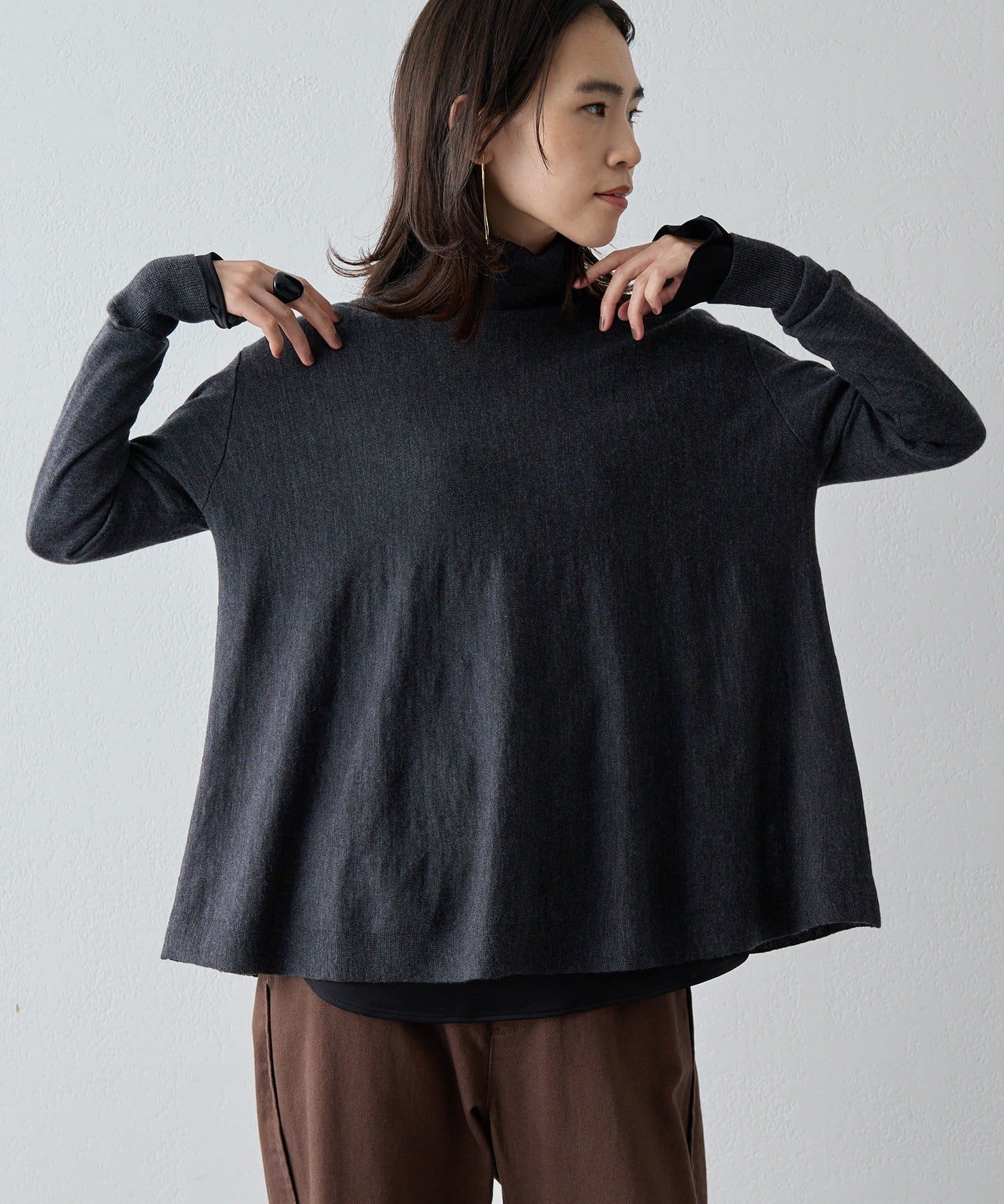 ■裾に向かって広がるAラインシルエットのタートルニットプルオーバー。