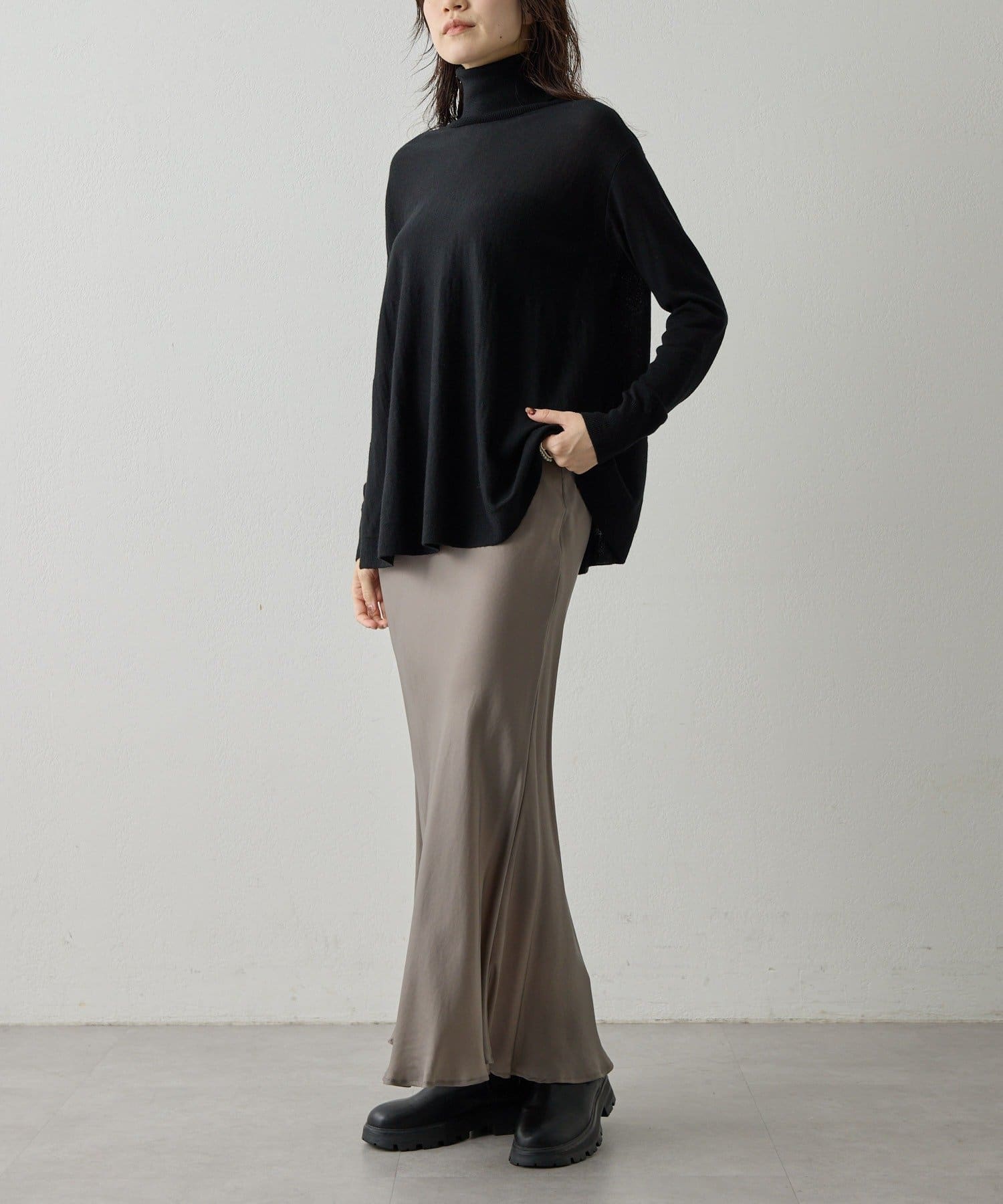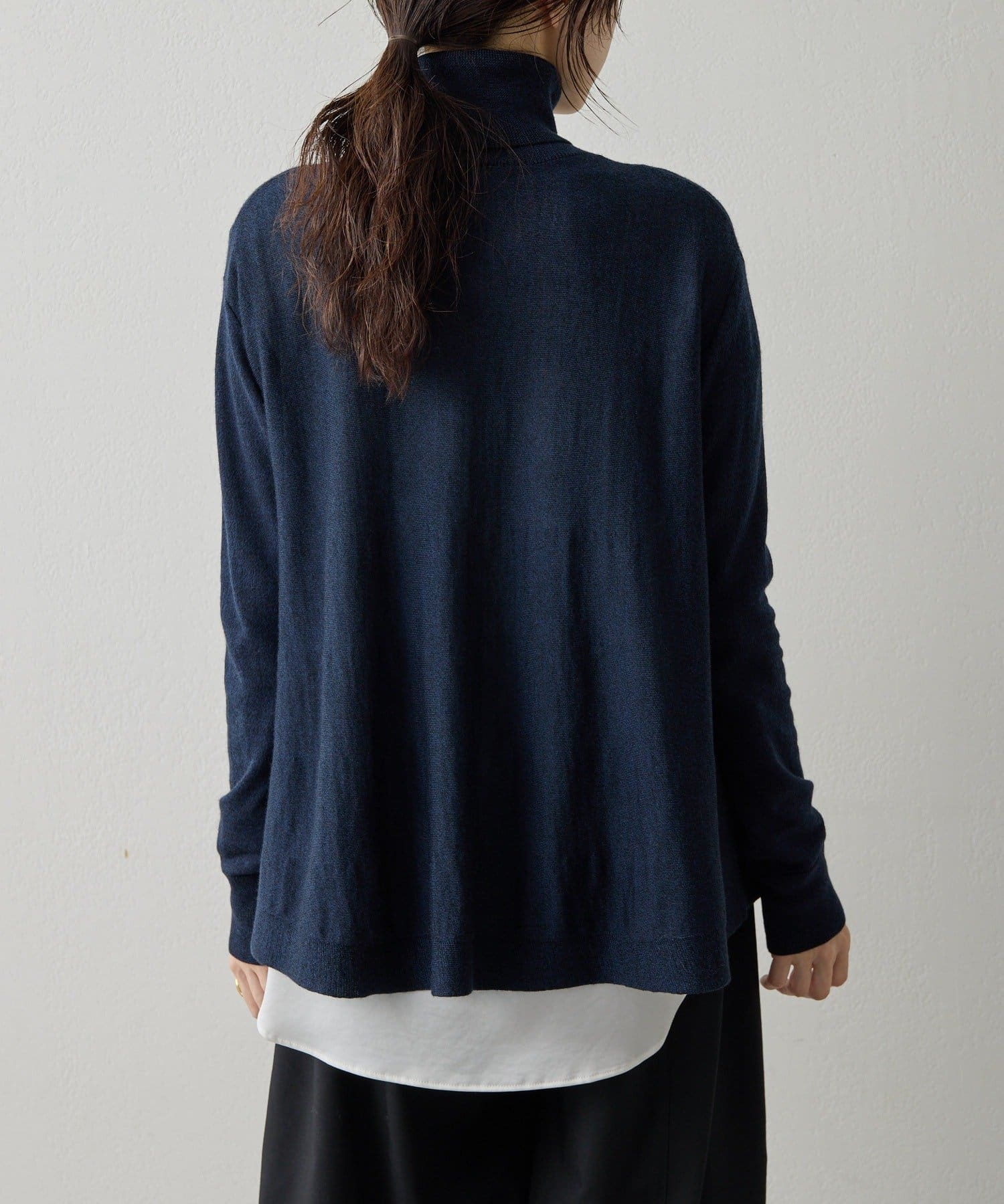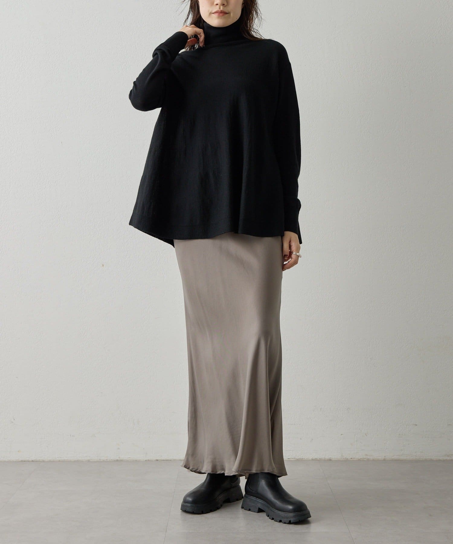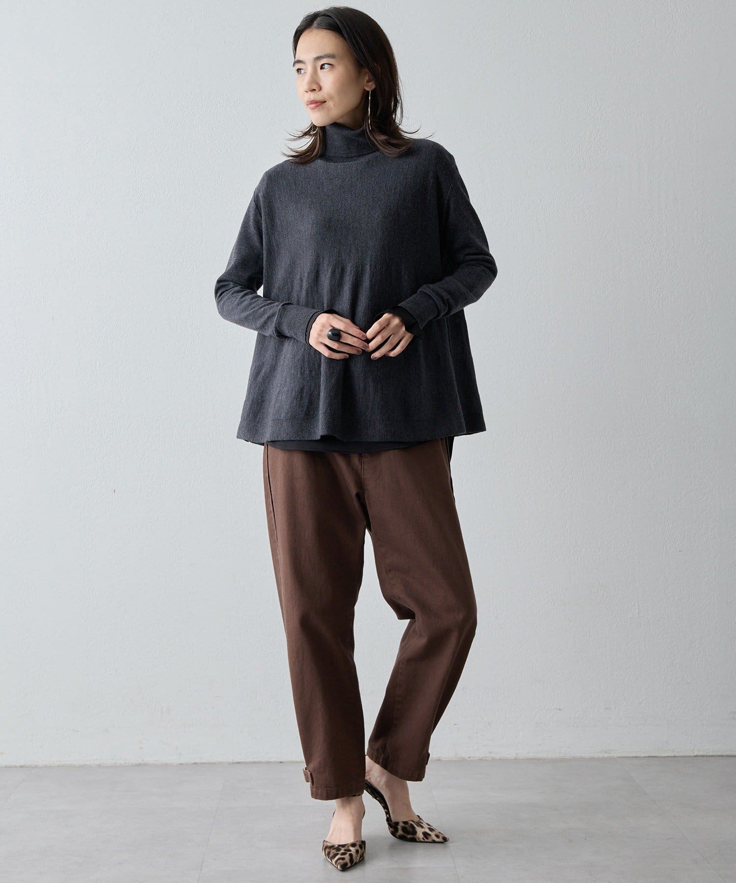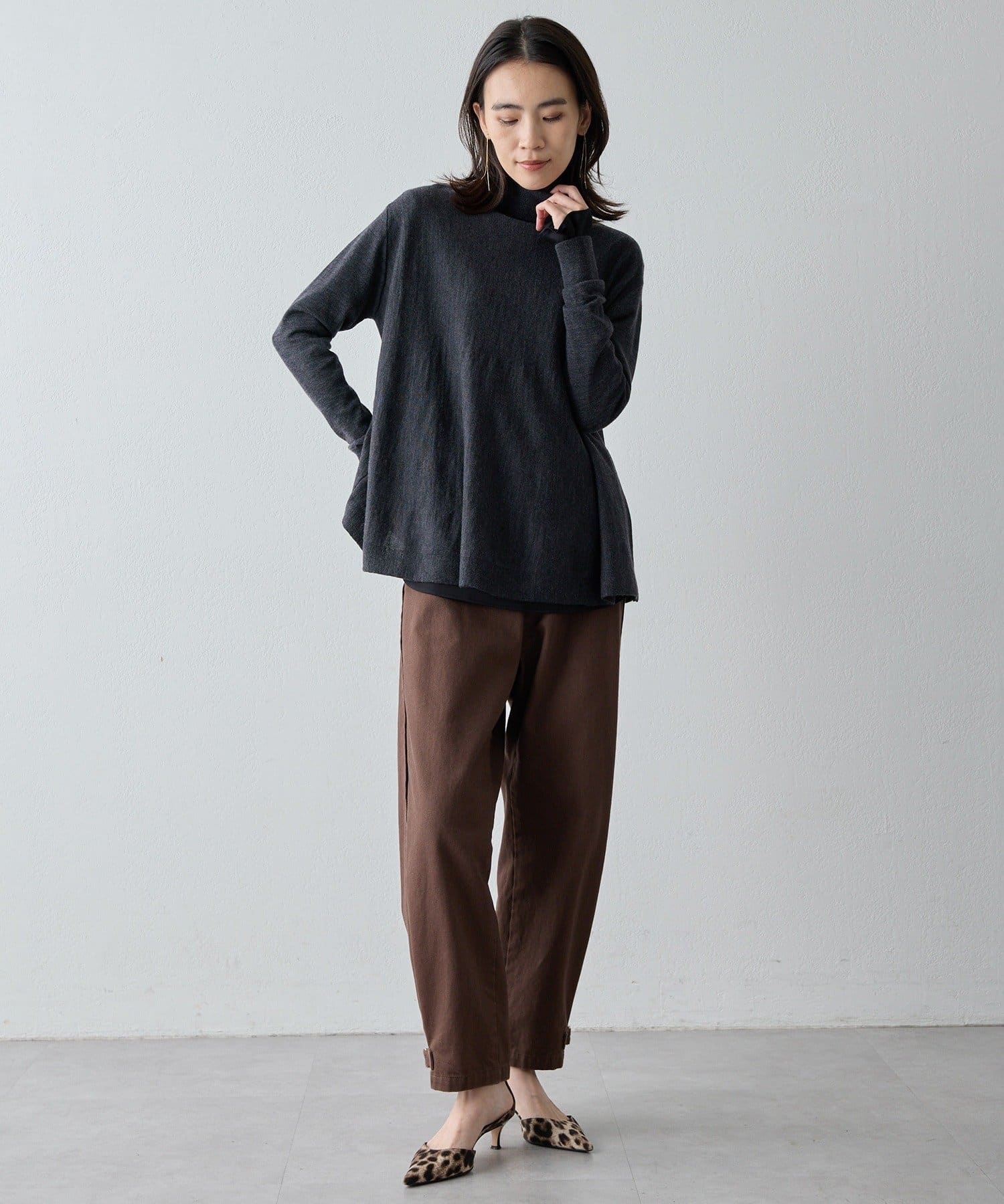 ■裾に向かって広がるAラインシルエットのタートルニットプルオーバー。