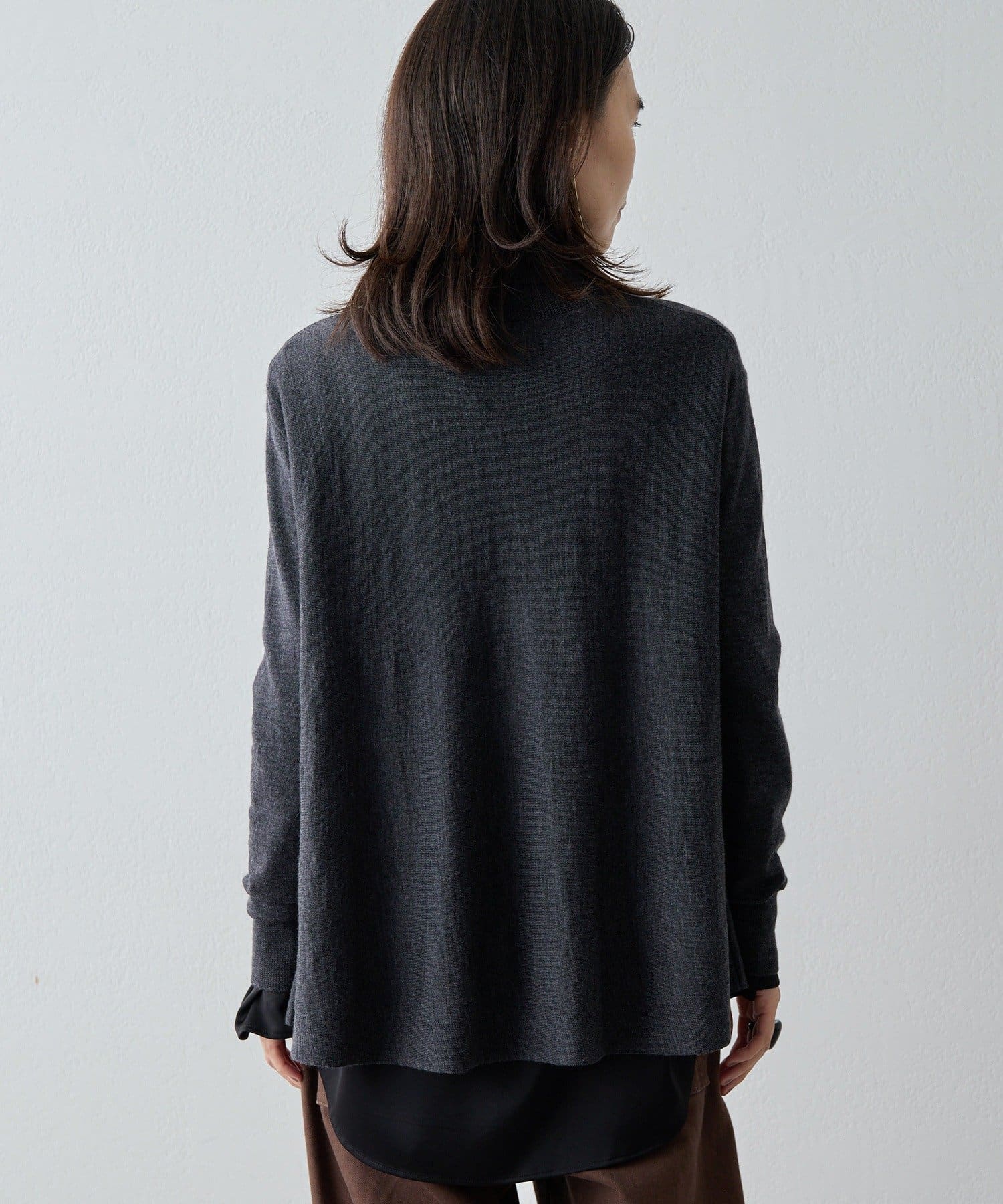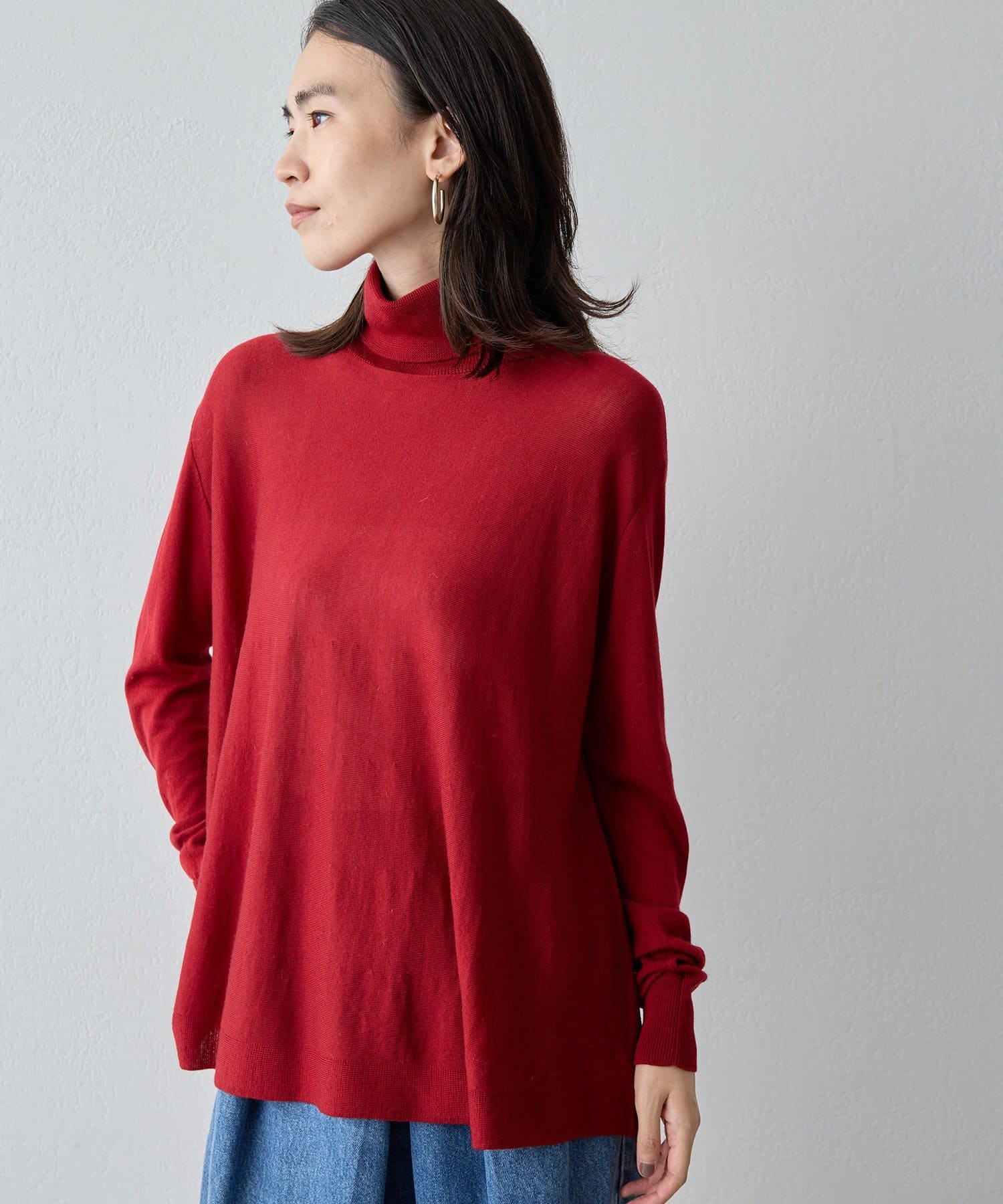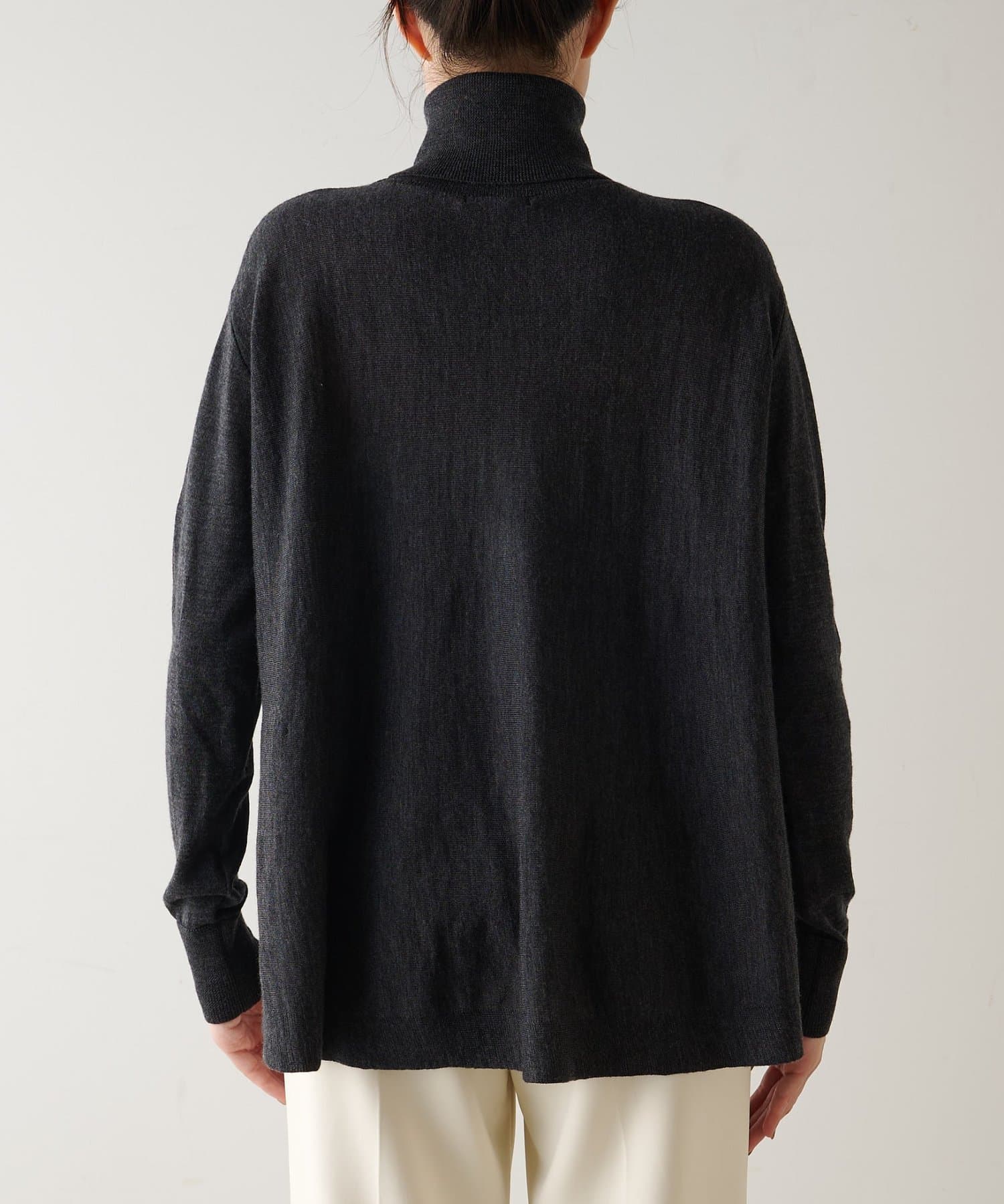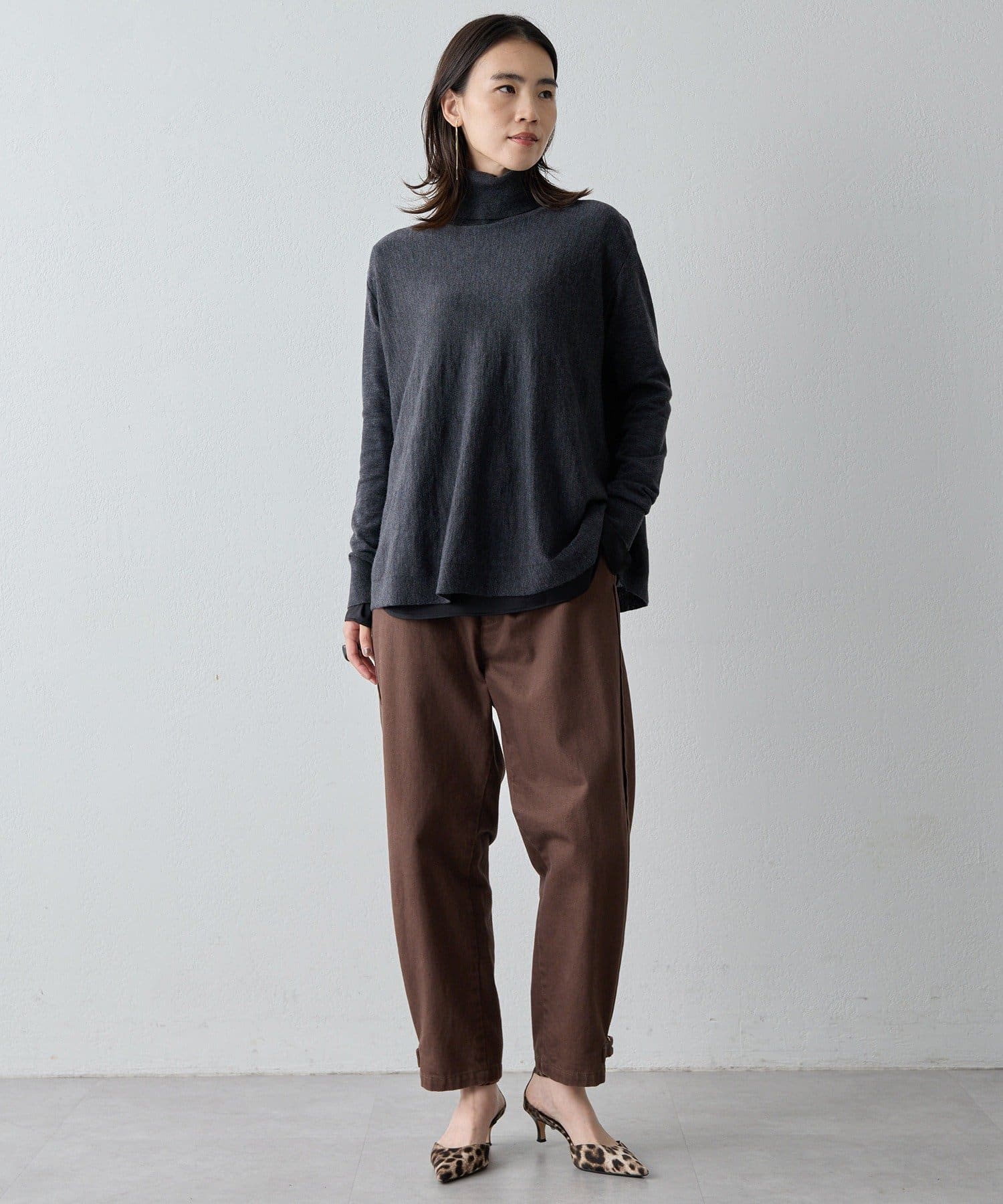■裾に向かって広がるAラインシルエットのタートルニットプルオーバー。