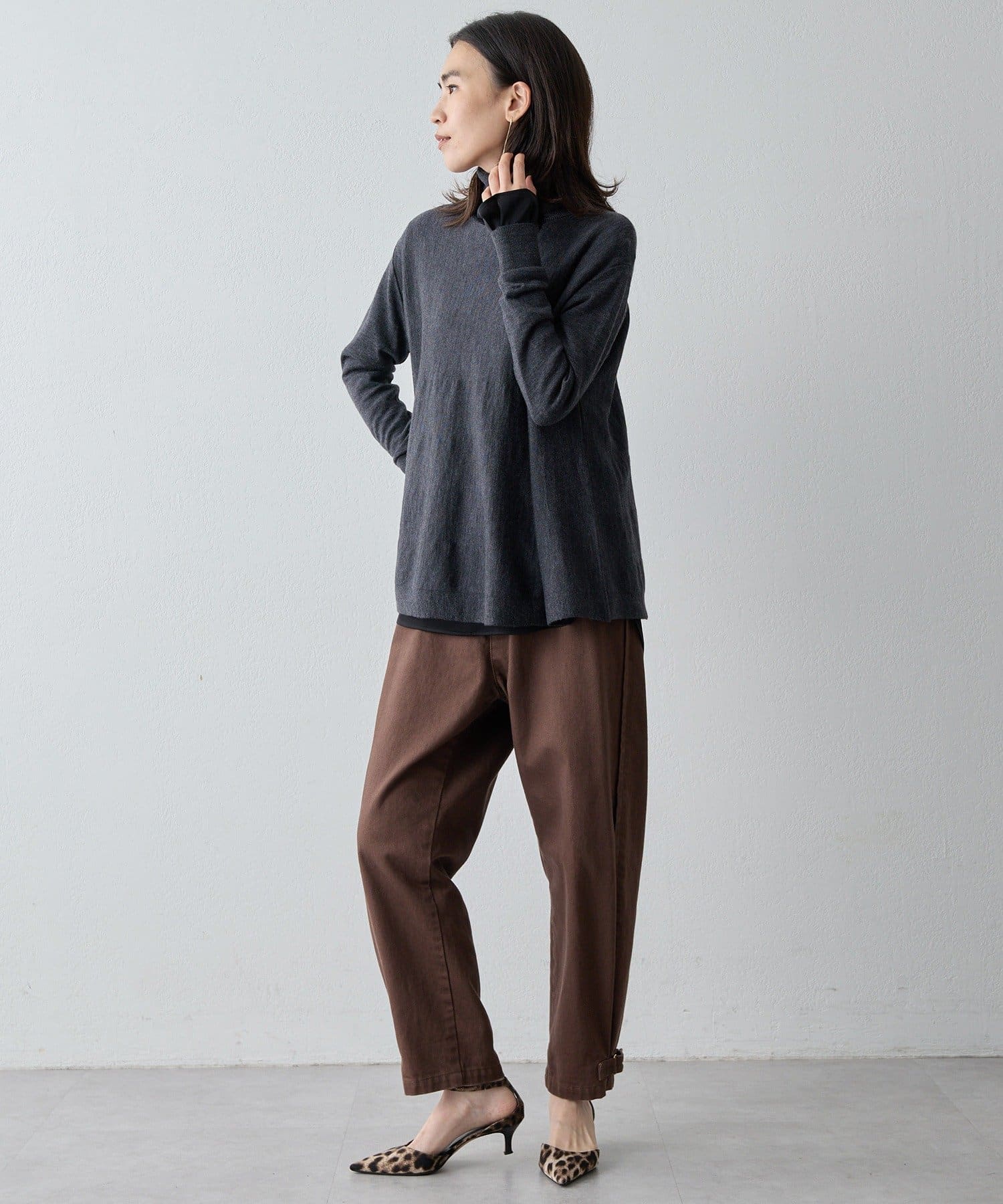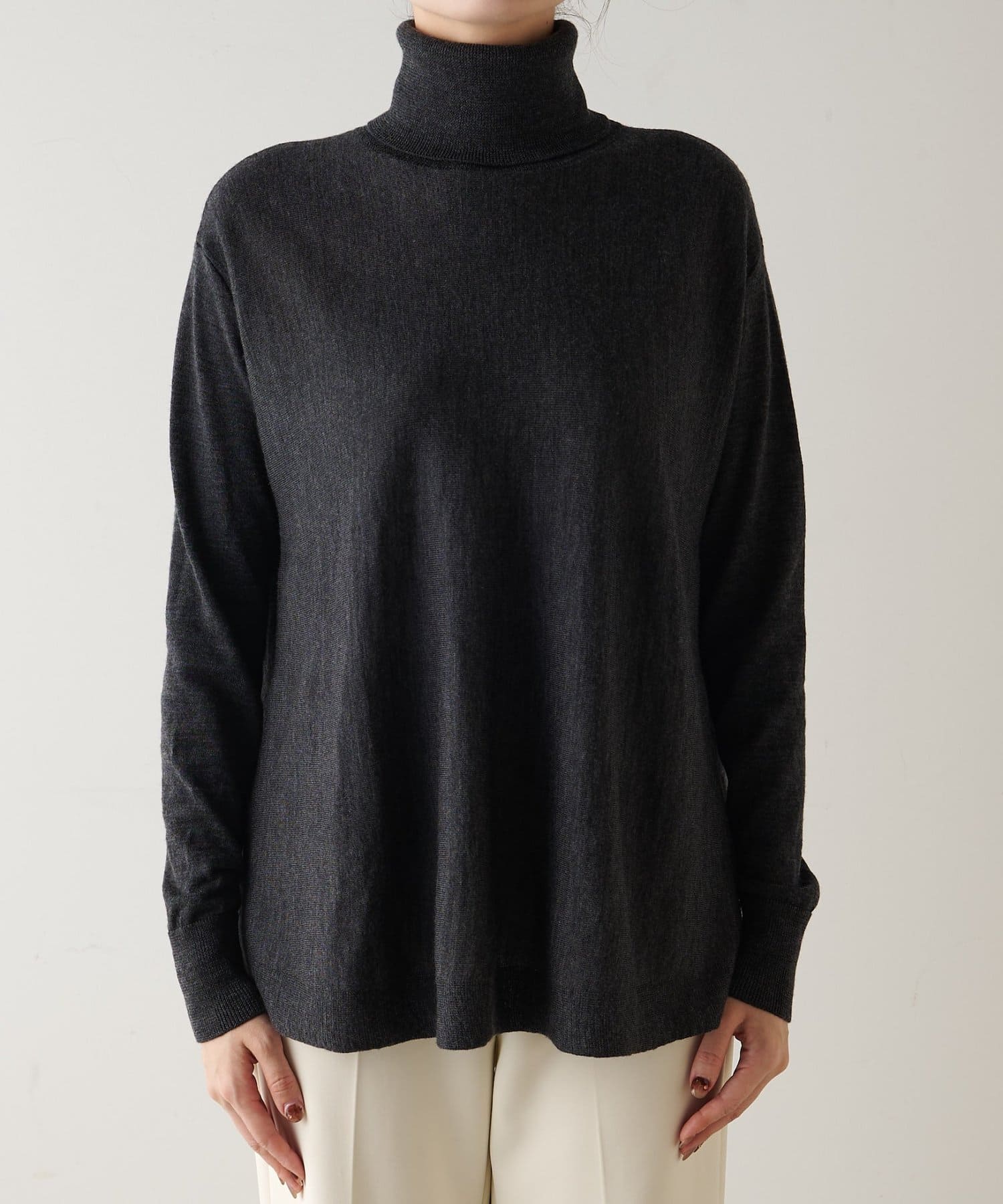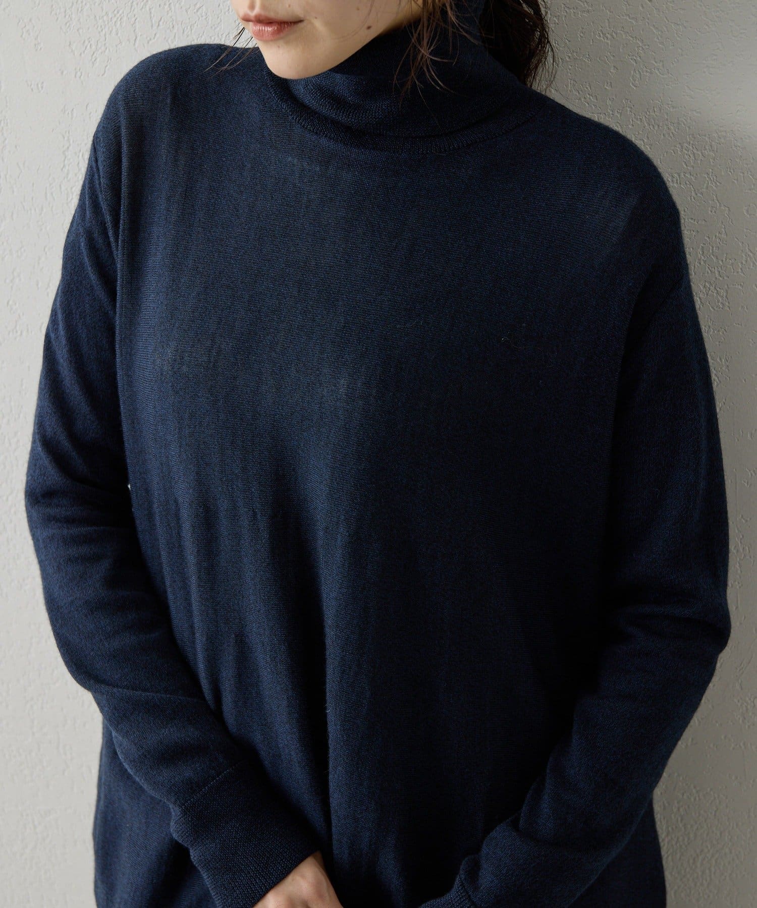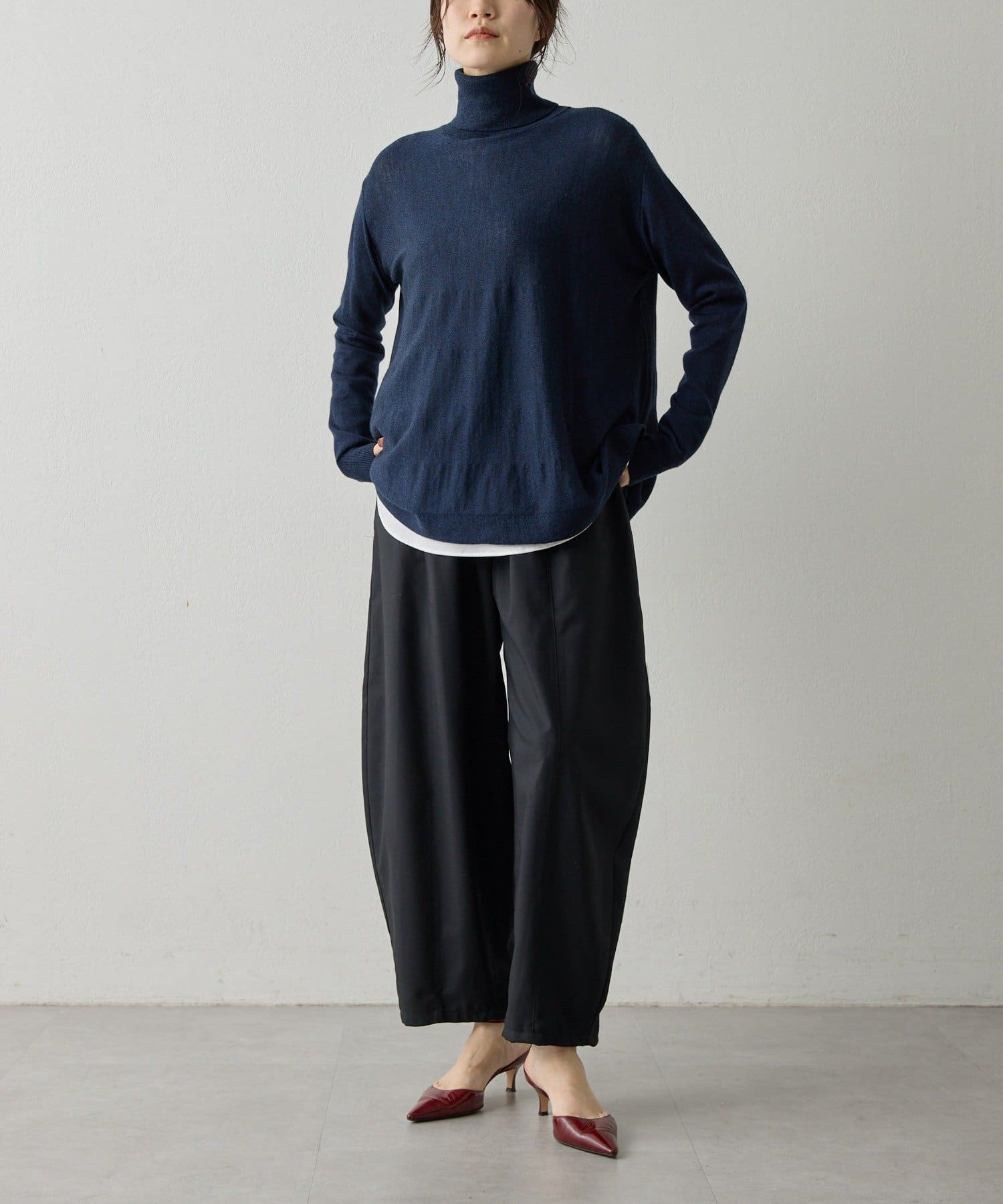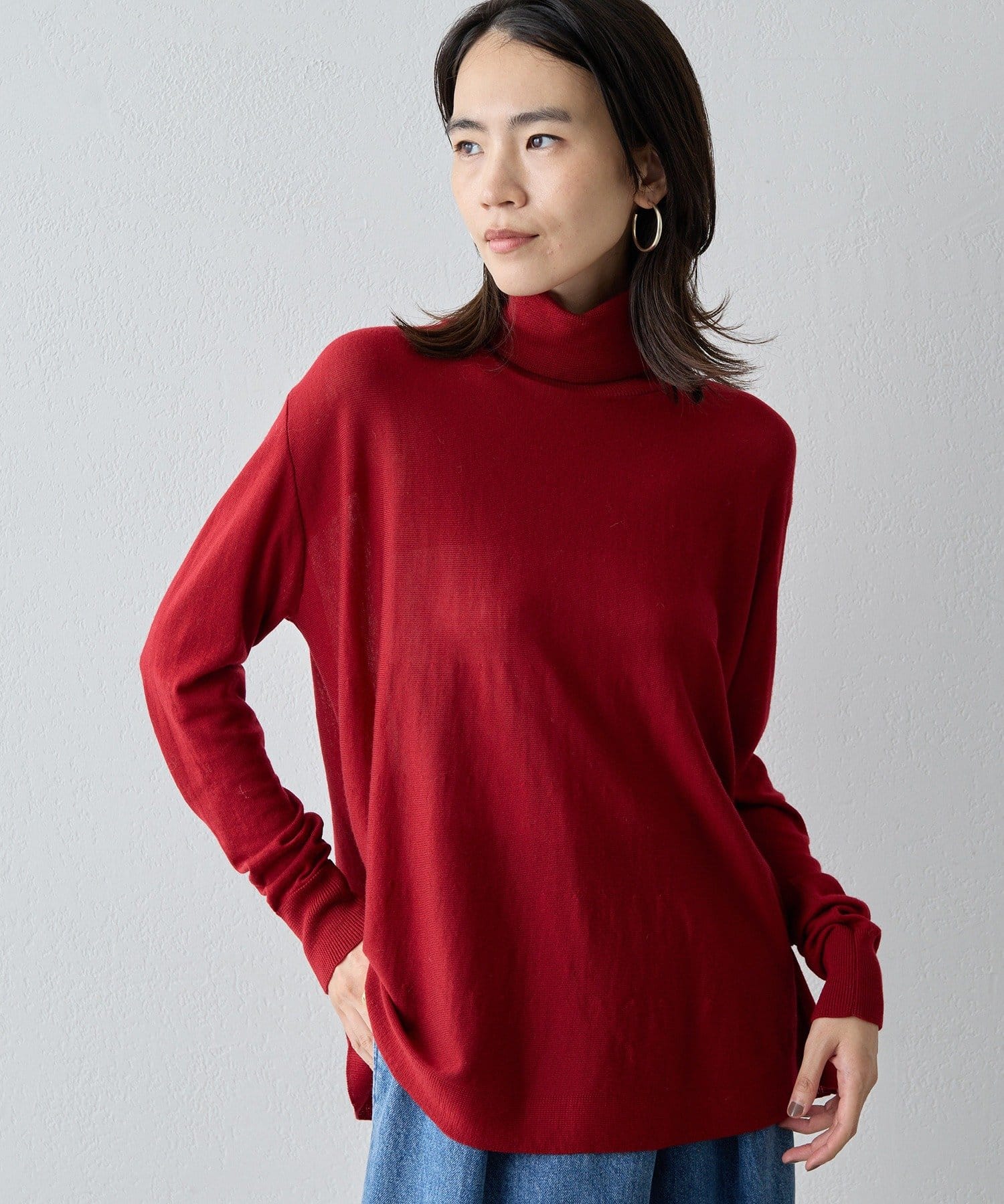 ■裾に向かって広がるAラインシルエットのタートルニットプルオーバー。