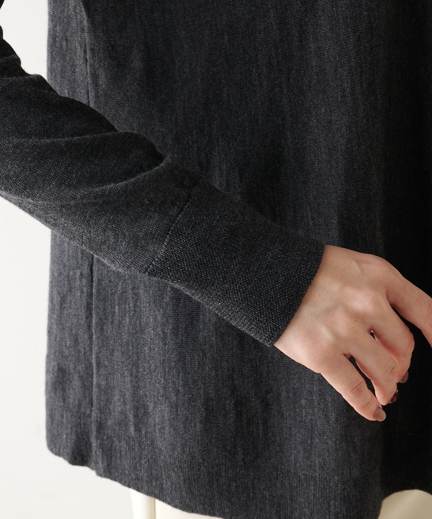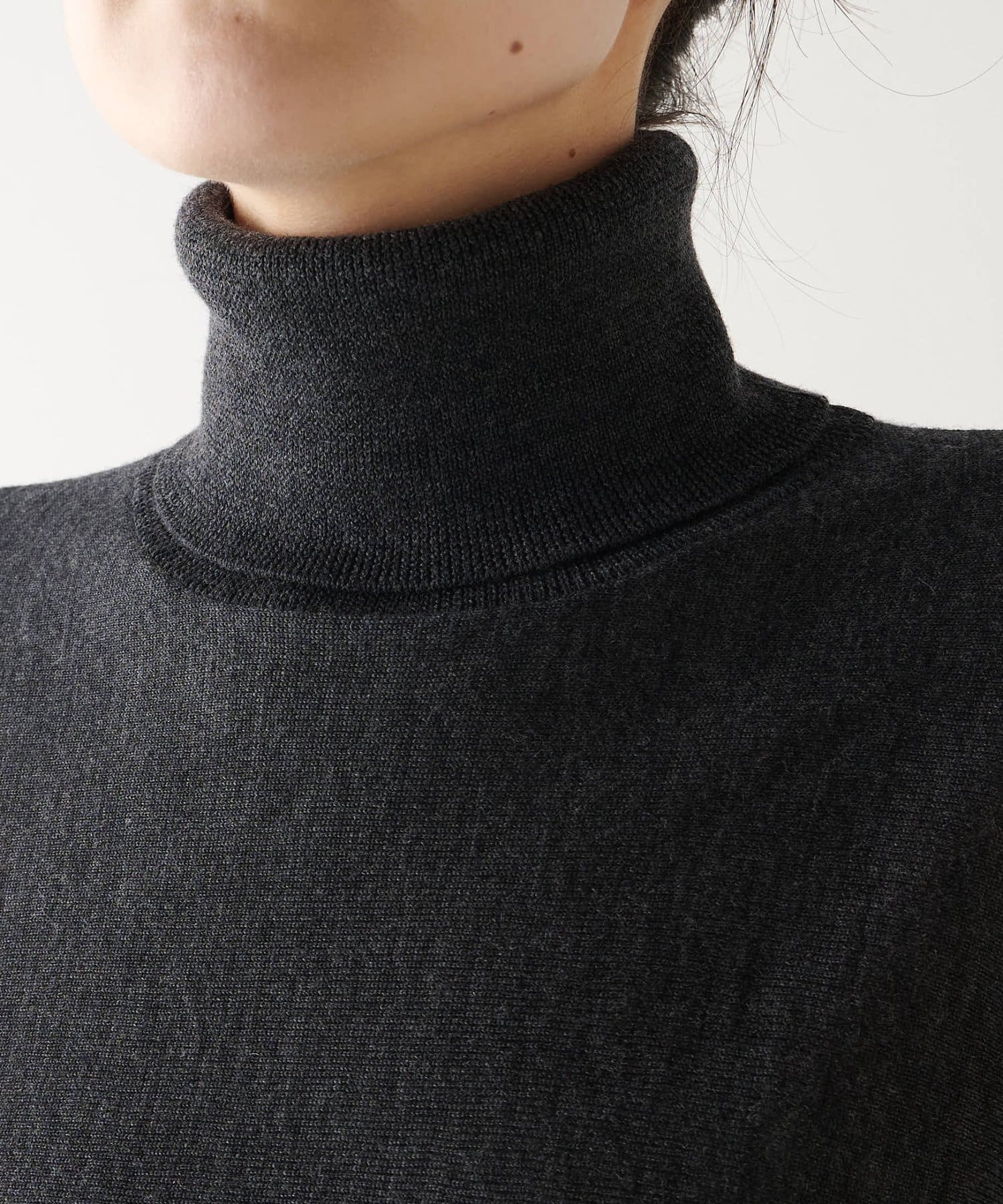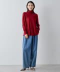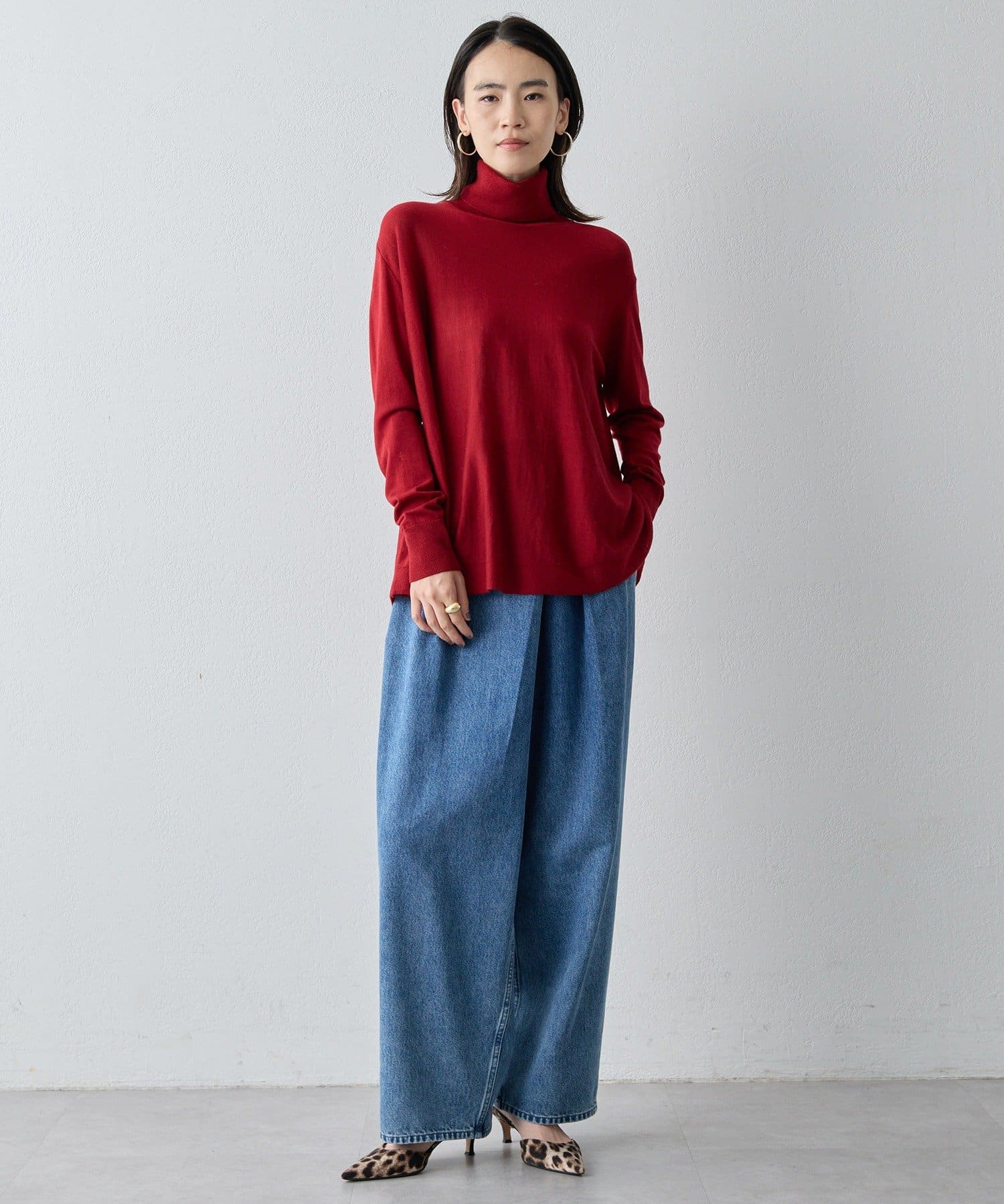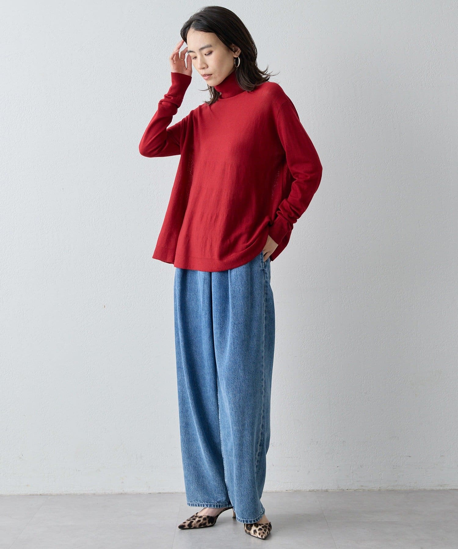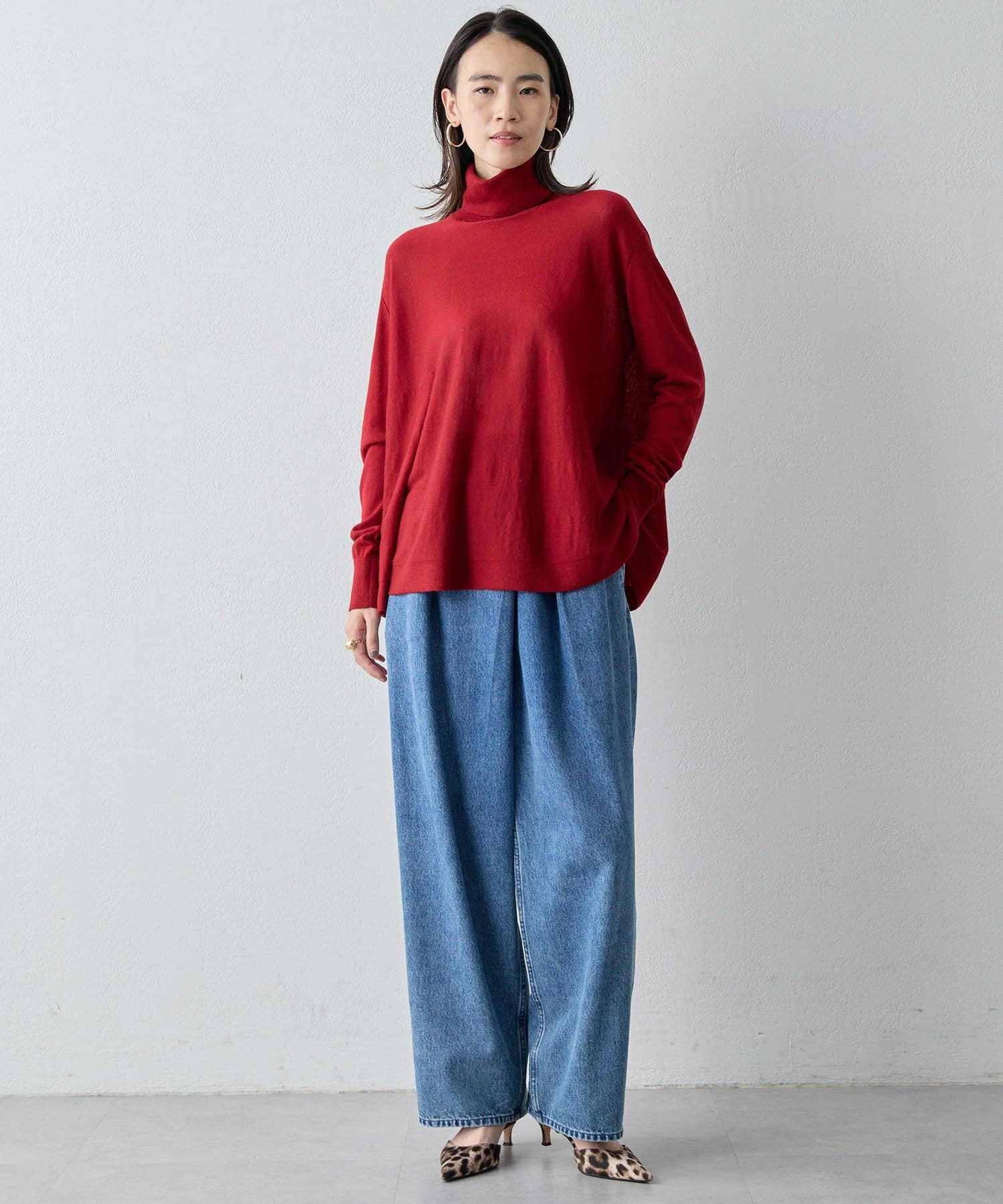 ■裾に向かって広がるAラインシルエットのタートルニットプルオーバー。
