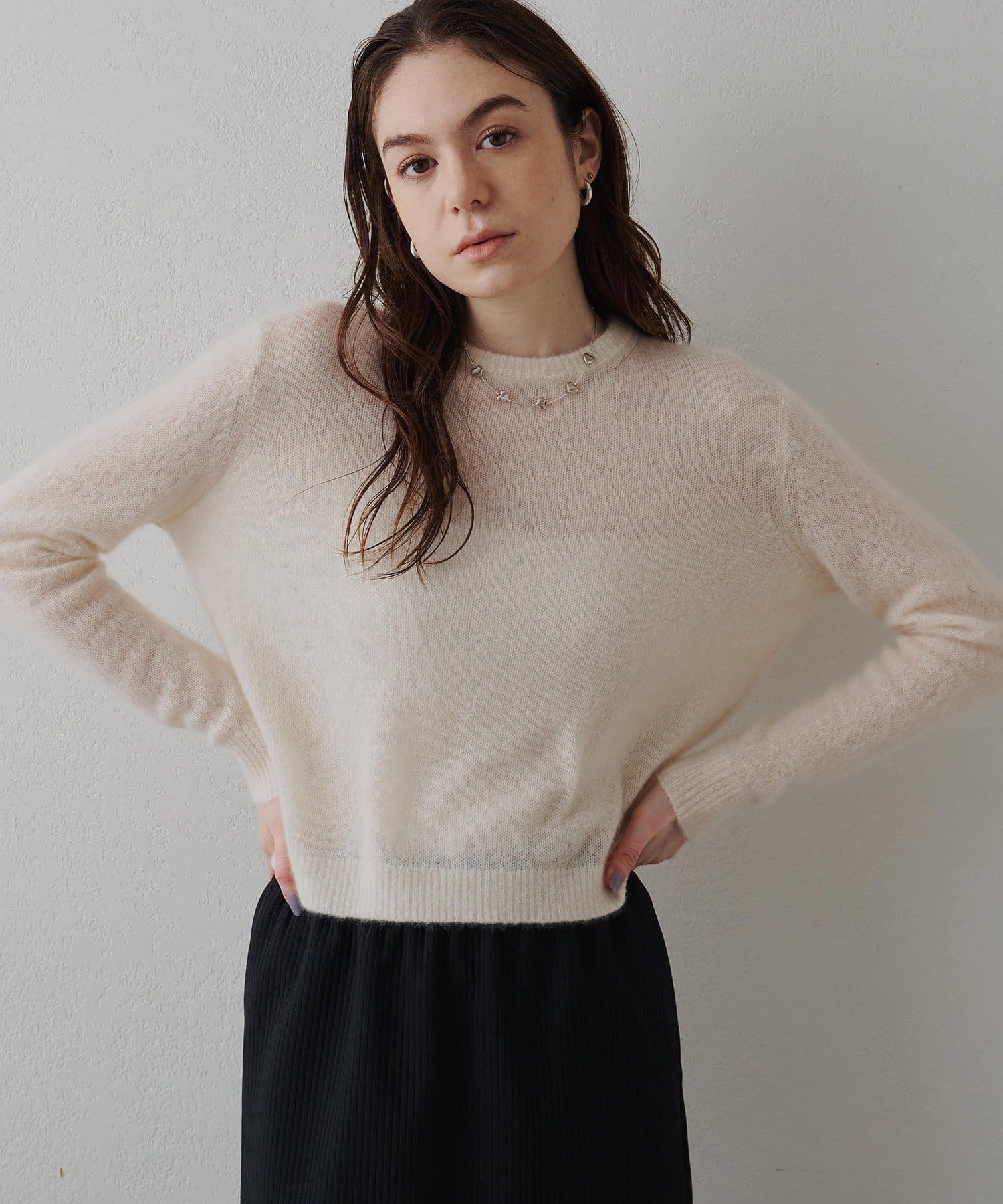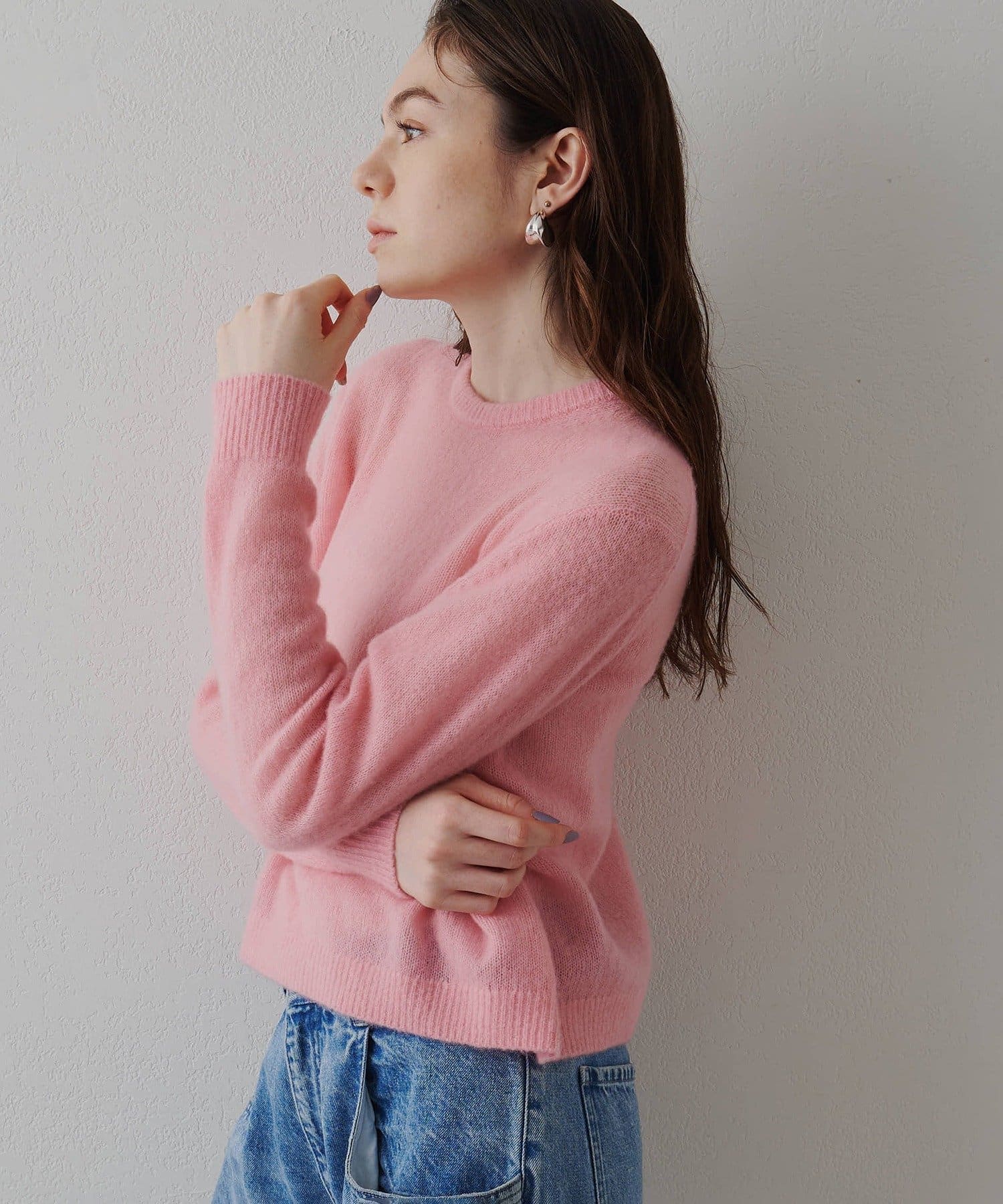 ふんわりとしたカシミヤにシルクをブレンドしたローゲージニット。