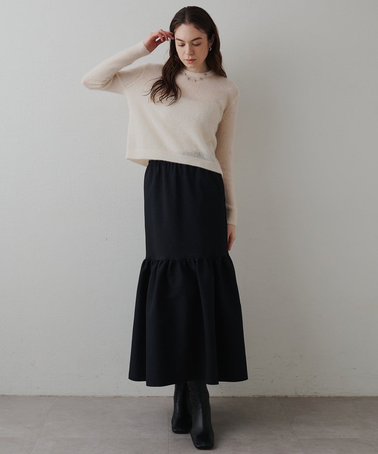 ■暖かみがありながらも、さりげない透け感が軽やかさを演出する一枚。