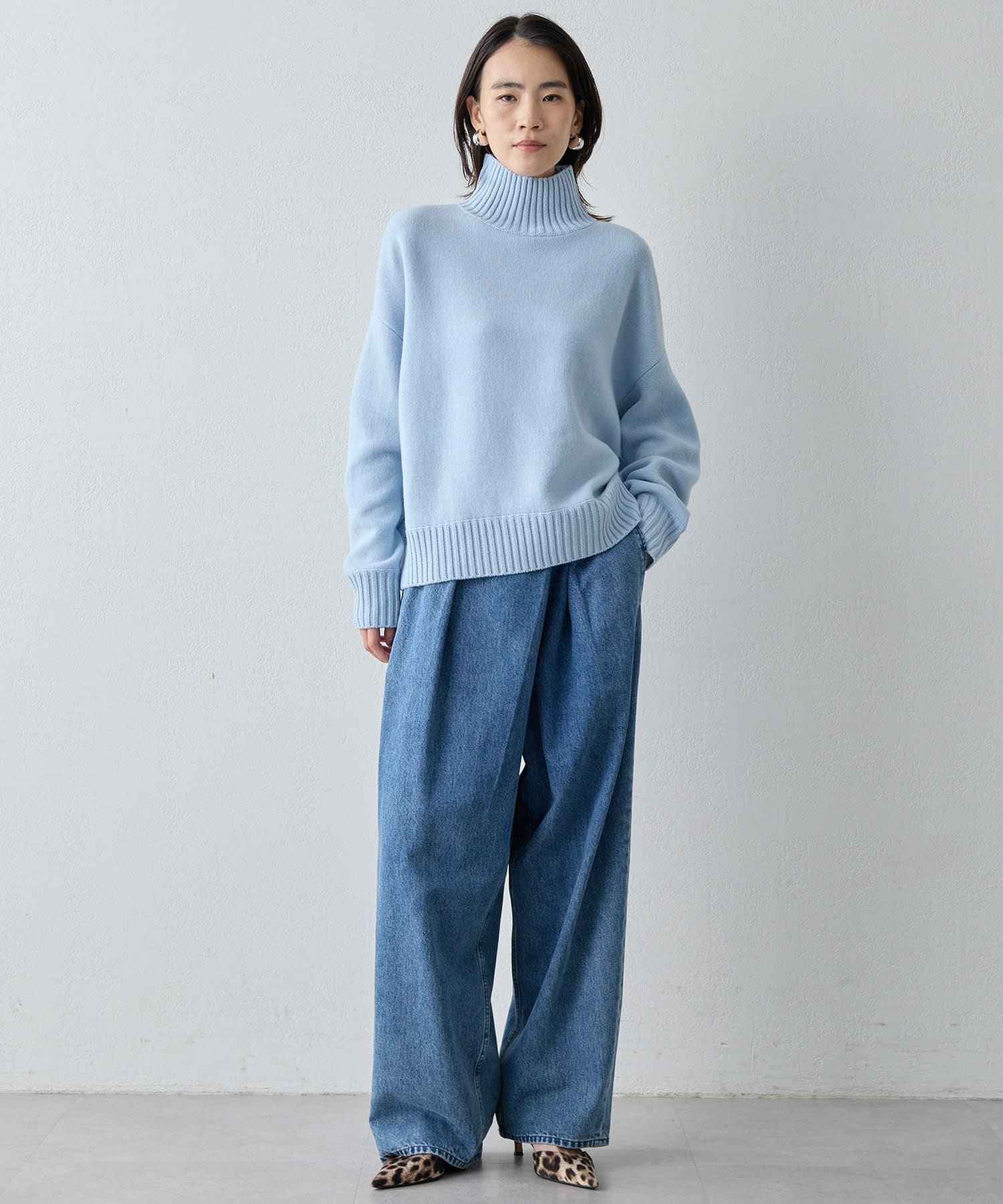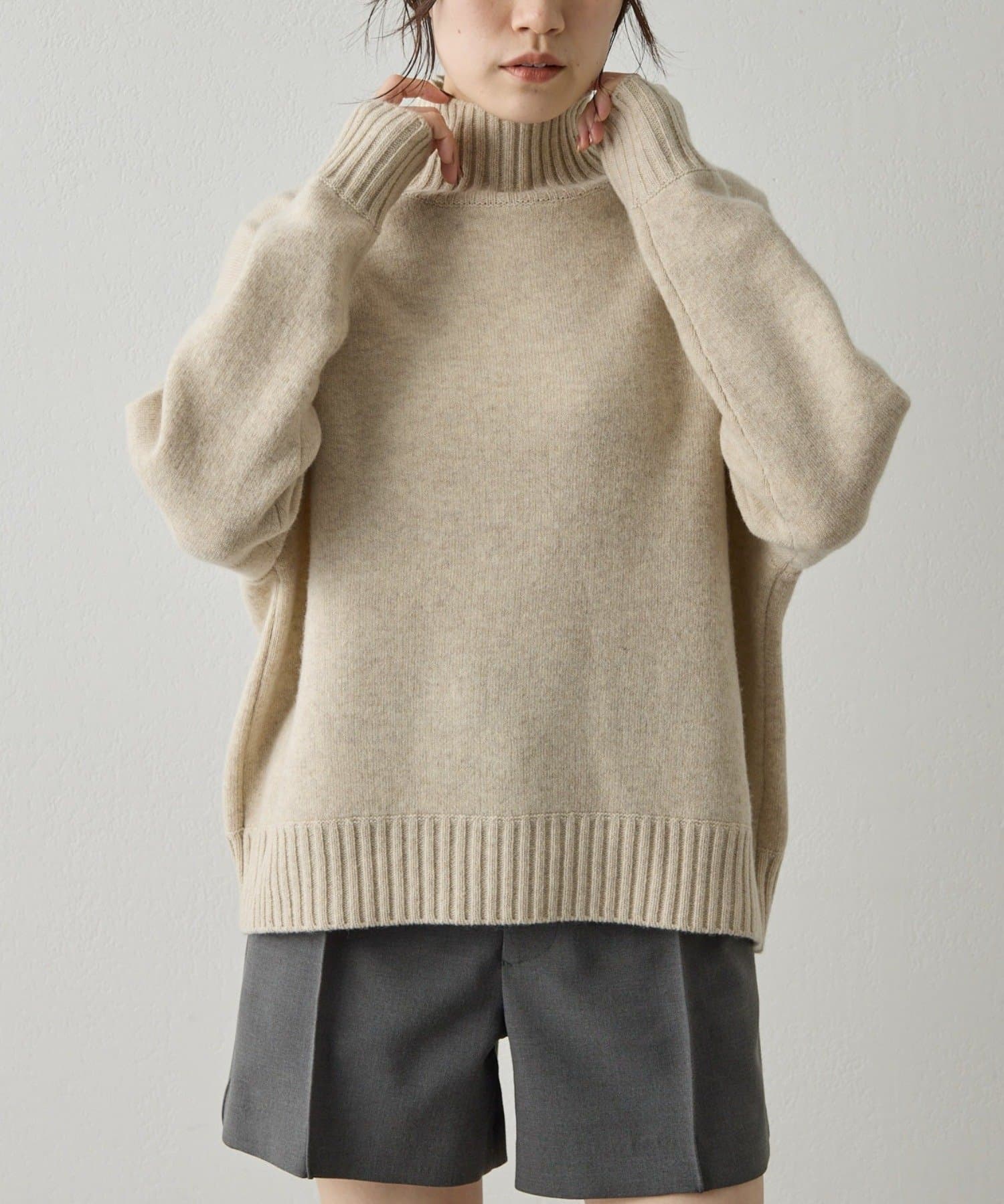 ■程よいワイドシルエット+自然なタートルネックは一枚でもサマになり、シャツやカットソーをレイヤードしても◎