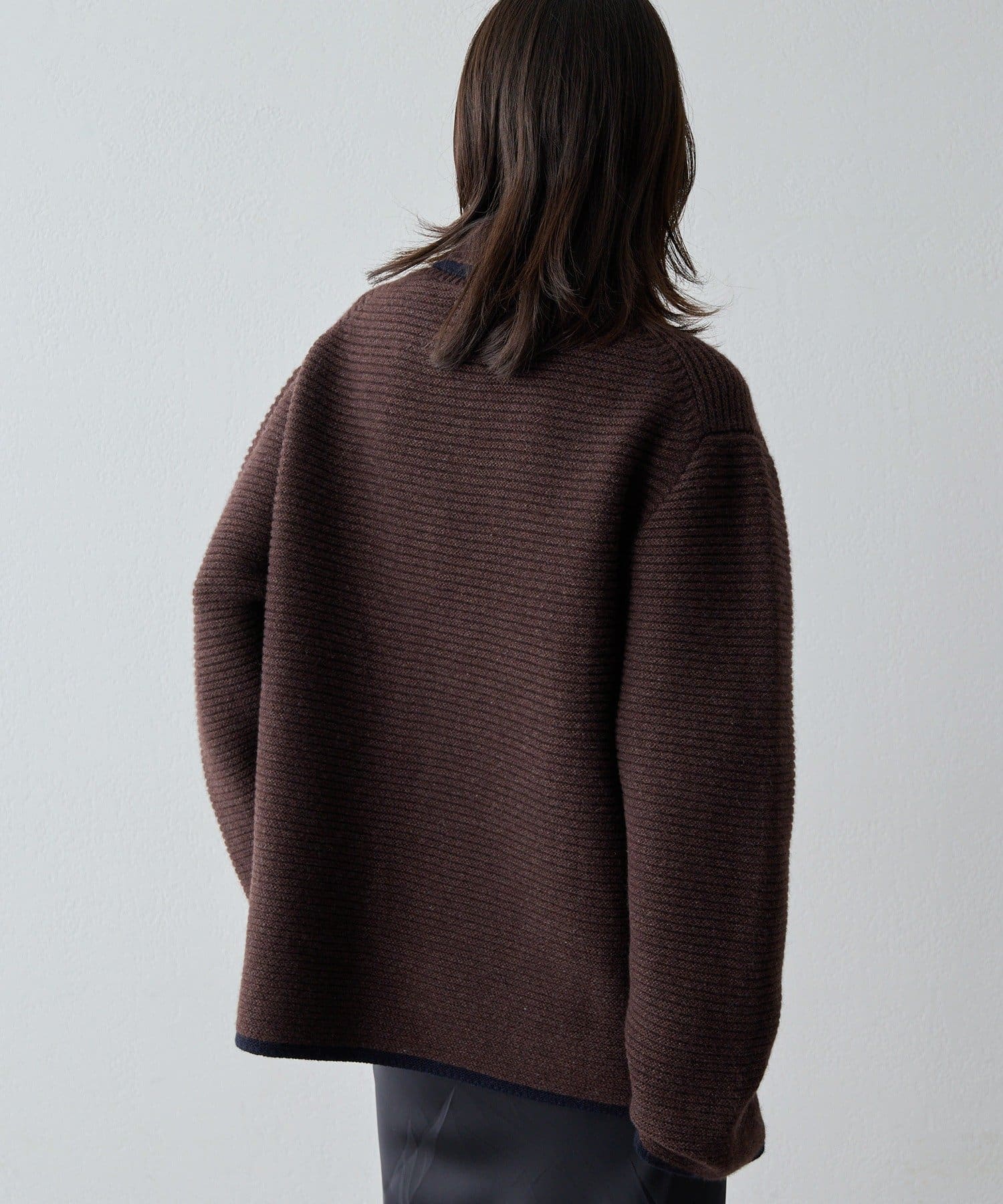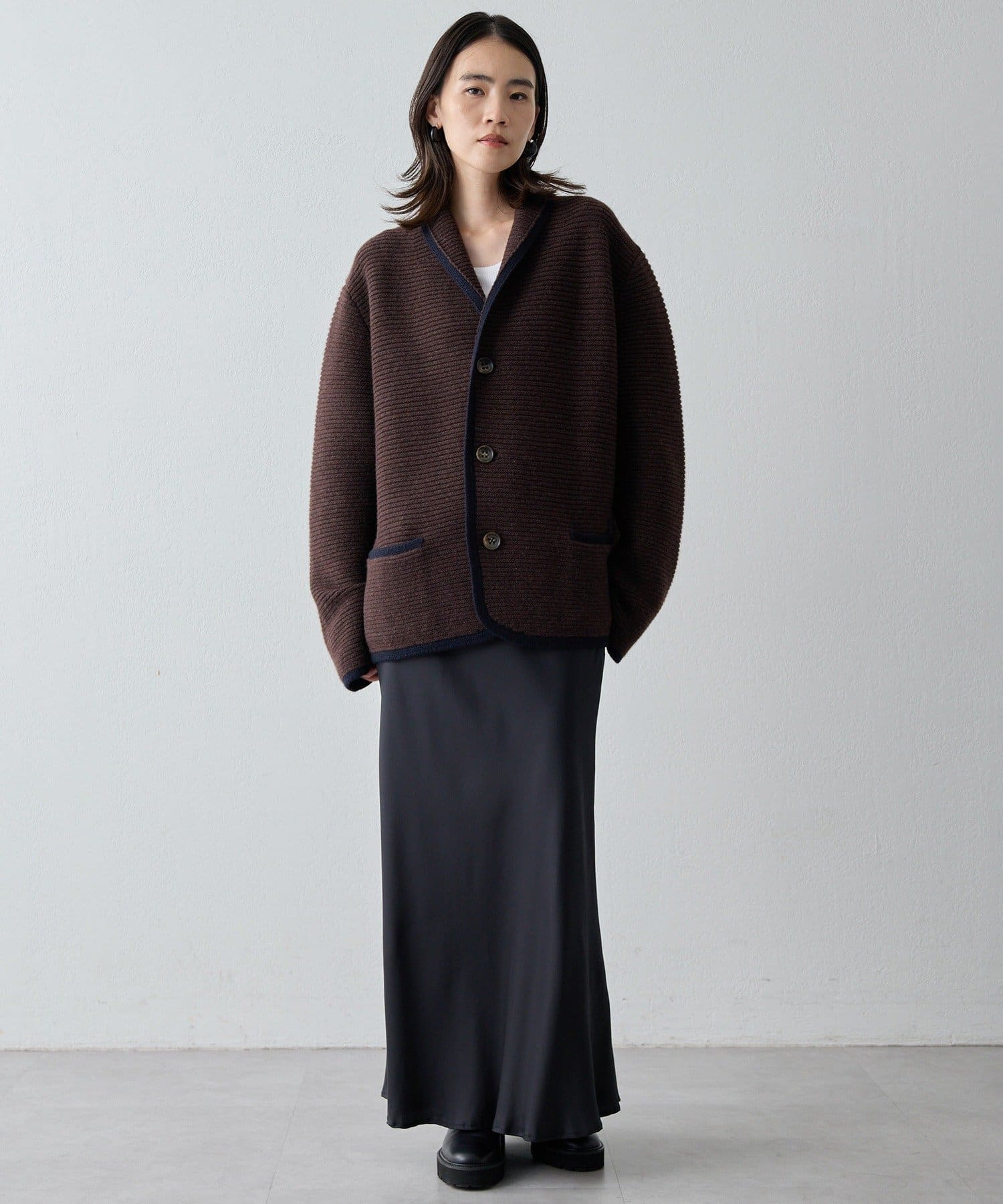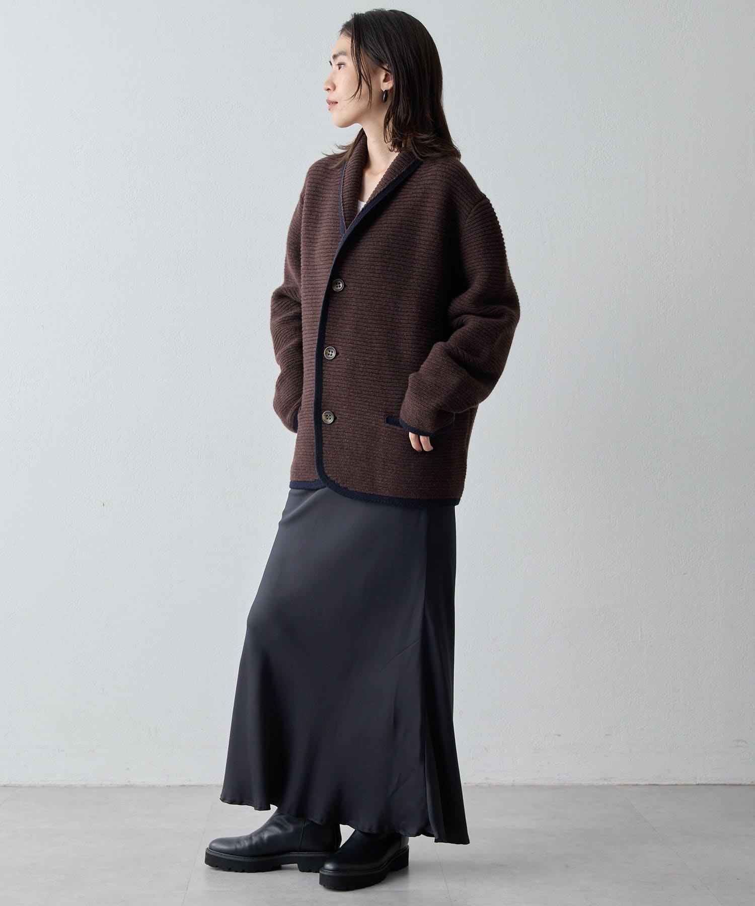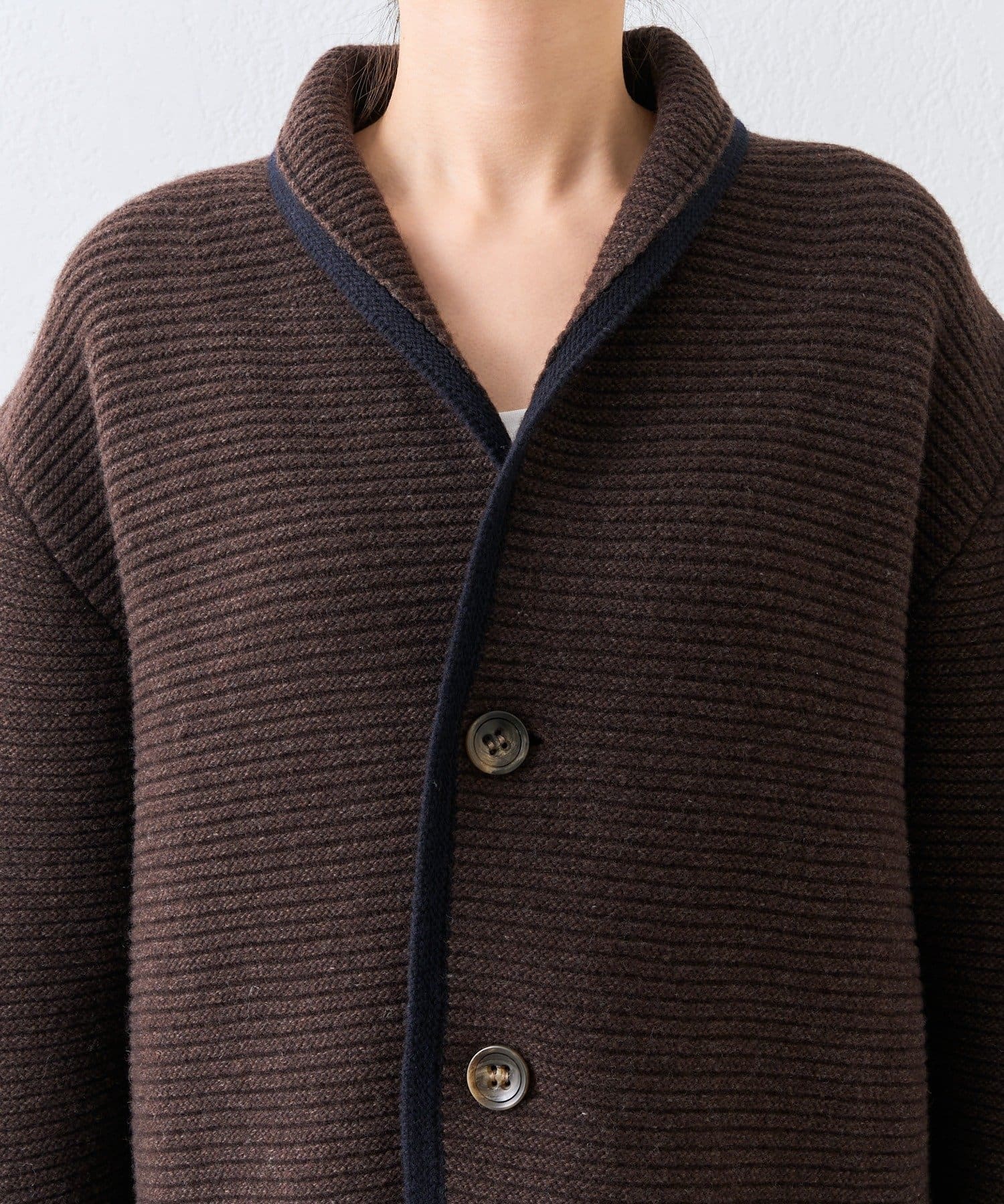■ガーター編みの表情がポイントになったニット素材のコート。