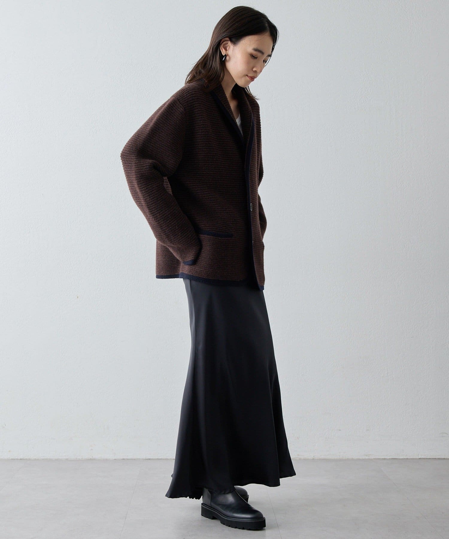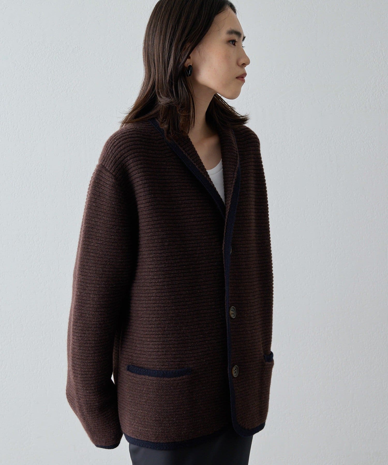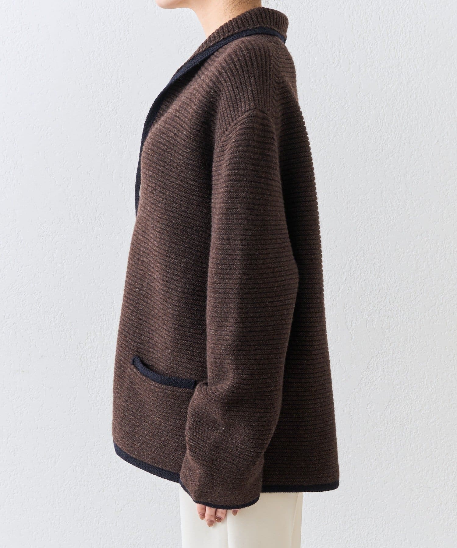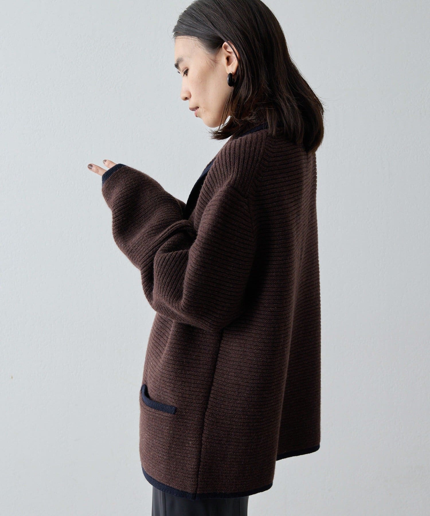 ■ガーター編みの表情がポイントになったニット素材のコート。
