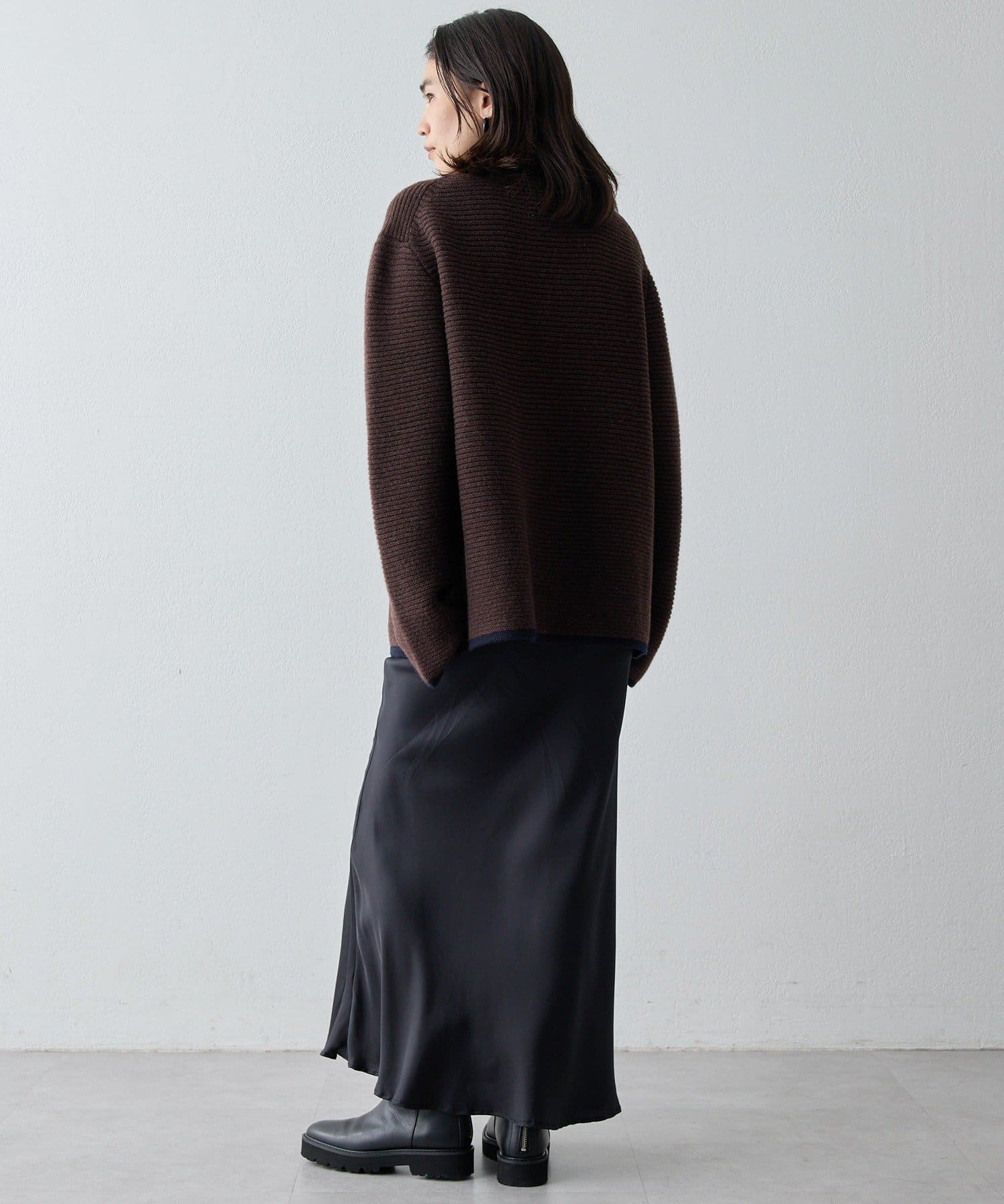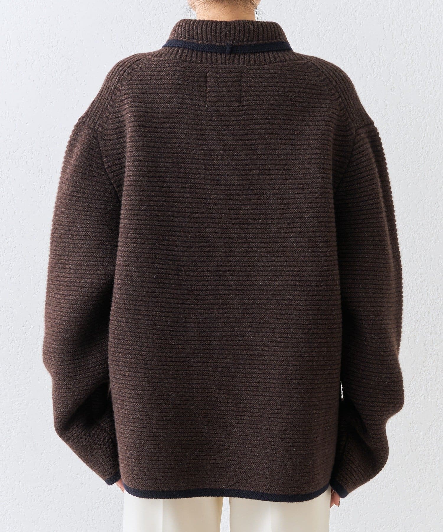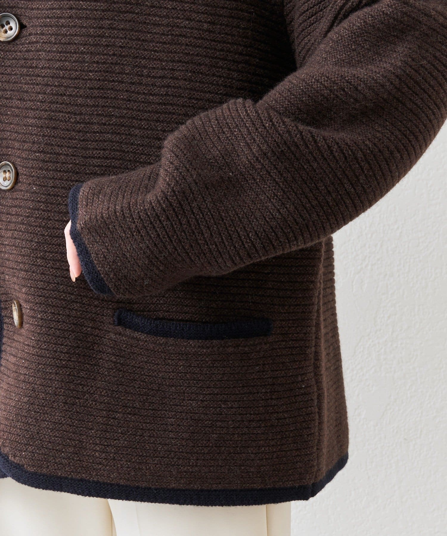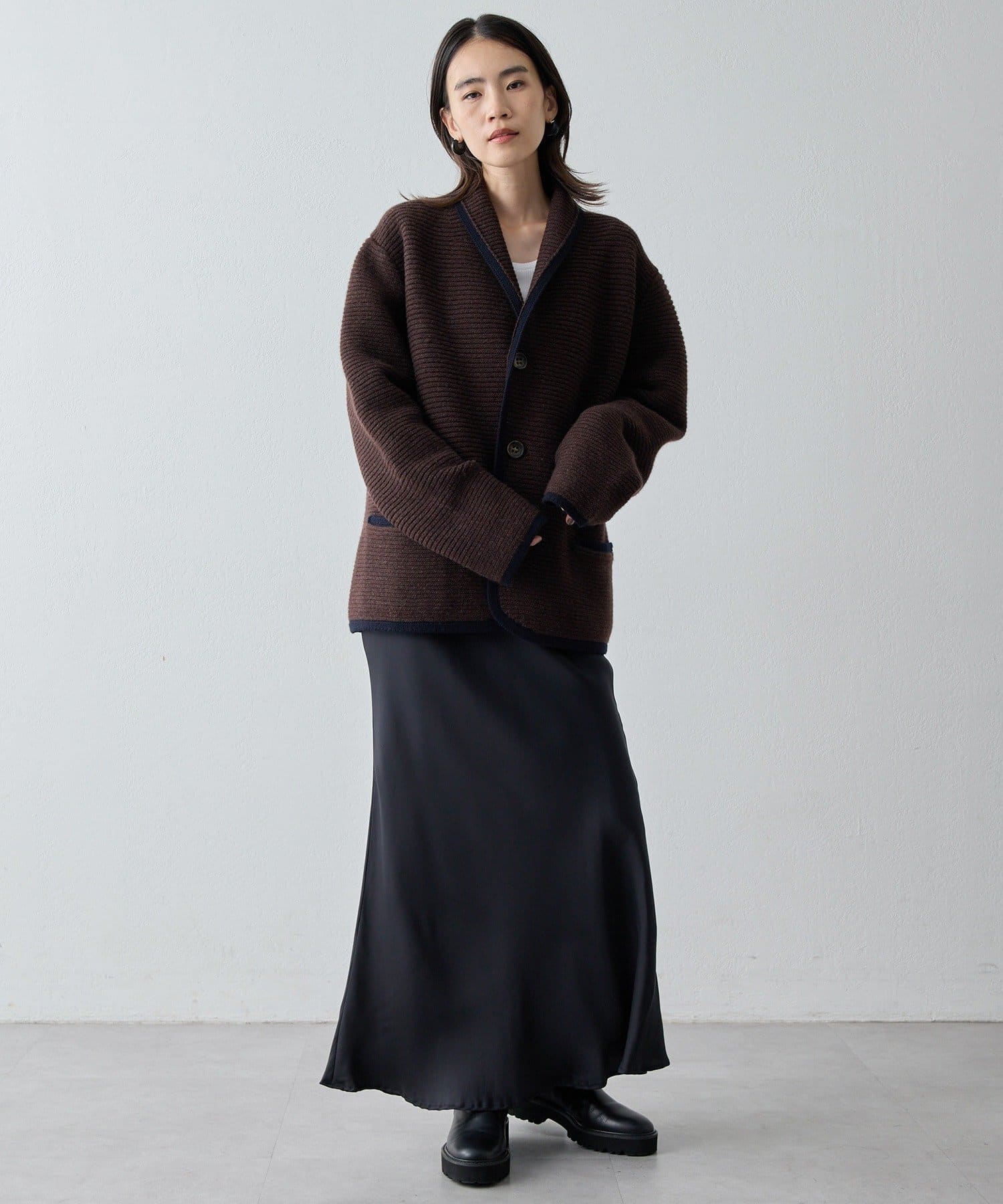 ■ガーター編みの表情がポイントになったニット素材のコート。