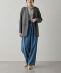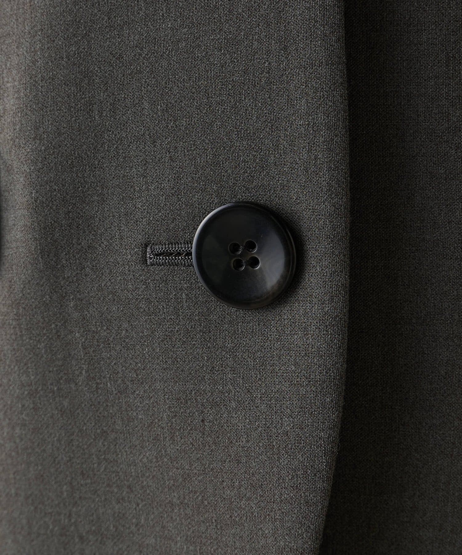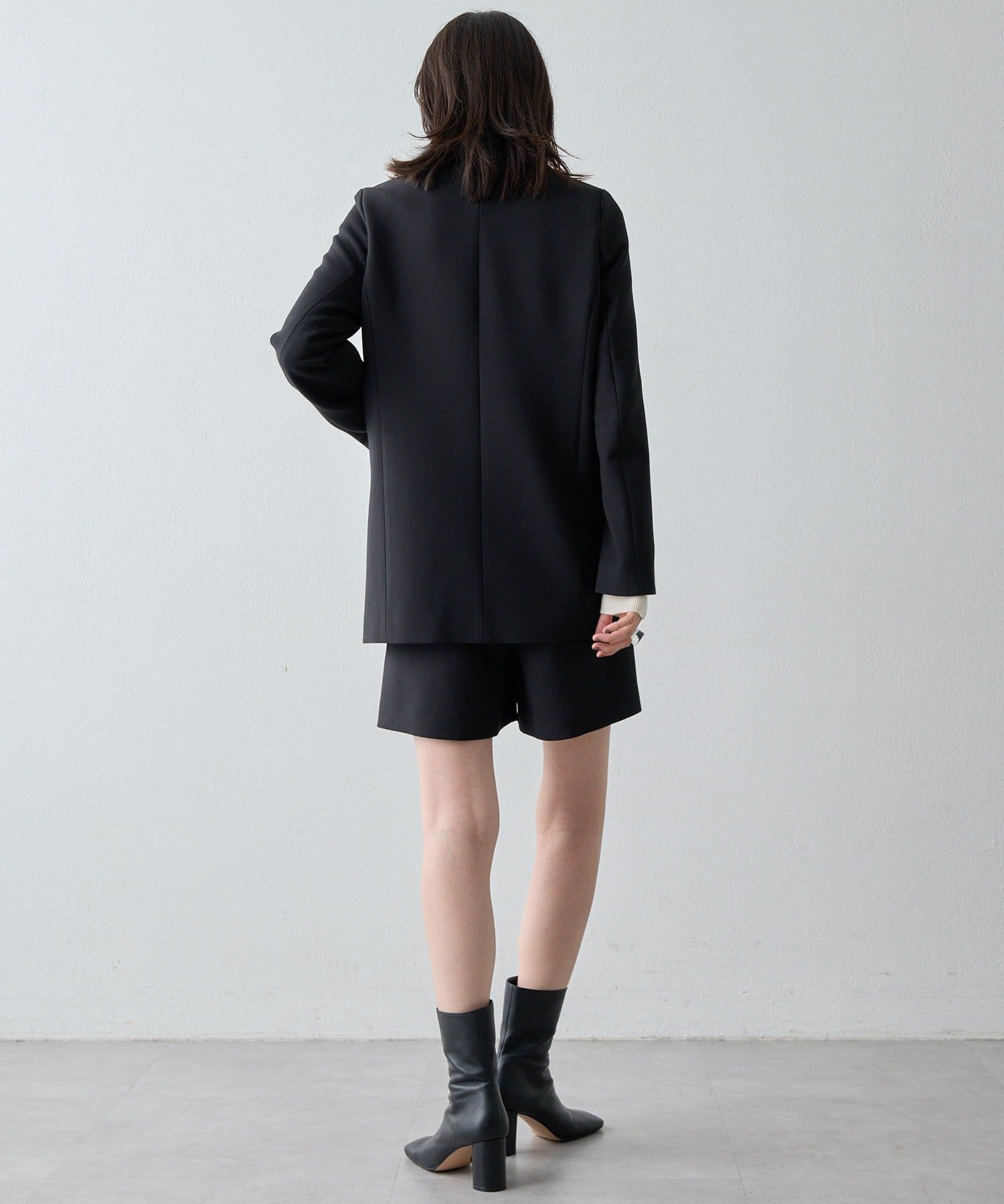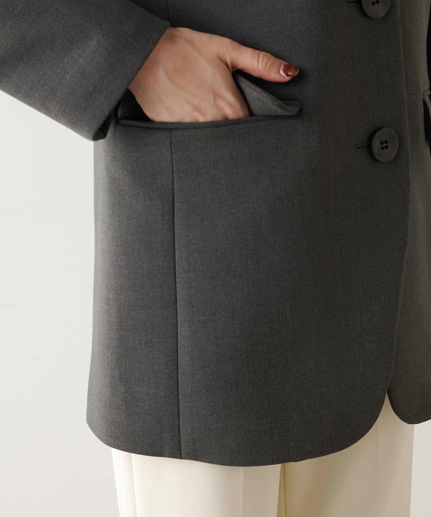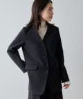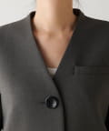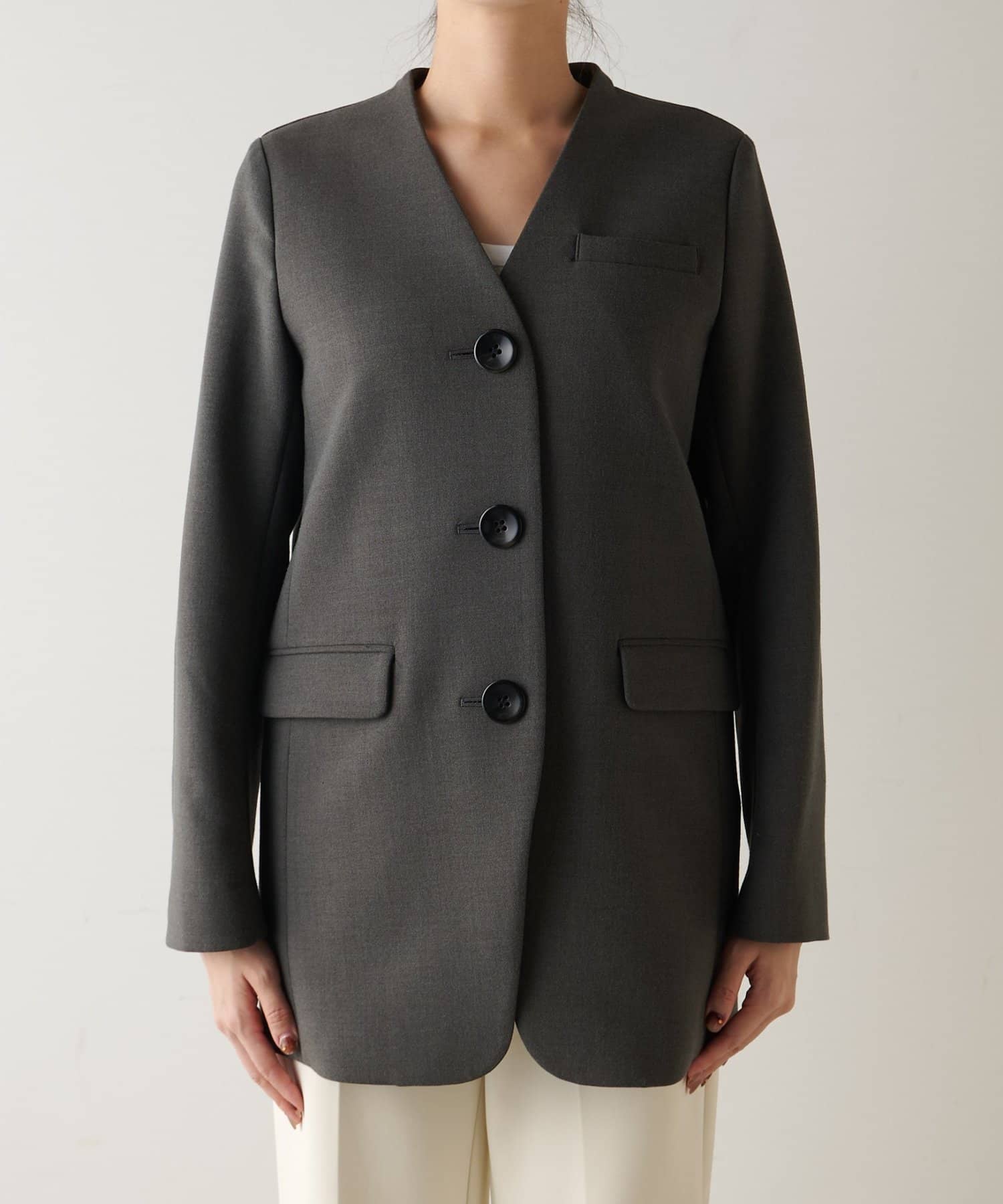 ■上質感のあるウールライクなダブルクロスを使用したノーカラージャケット。