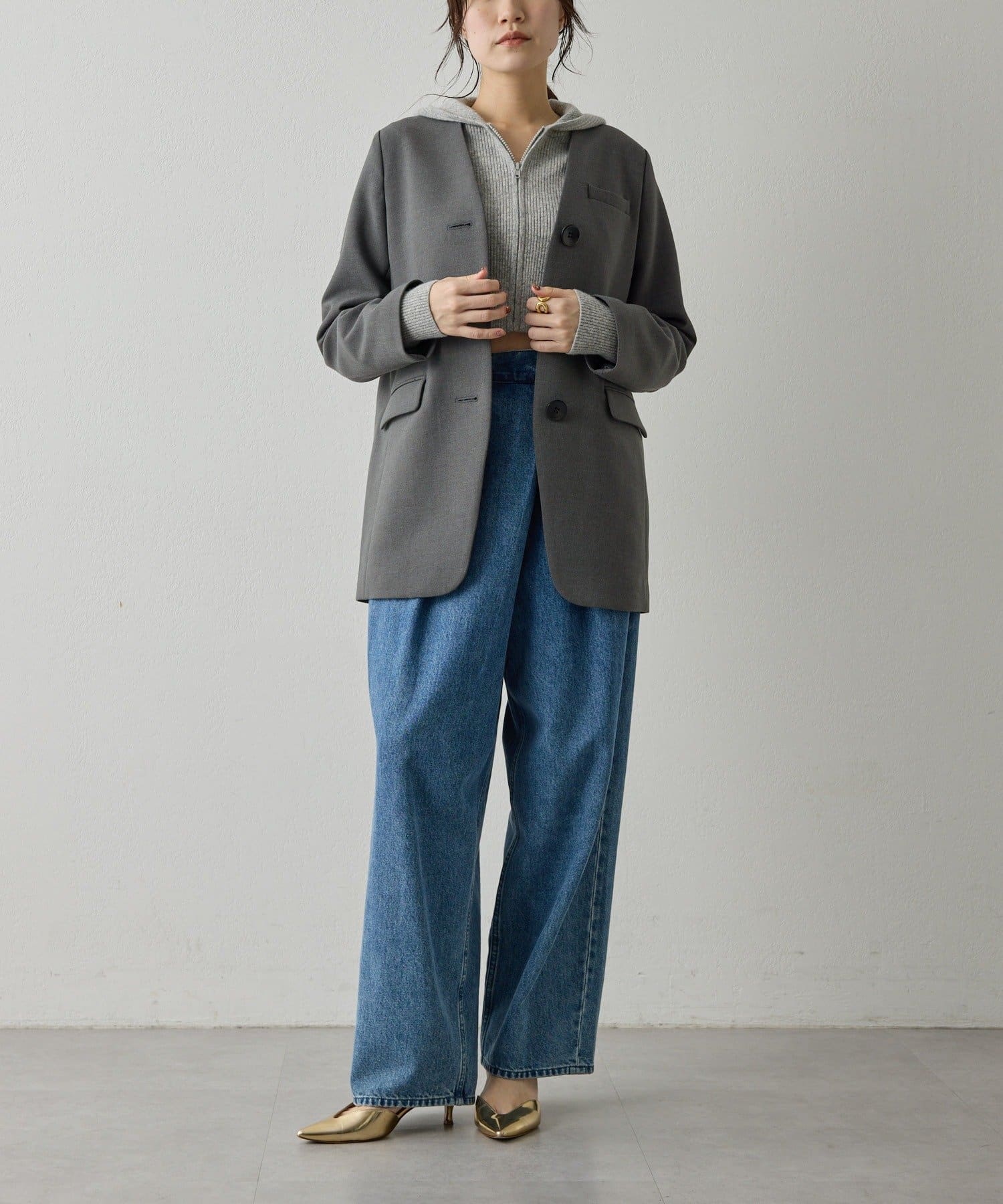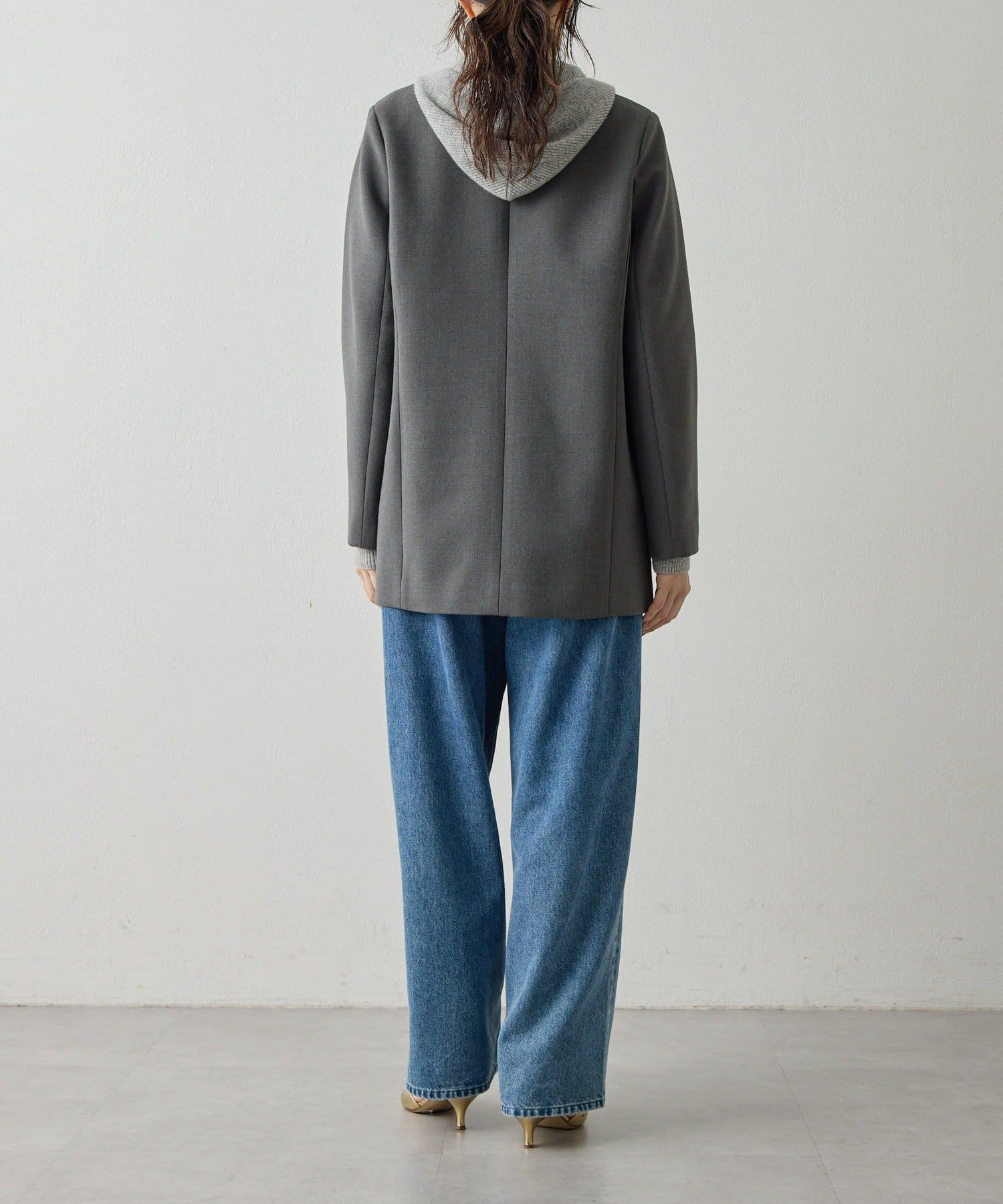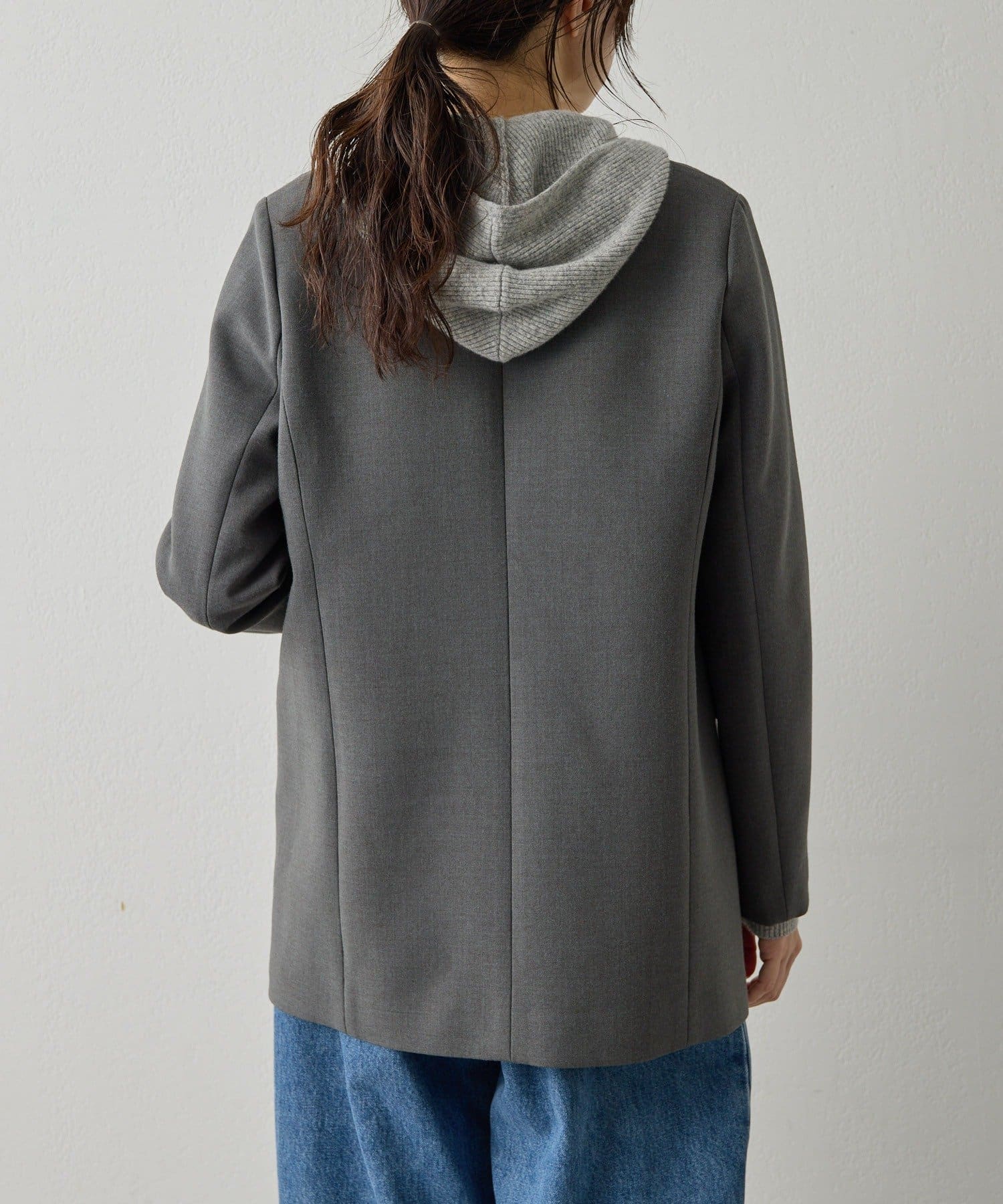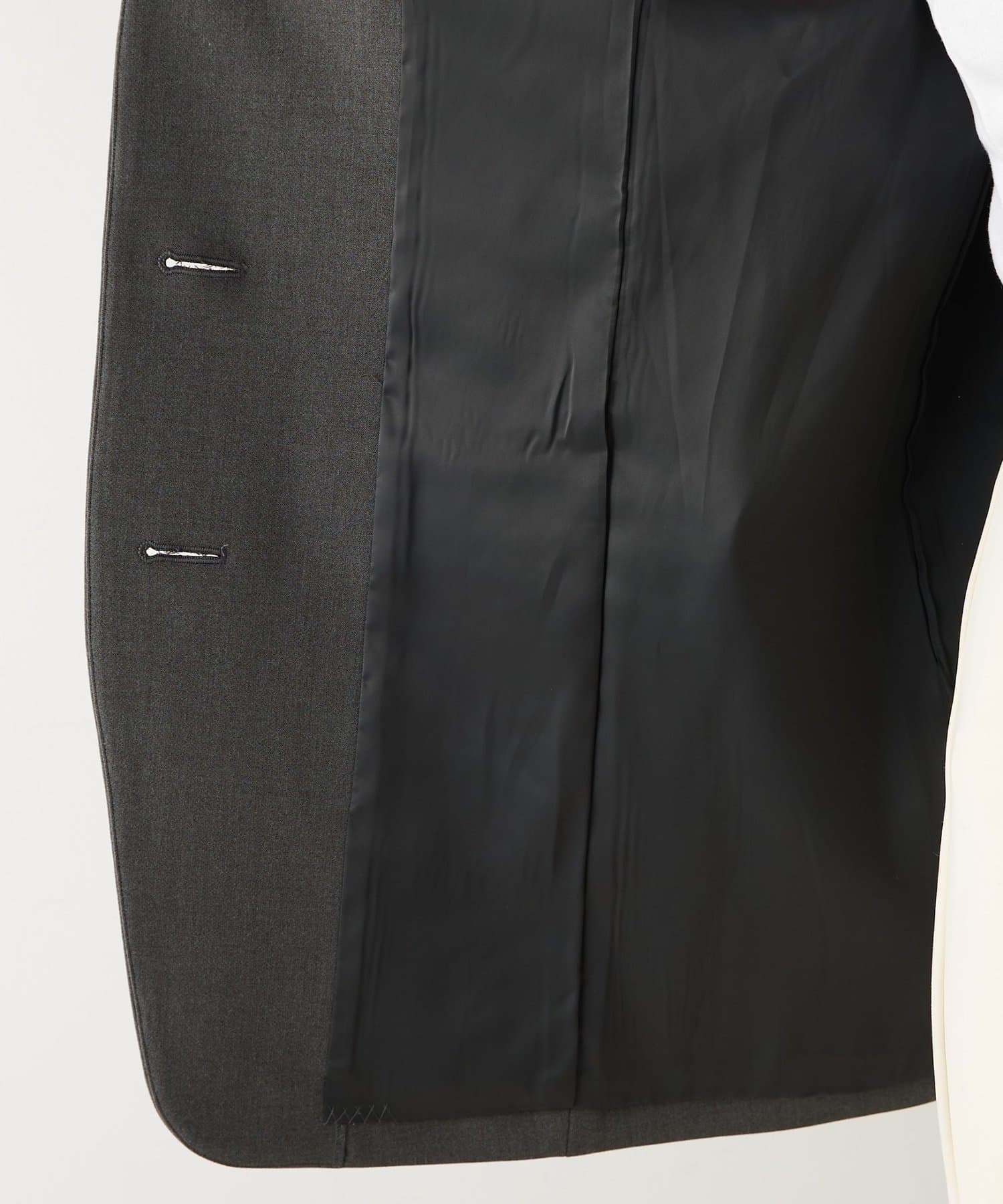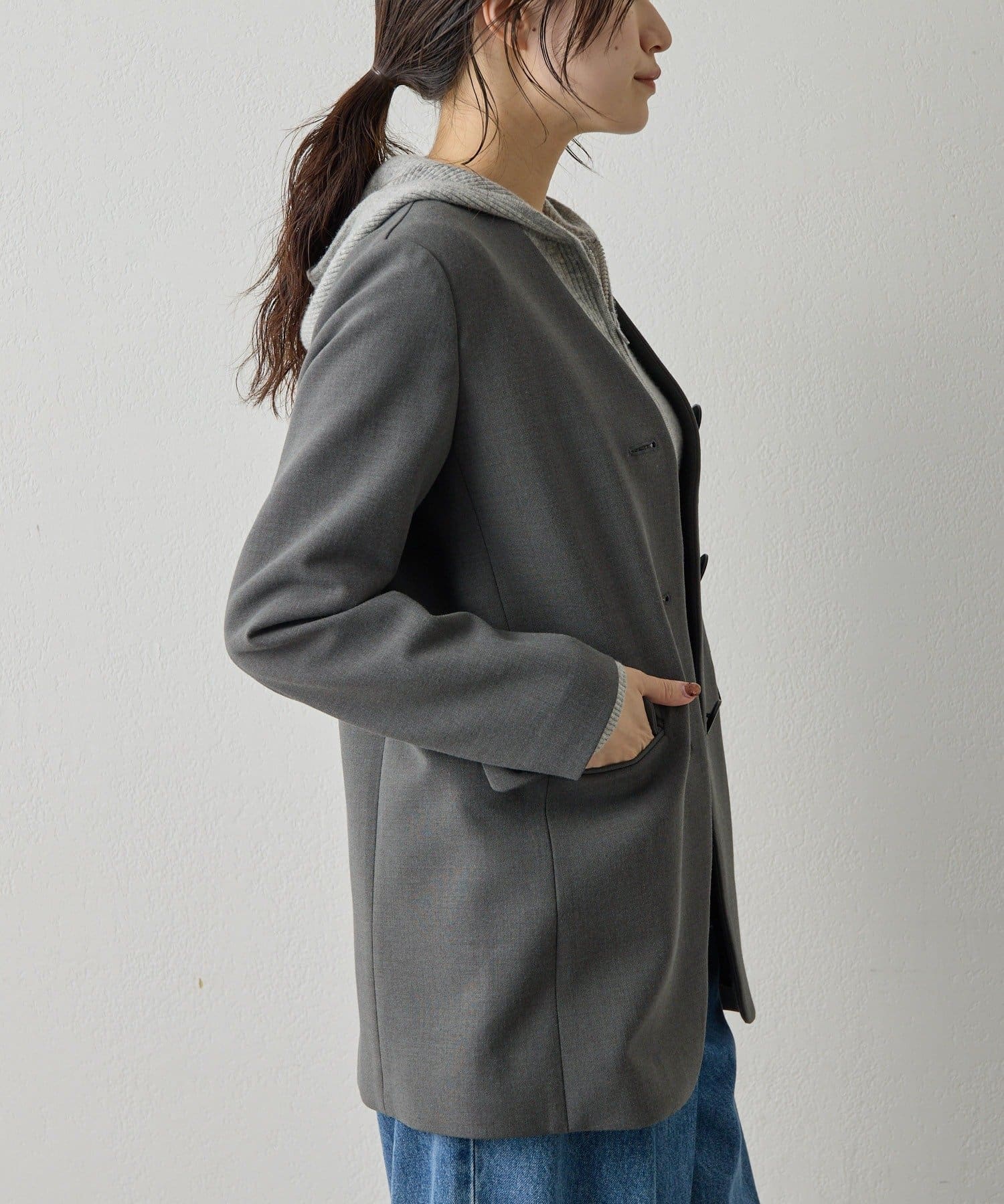 ■上質感のあるウールライクなダブルクロスを使用したノーカラージャケット。
