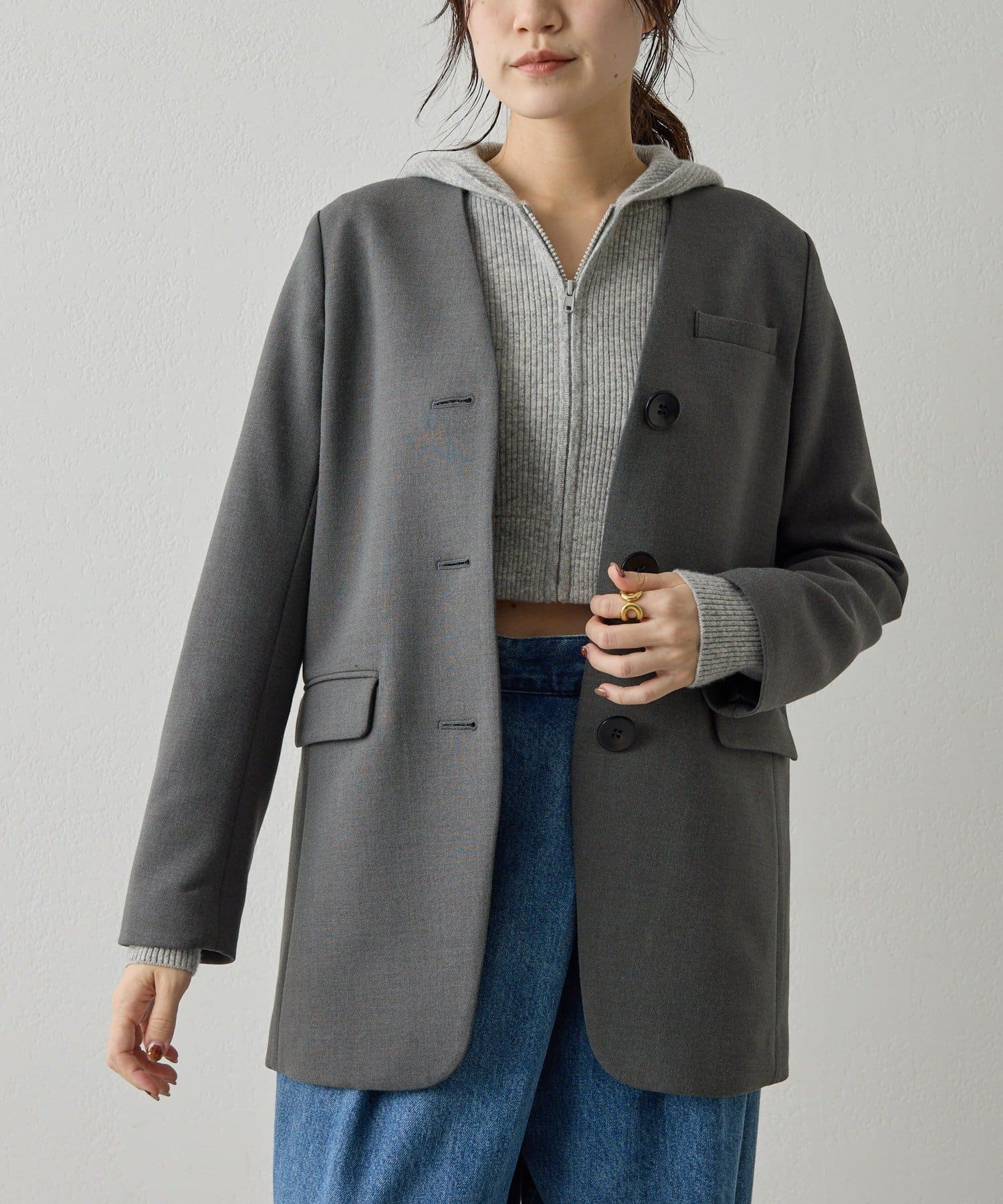 気軽に羽織れてきちんと見えするノーカラージャケット